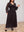Abito casual elegante nero da donna con scollo a V profondo, maniche a lanterna a sbuffo, dritto