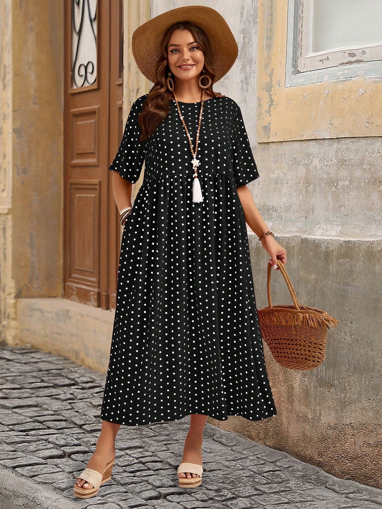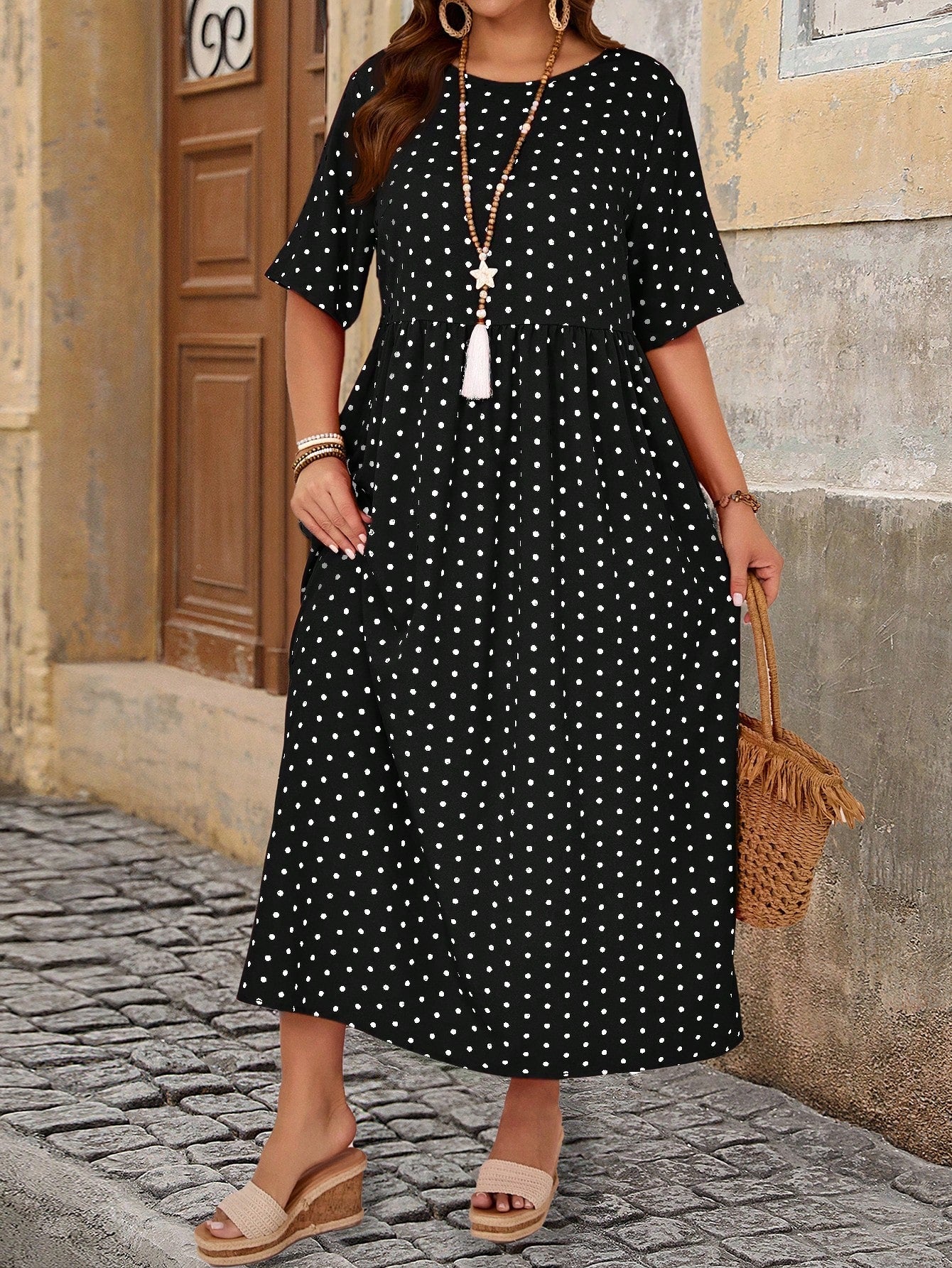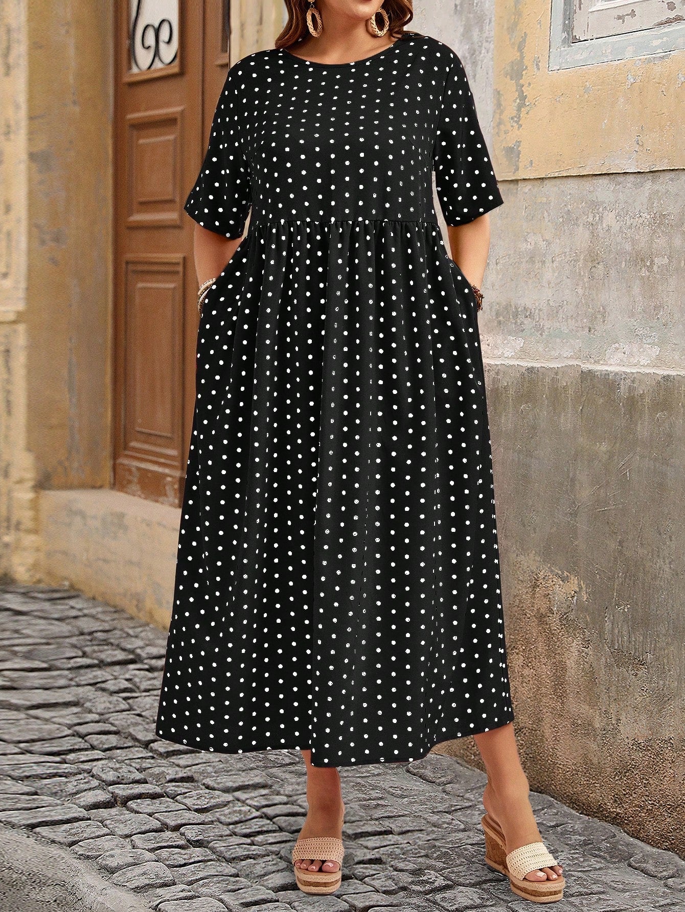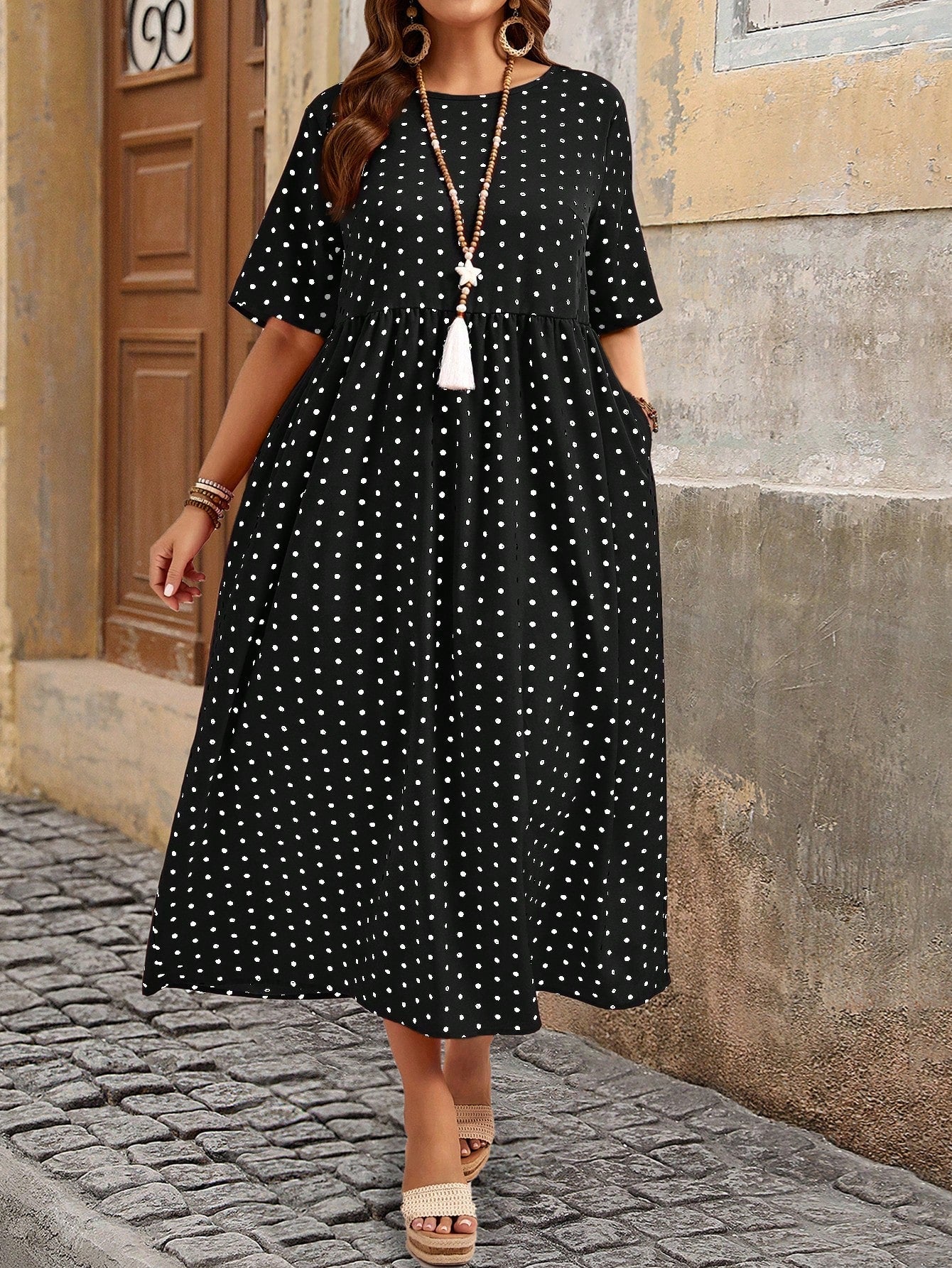 Abito casual con stampa a pois