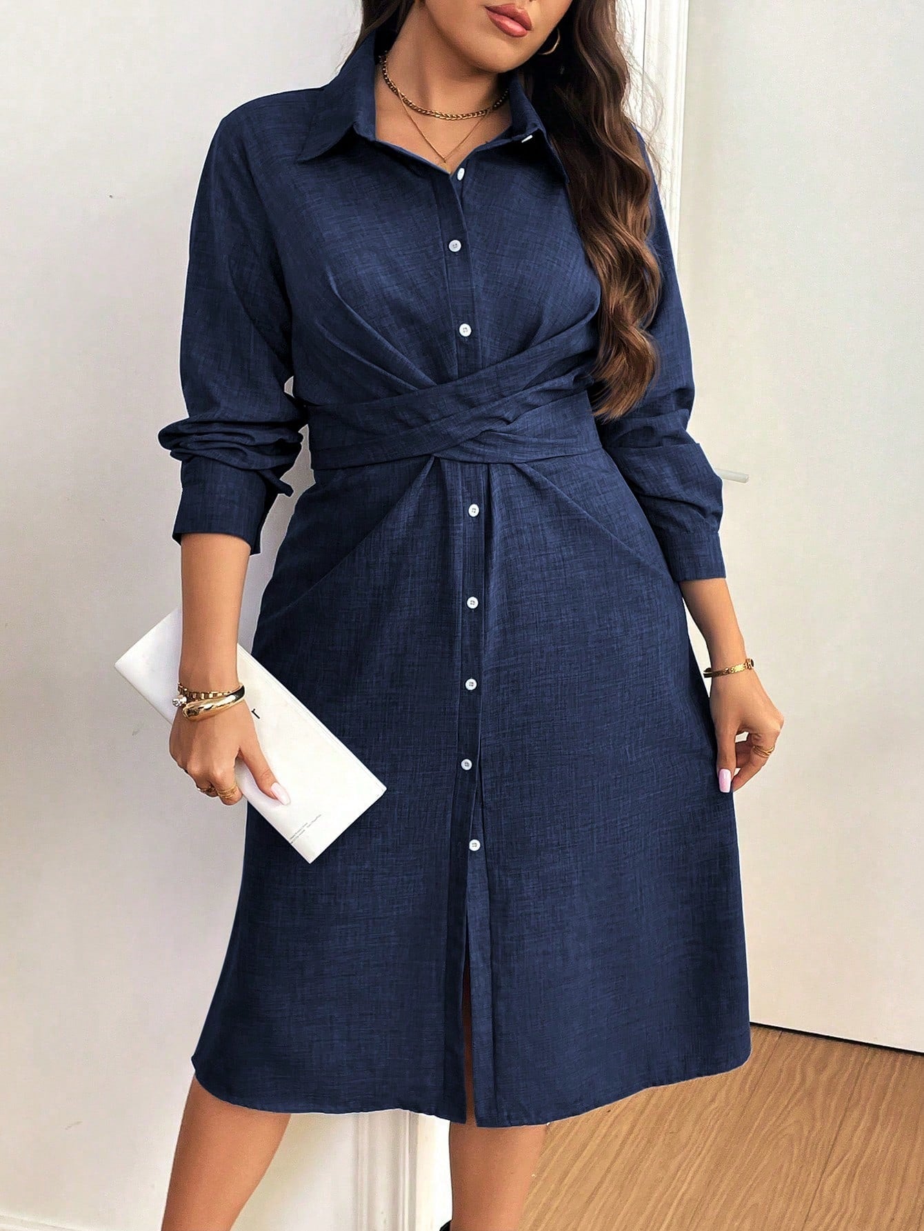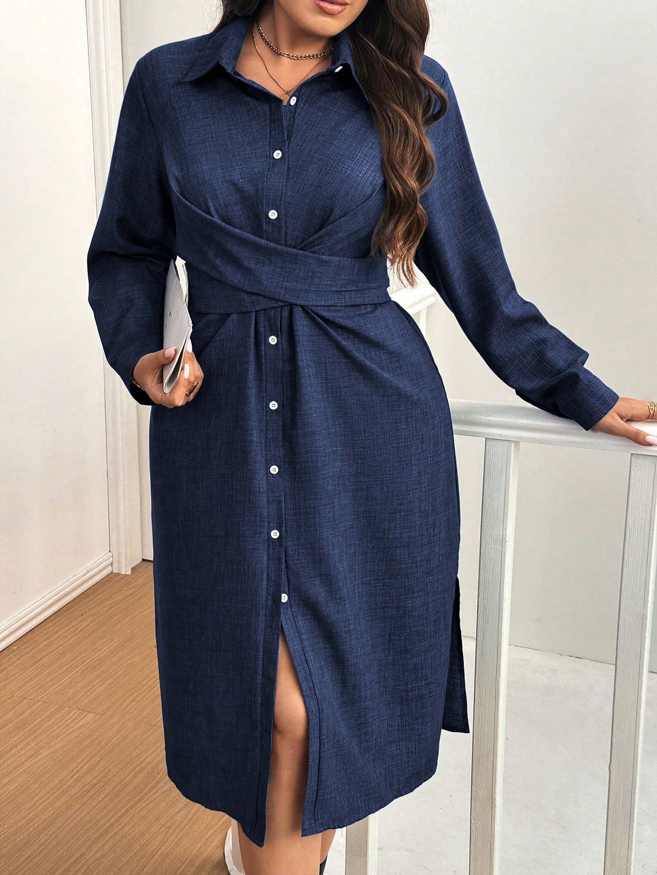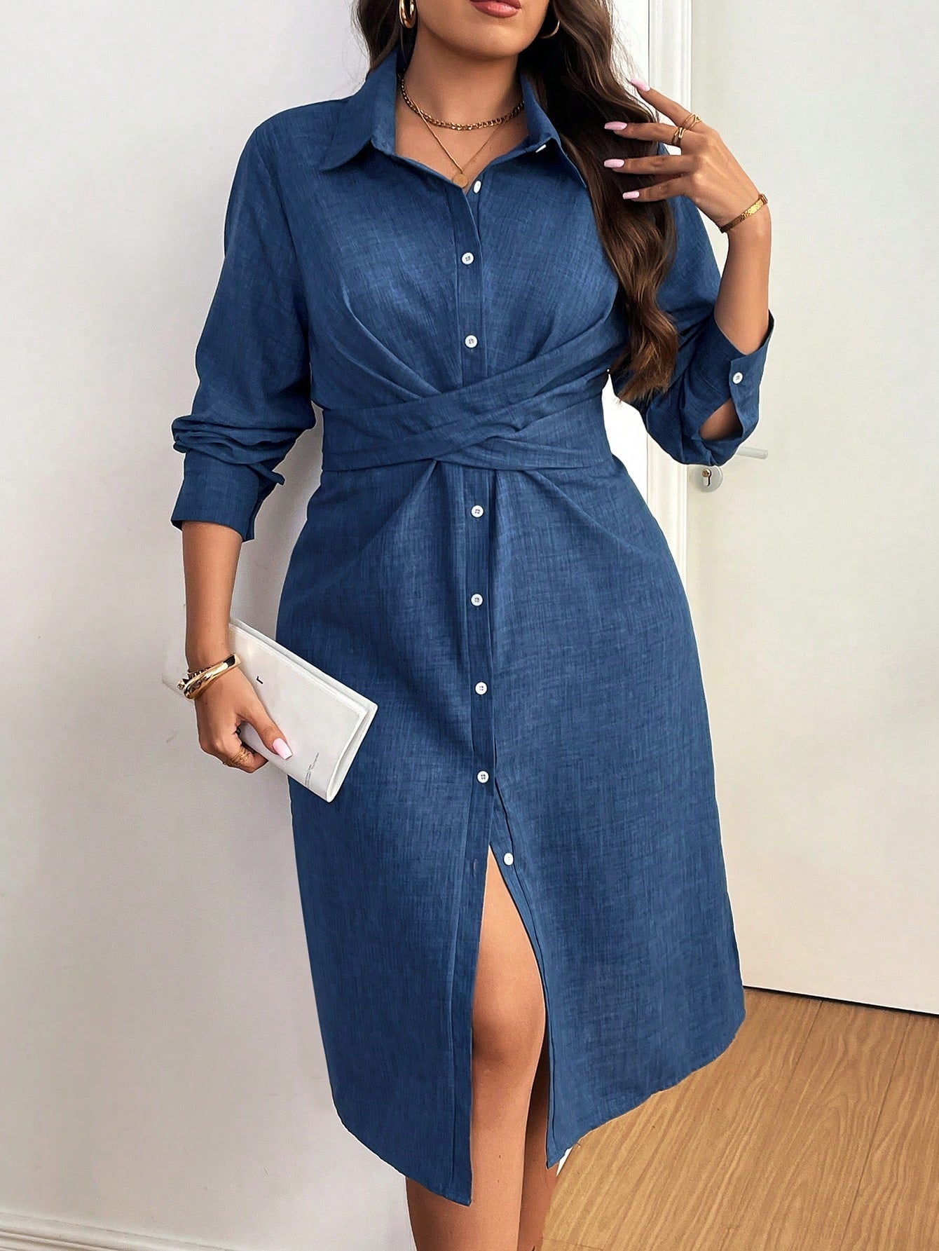 Abito casual da donna lungo con maniche lunghe, bottoni frontali e tinta unita, vestito oversize maxi