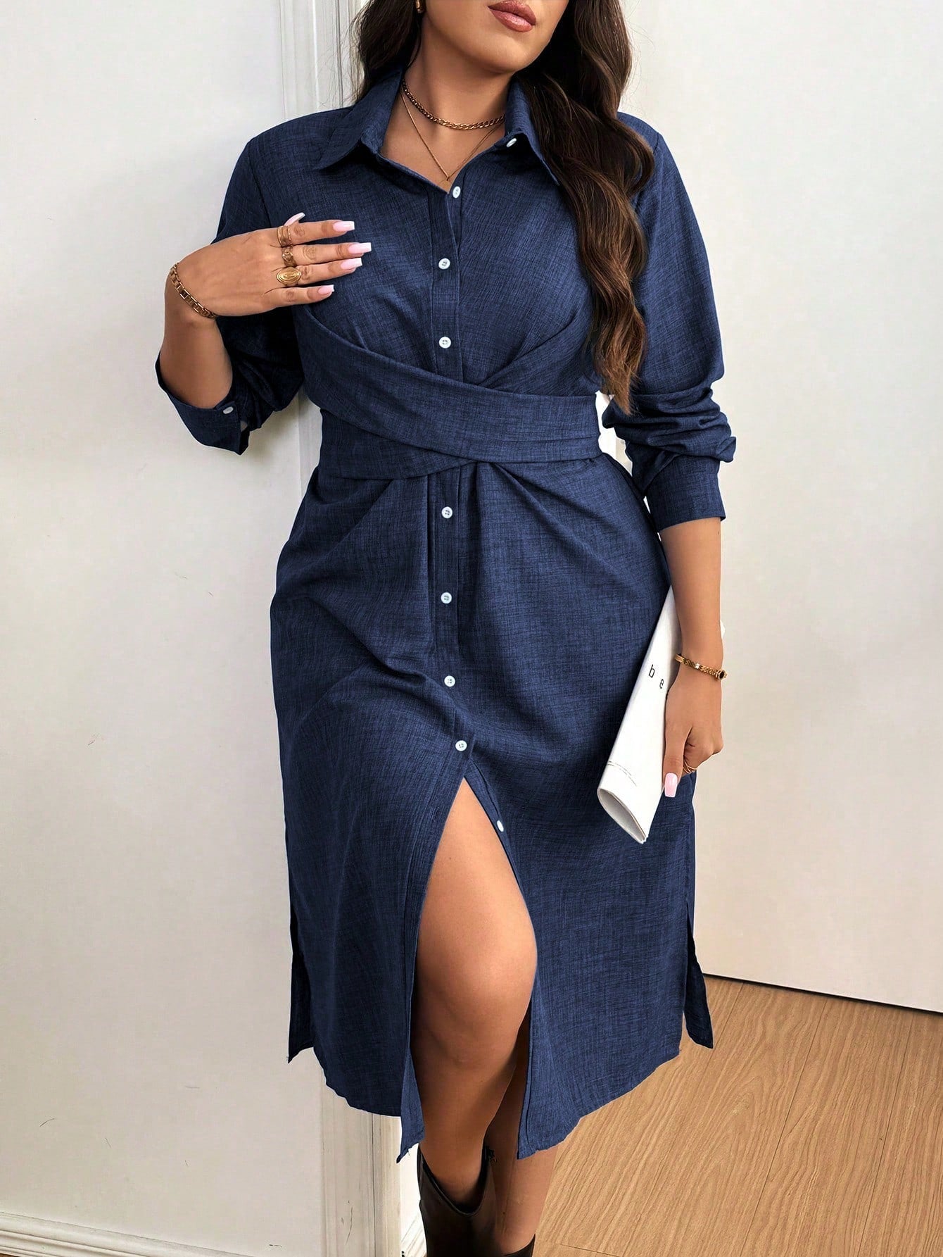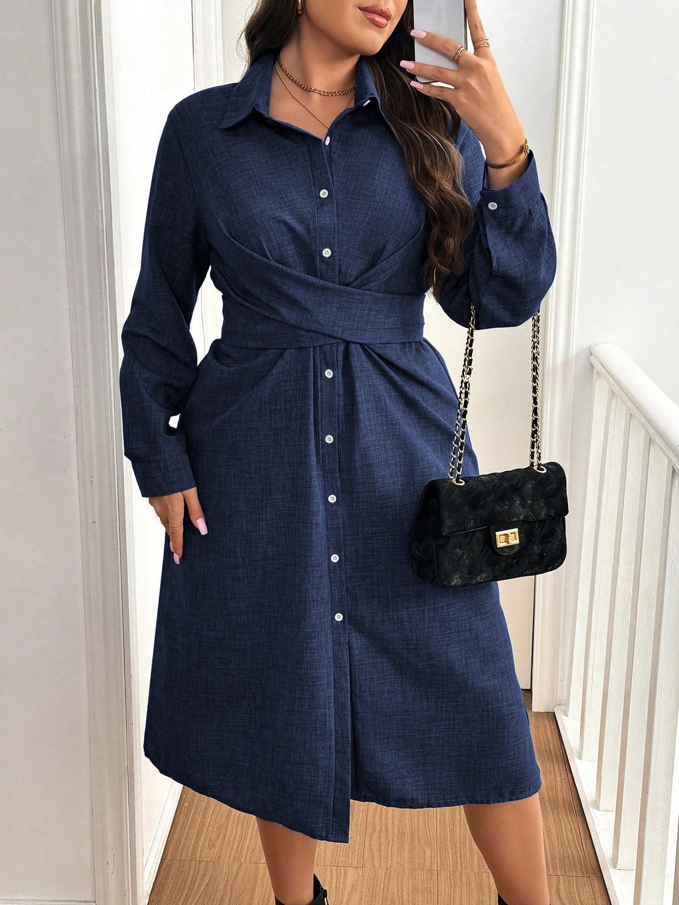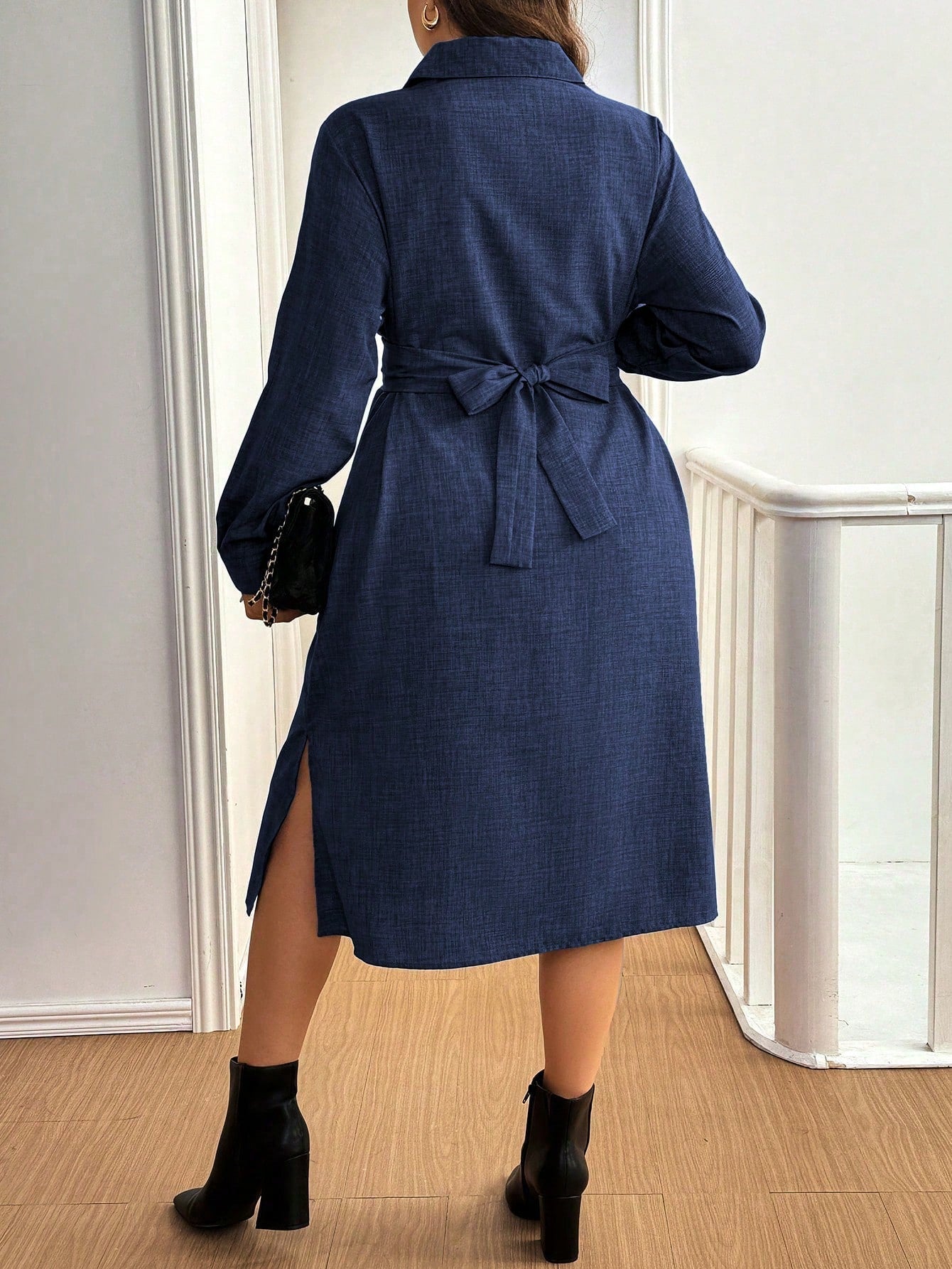 Abito casual da donna lungo con maniche lunghe, bottoni frontali e tinta unita, vestito oversize maxi
