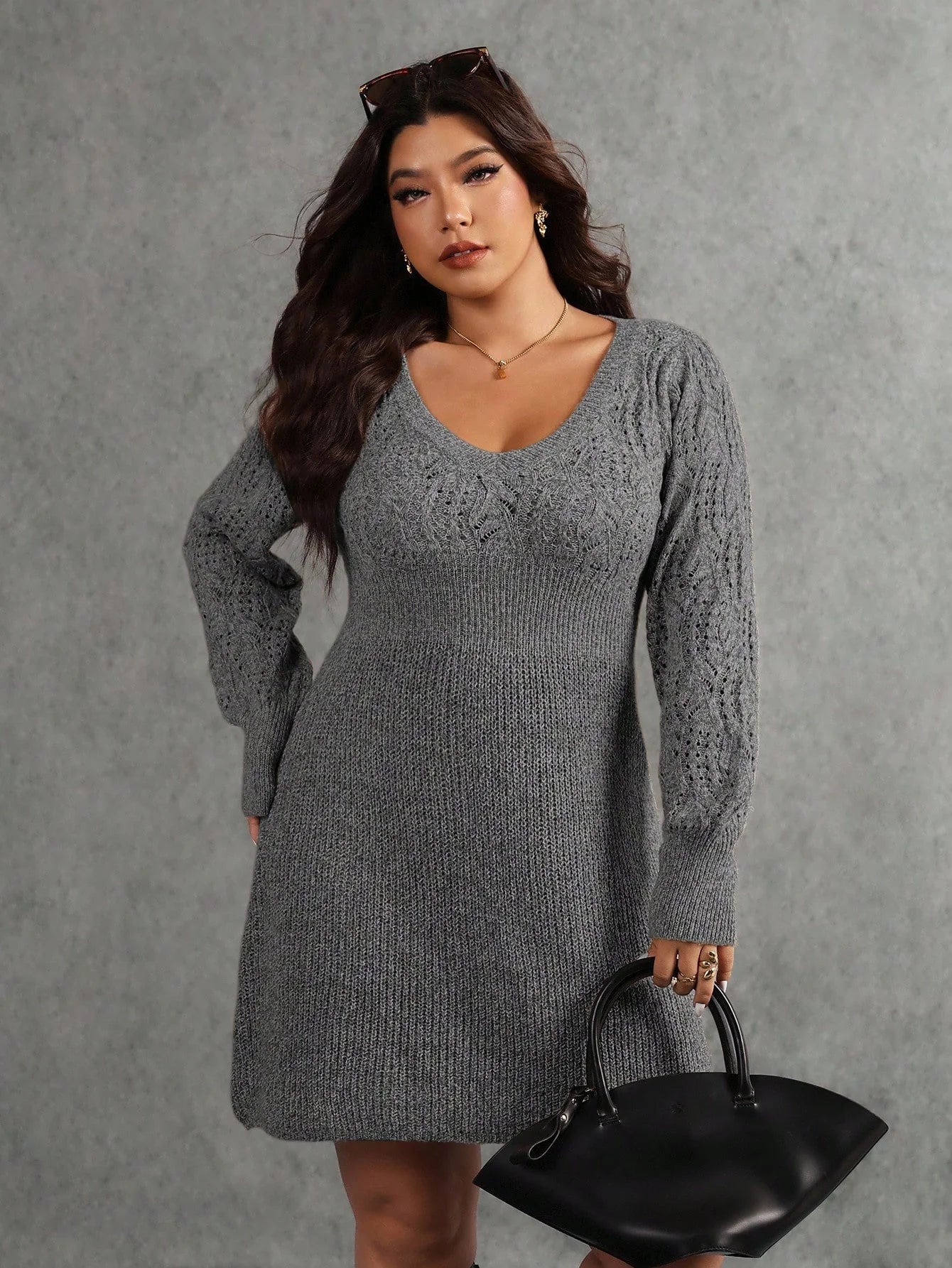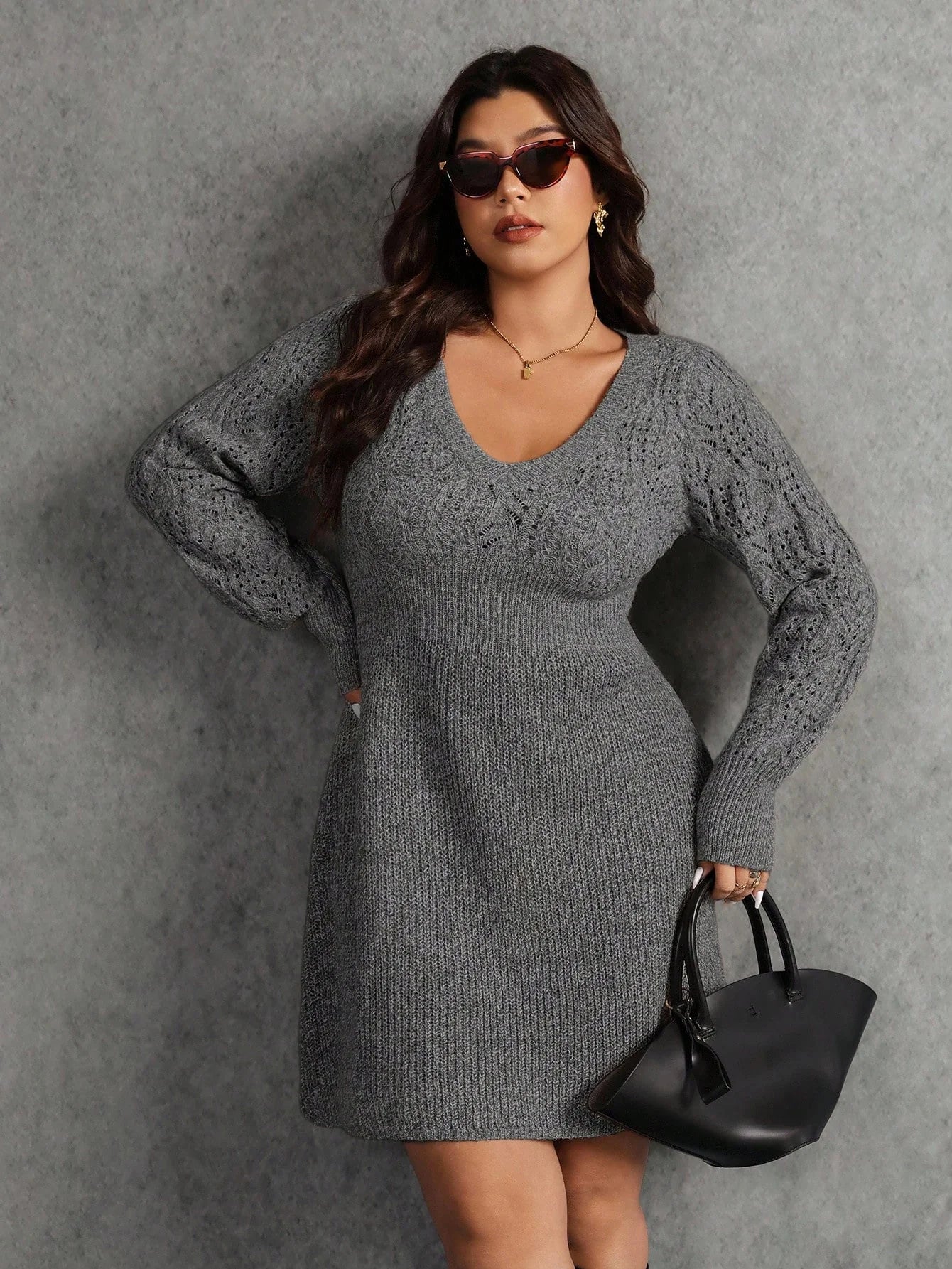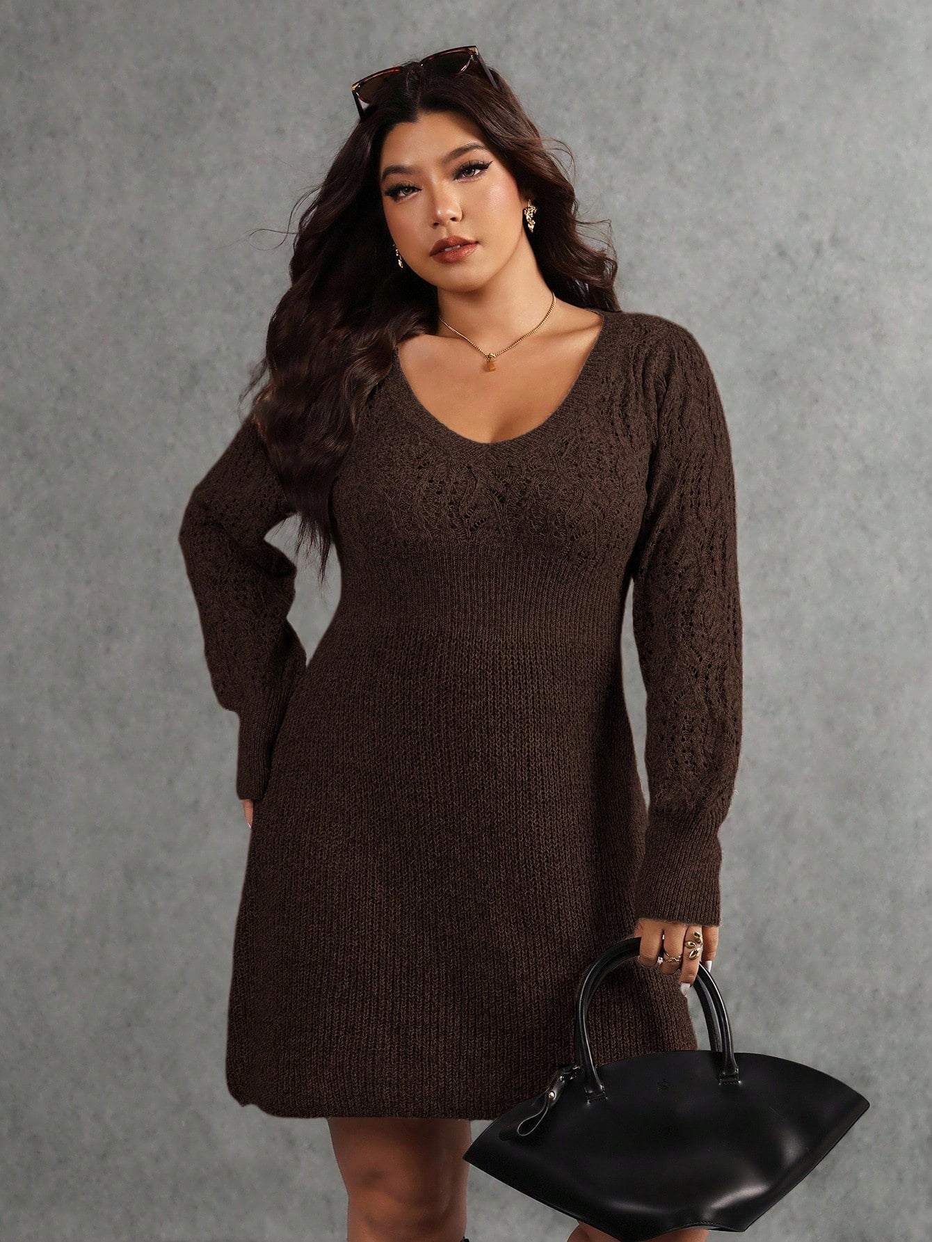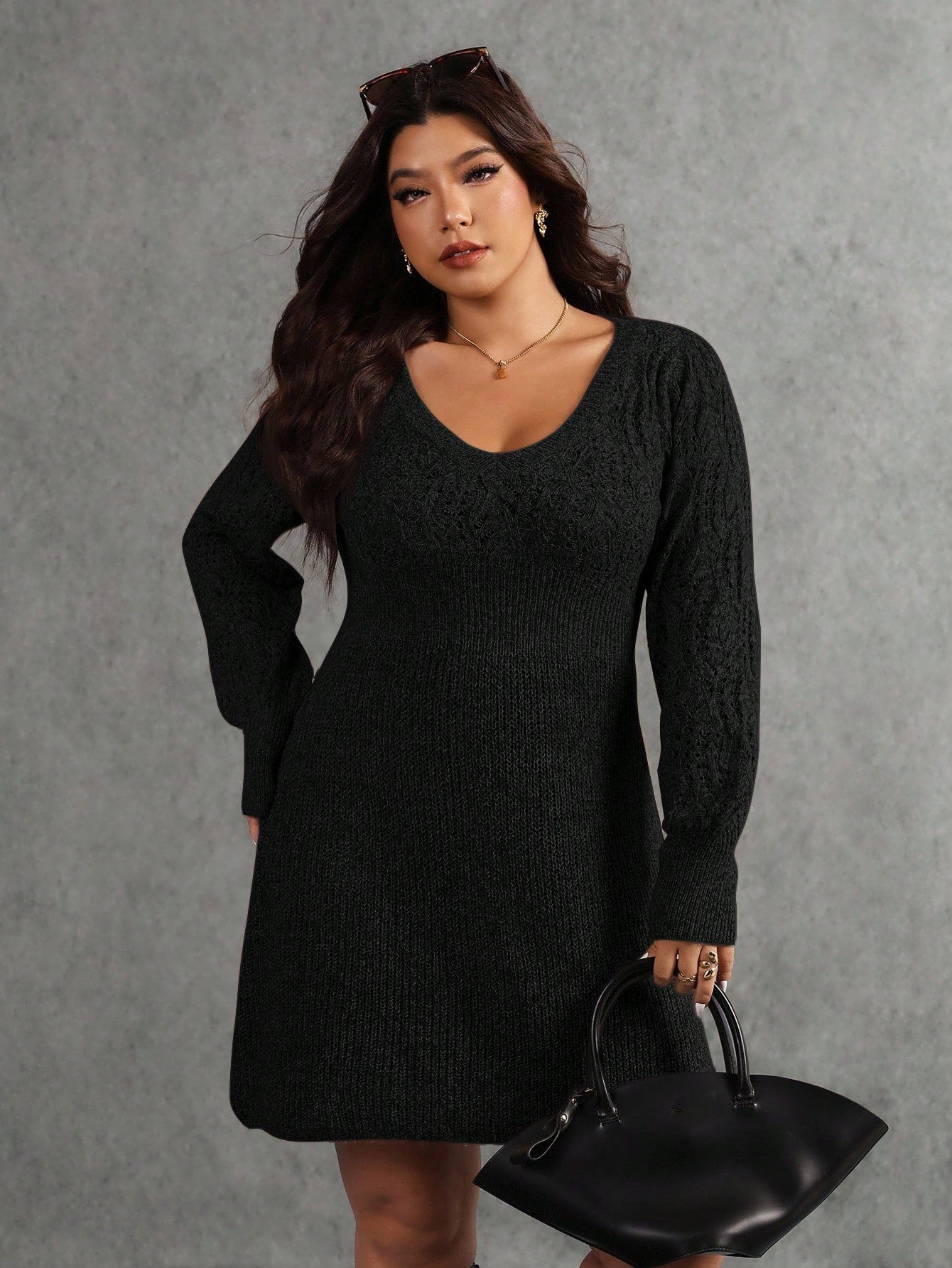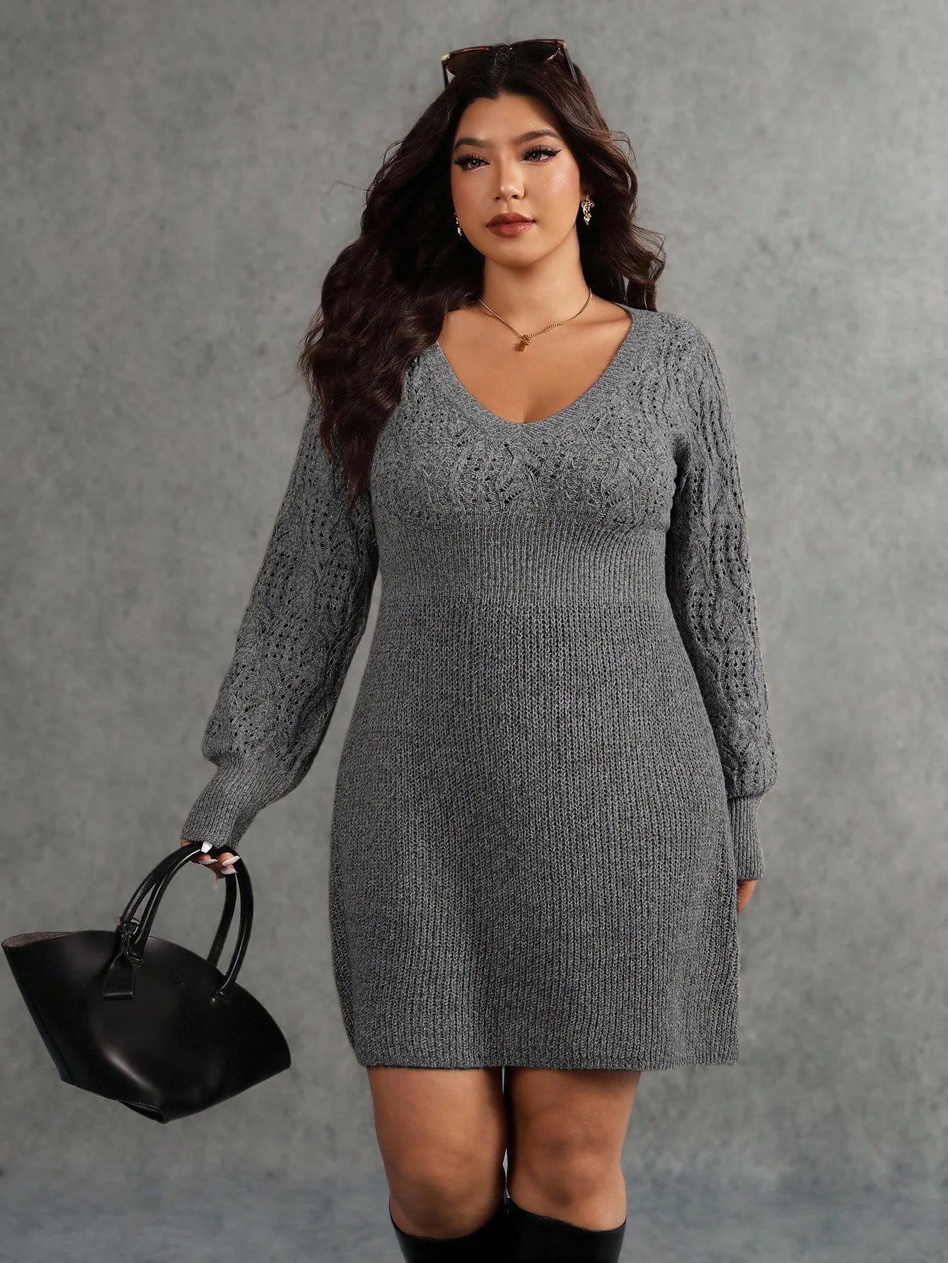 Abito maglione casual a maniche lunghe in maglia tinta unita da donna, adatto per l'autunno/inverno, taglie comode