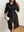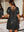 Abito casual elegante nero da donna con scollo a V profondo, maniche a lanterna a sbuffo, dritto