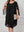 Vestito elegante nero con volant, a vita alta, in chiffon, con taglio a balze