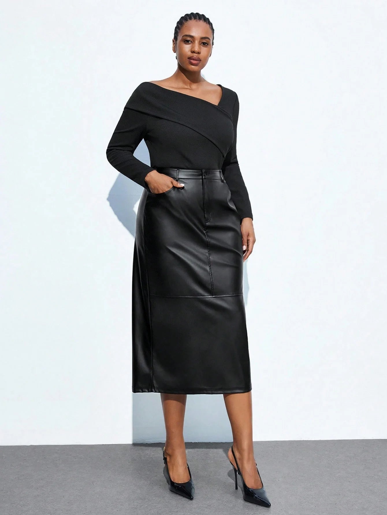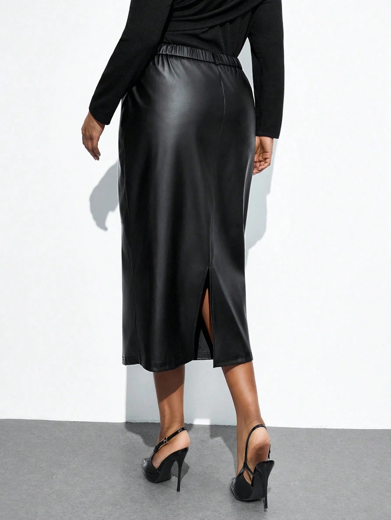 Gonna aderente in ecopelle nera con spacco sul retro, stile retrò