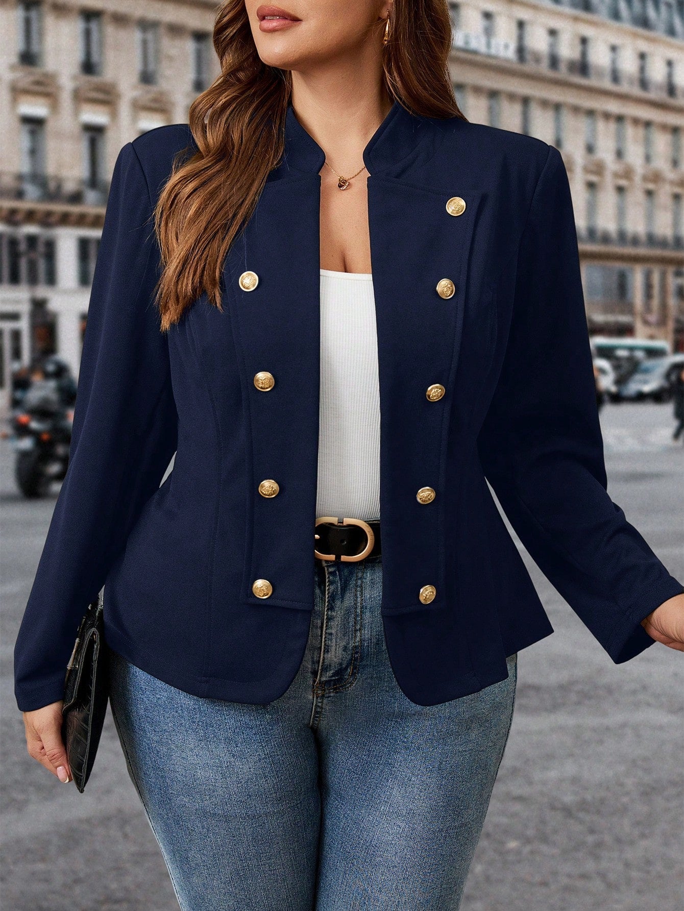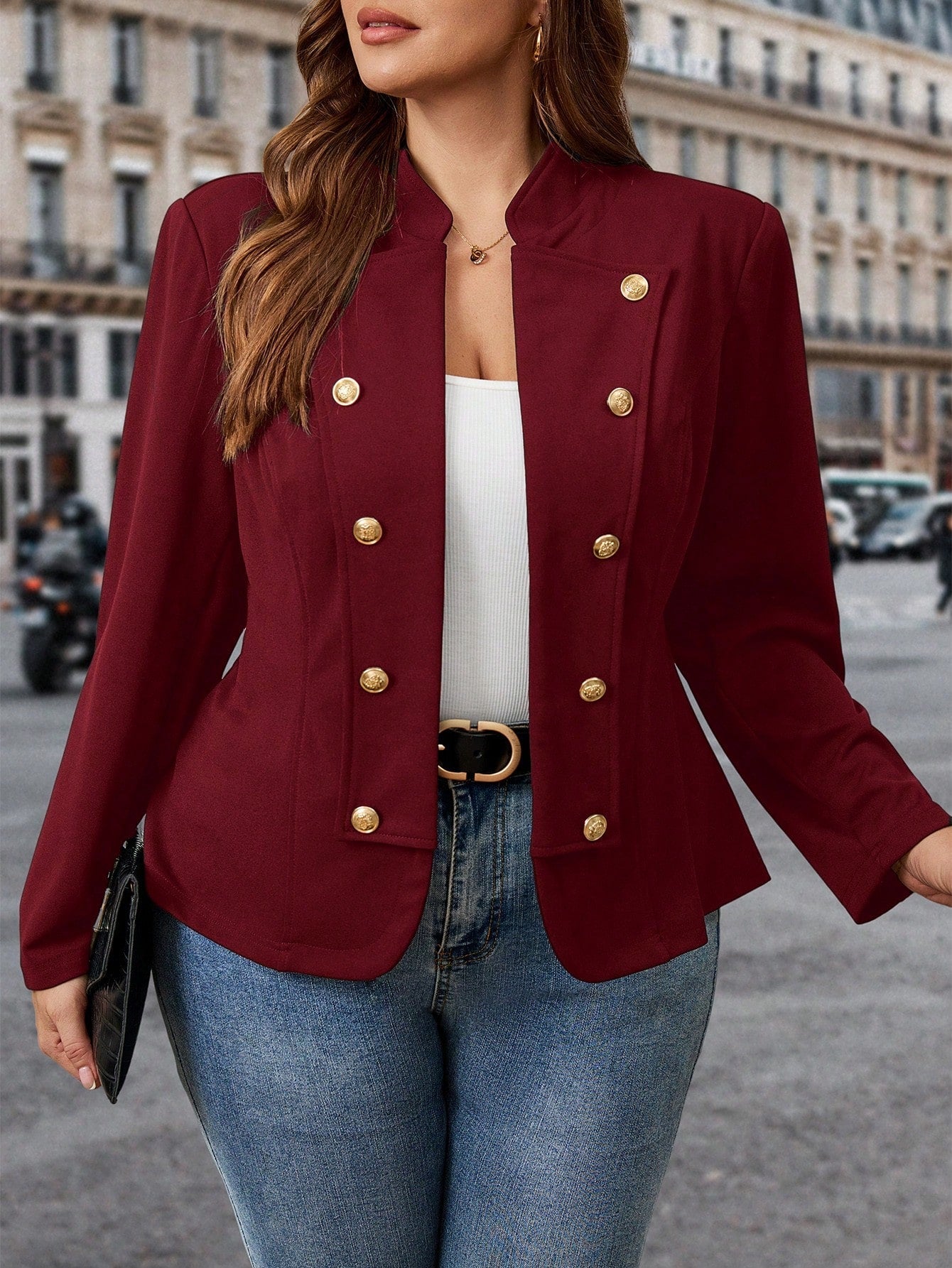 Giacca casual doppio petto tinta unita per l autunno, taglie comode