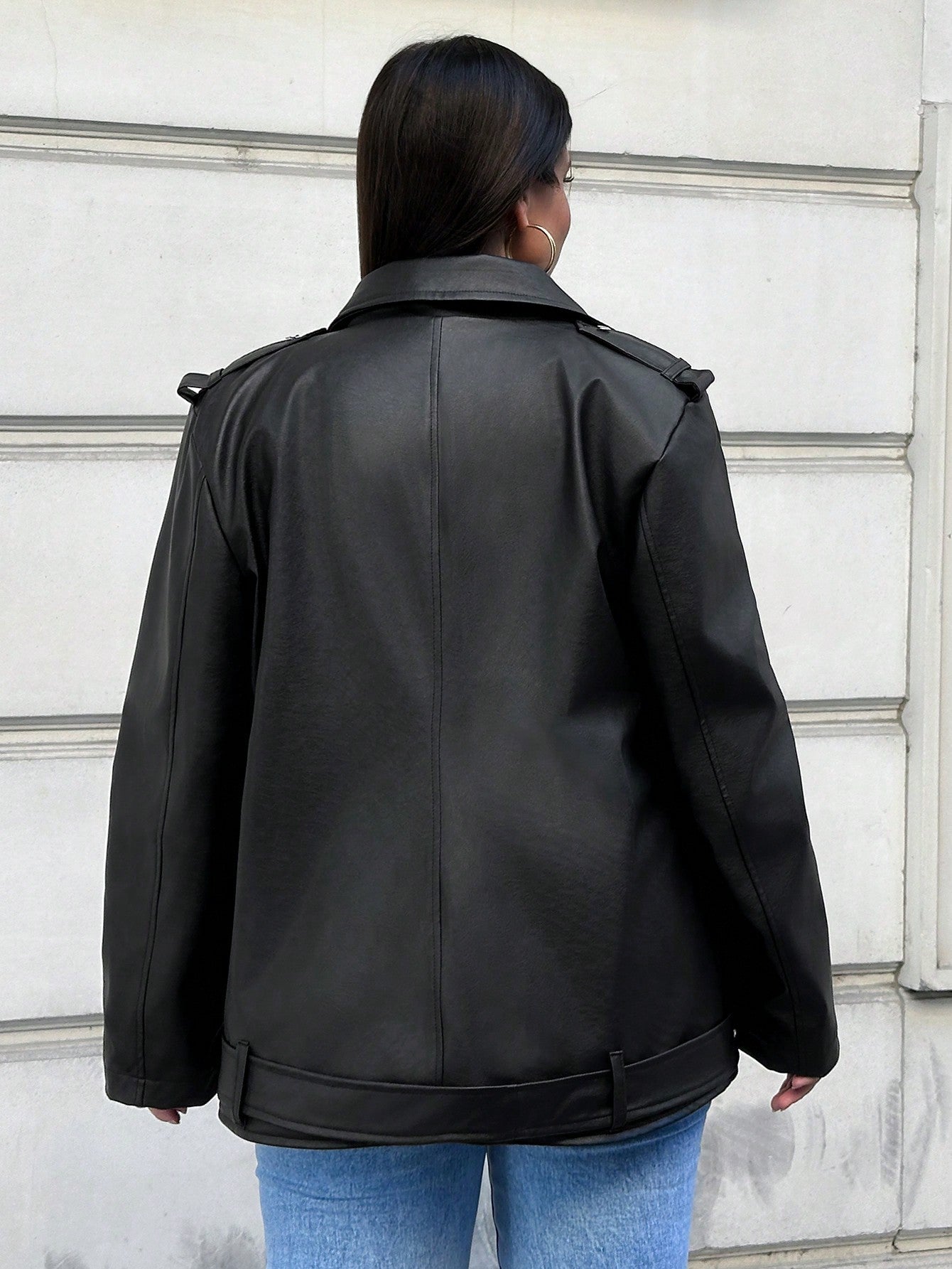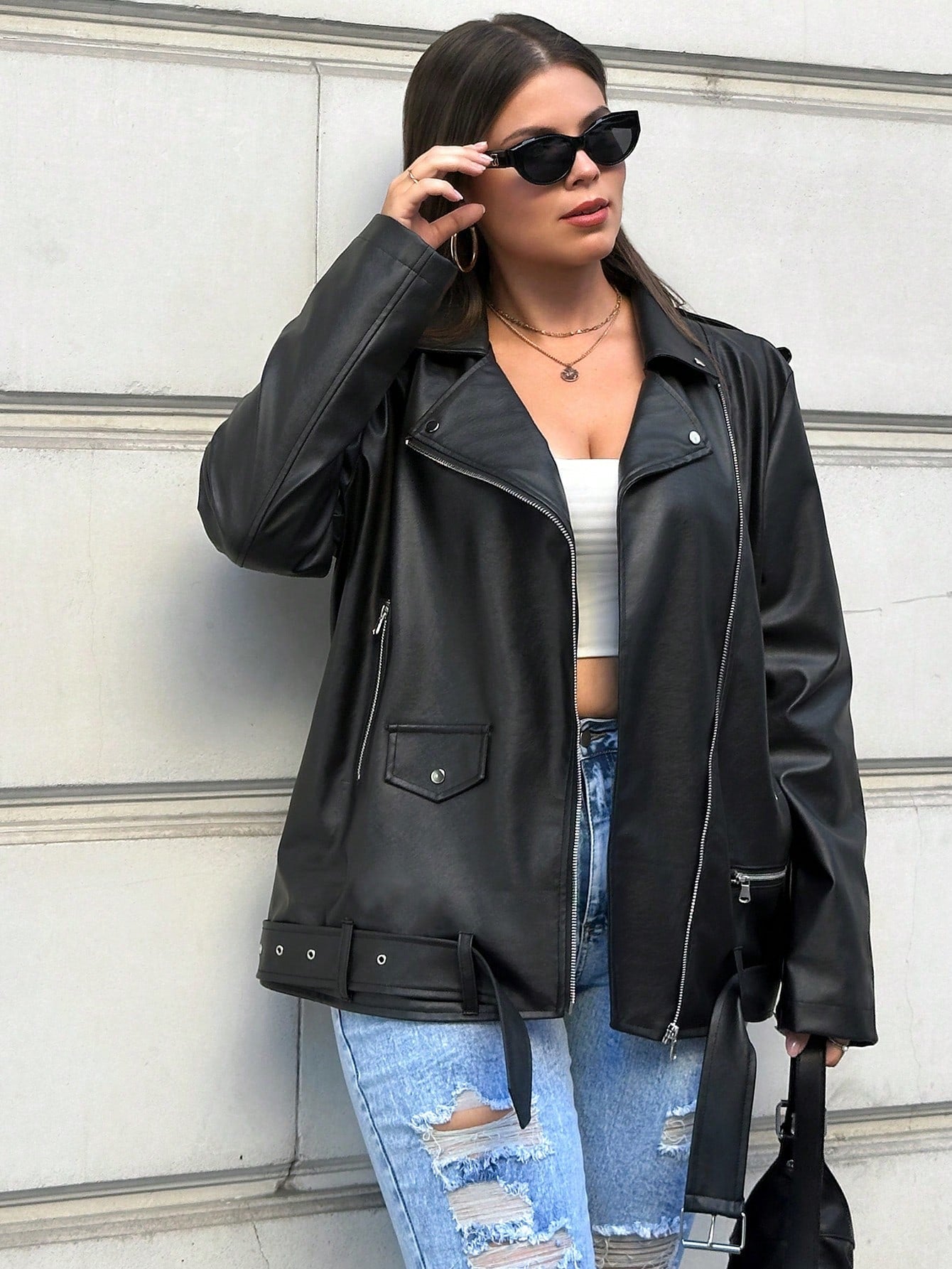 Giacca Moto in Pelle PU con chiusura lampo Taglie Larger