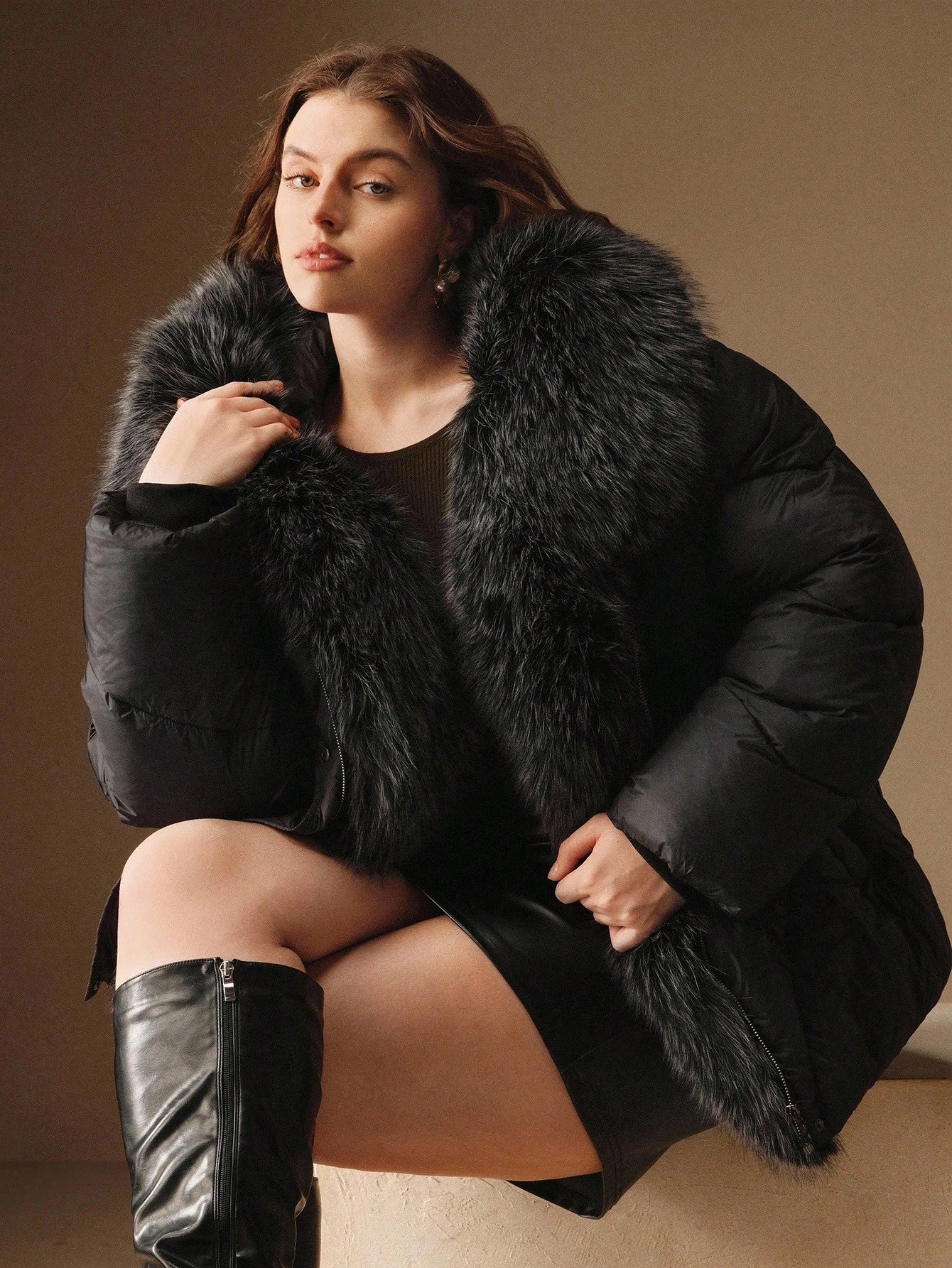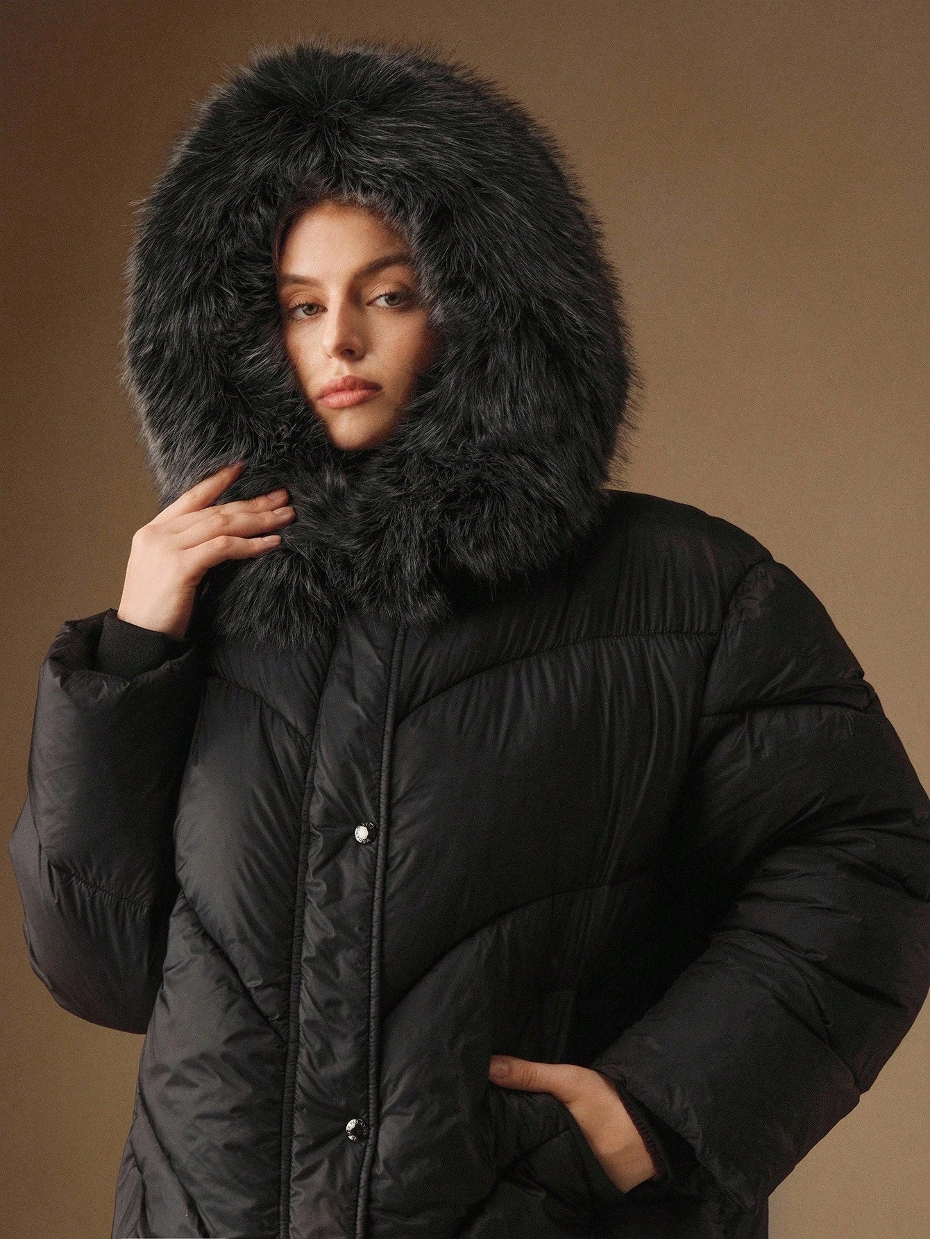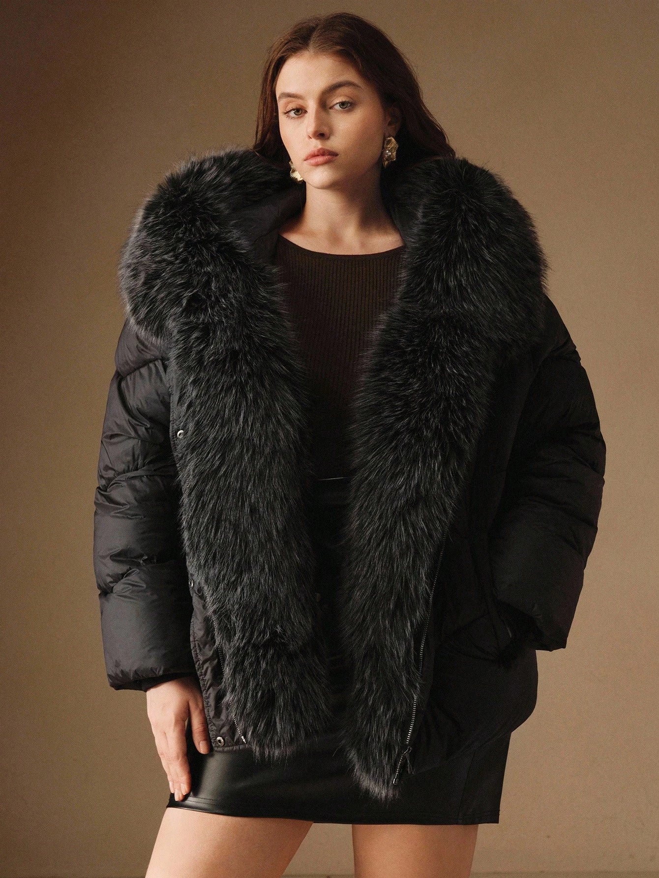 Giacca oversize di lusso da donna con cappuccio, colletto in pelliccia sintetica, tasche, morbida e spessa, adatta per autunno, inverno