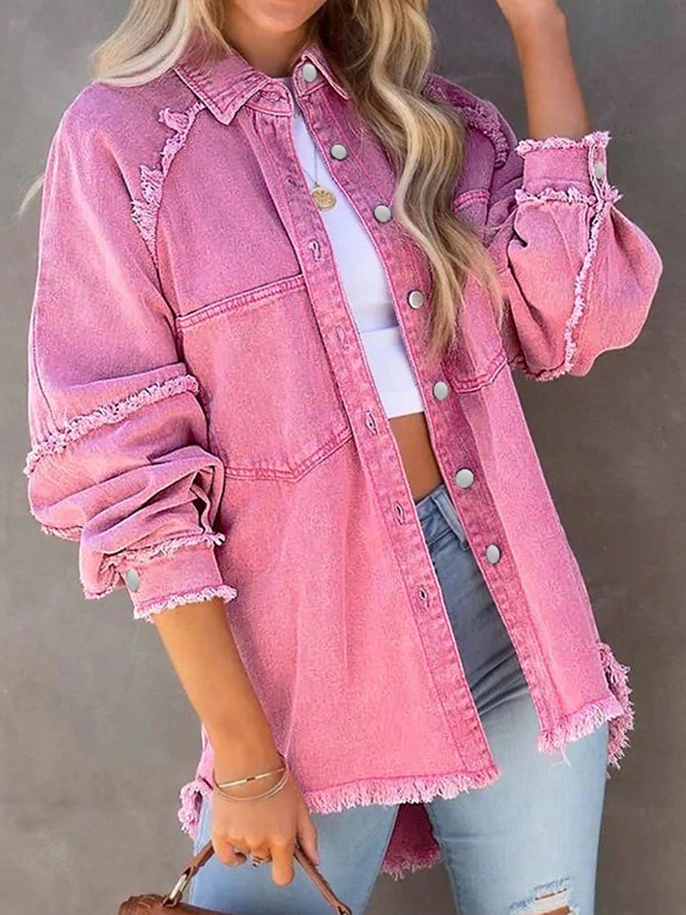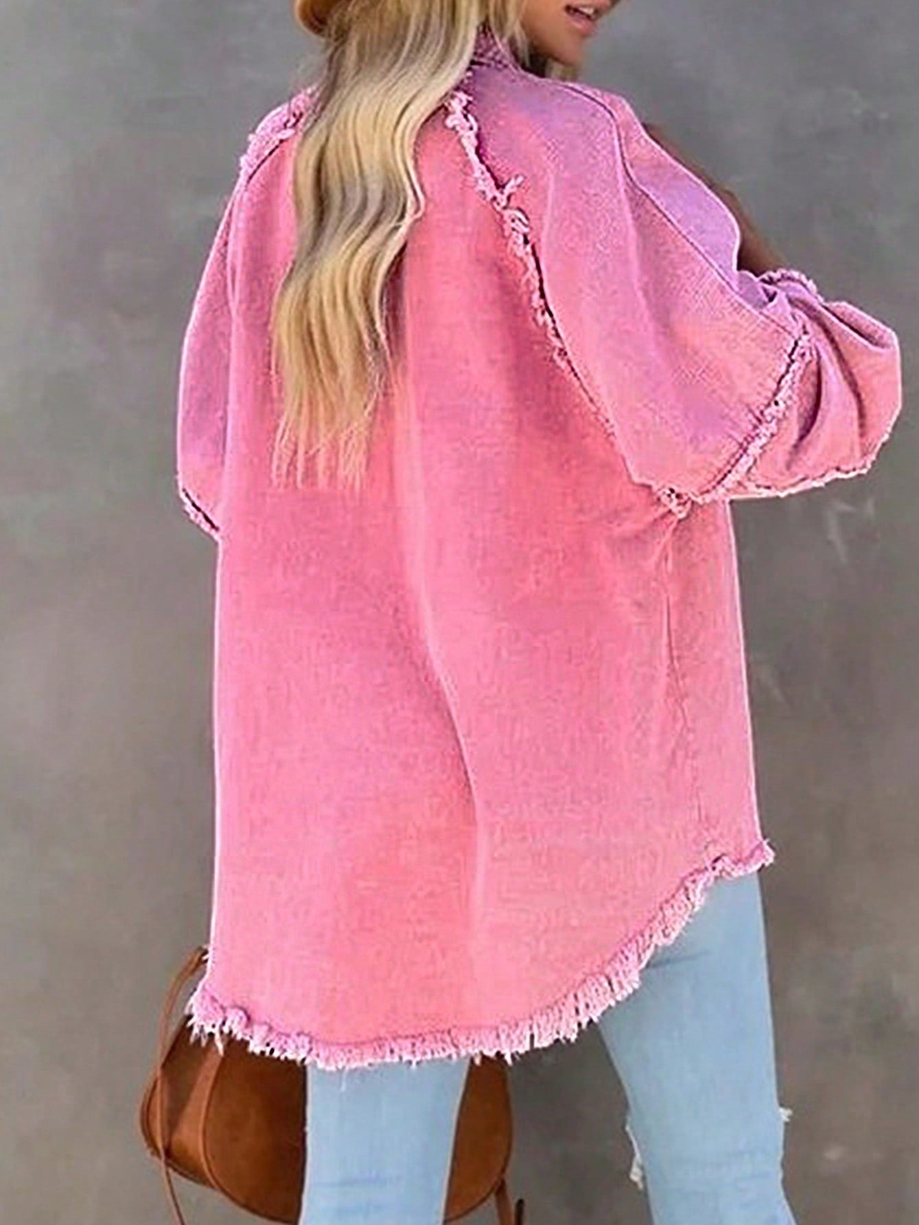 Giubbino In Denim Rosa Sfilacciato Plus Size Y2k Con Vestibilità Ampia