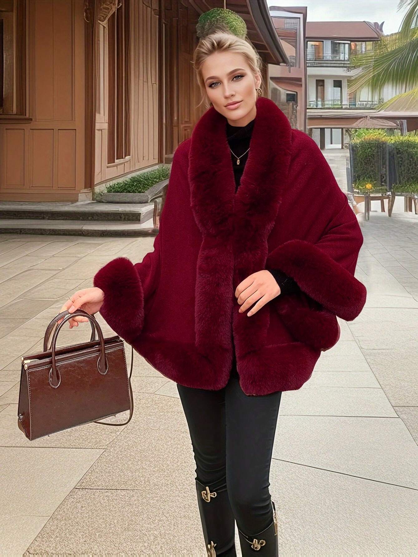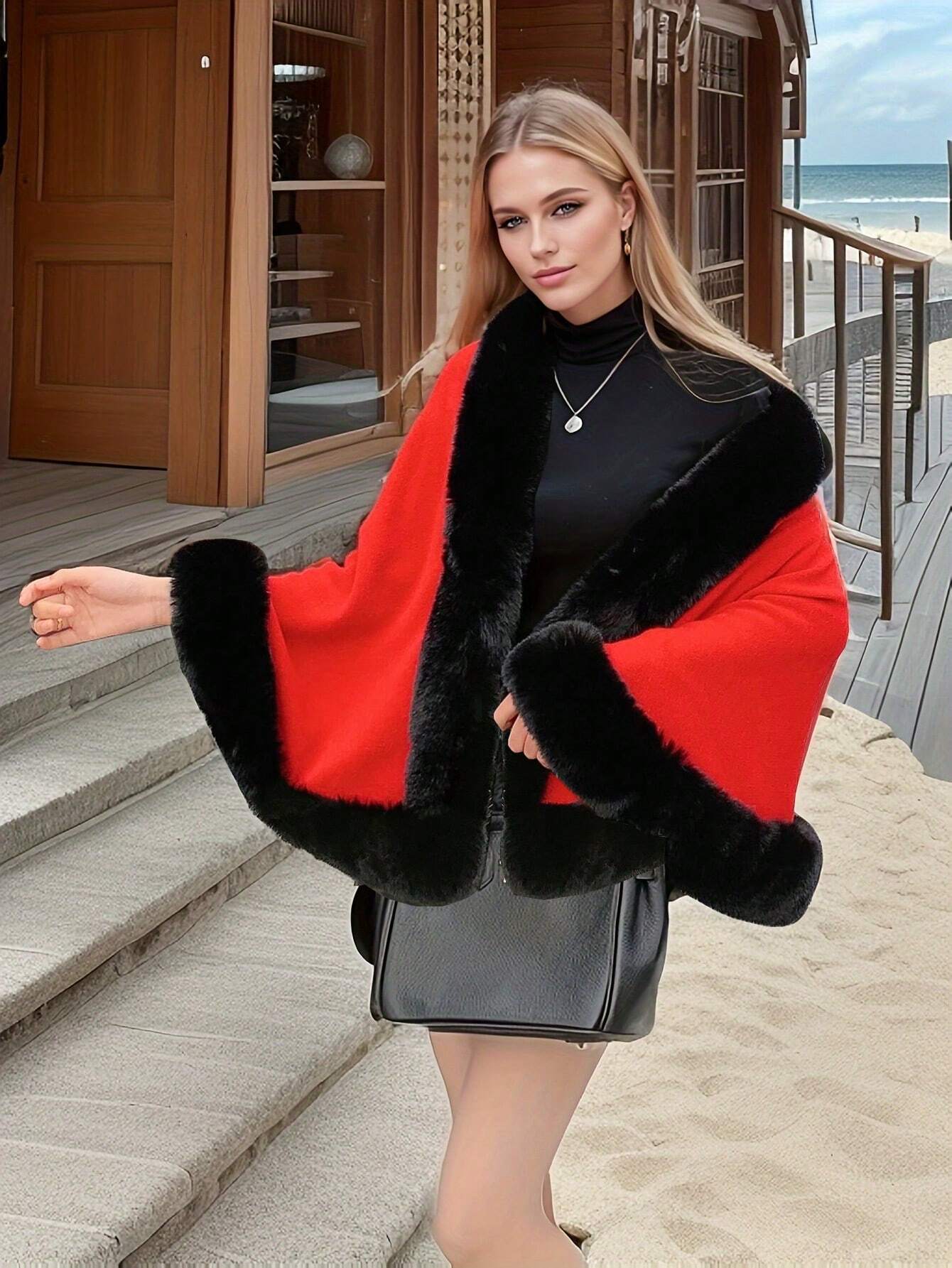 Scialle a maglia effetto visone, tinta unita, stile vintage elegante