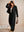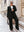 Set da donna taglie forti elegante composto da cappotto nero a scollo a V profondo extra lungo (senza cintura) e pantaloni 2 pezzi