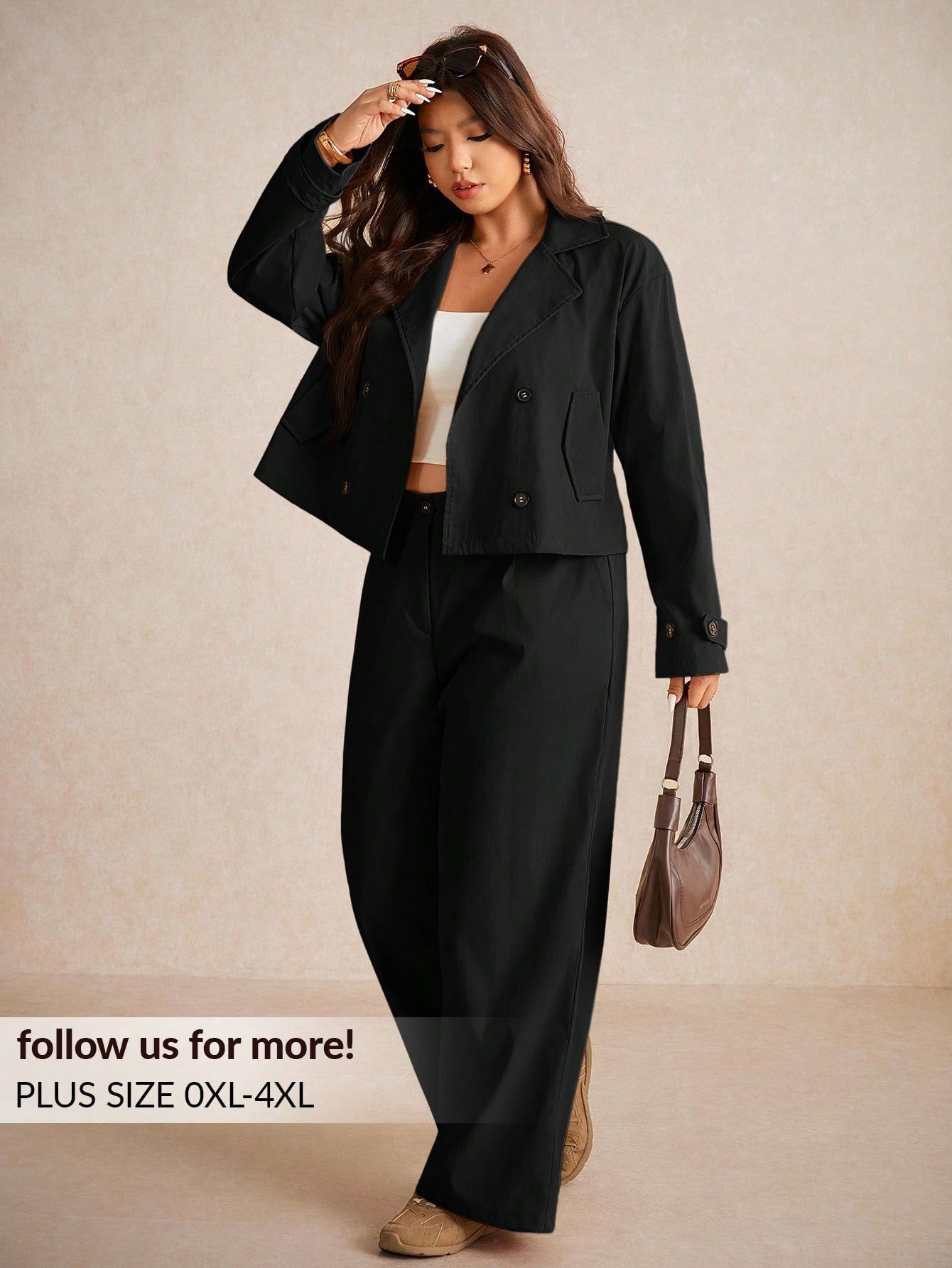 Set di giacca antivento casual basic e pantaloni casual a gamba dritta, taglie comode