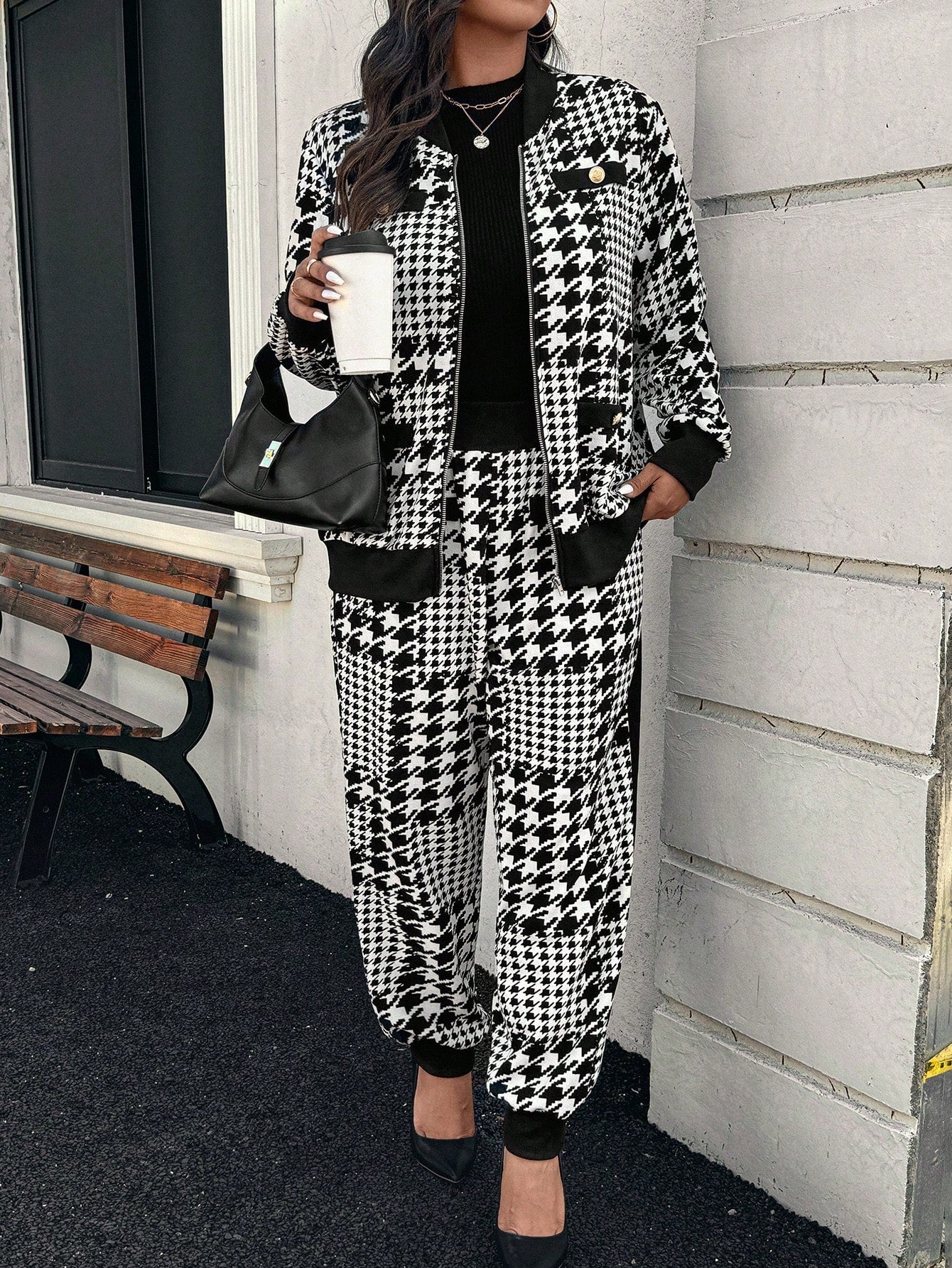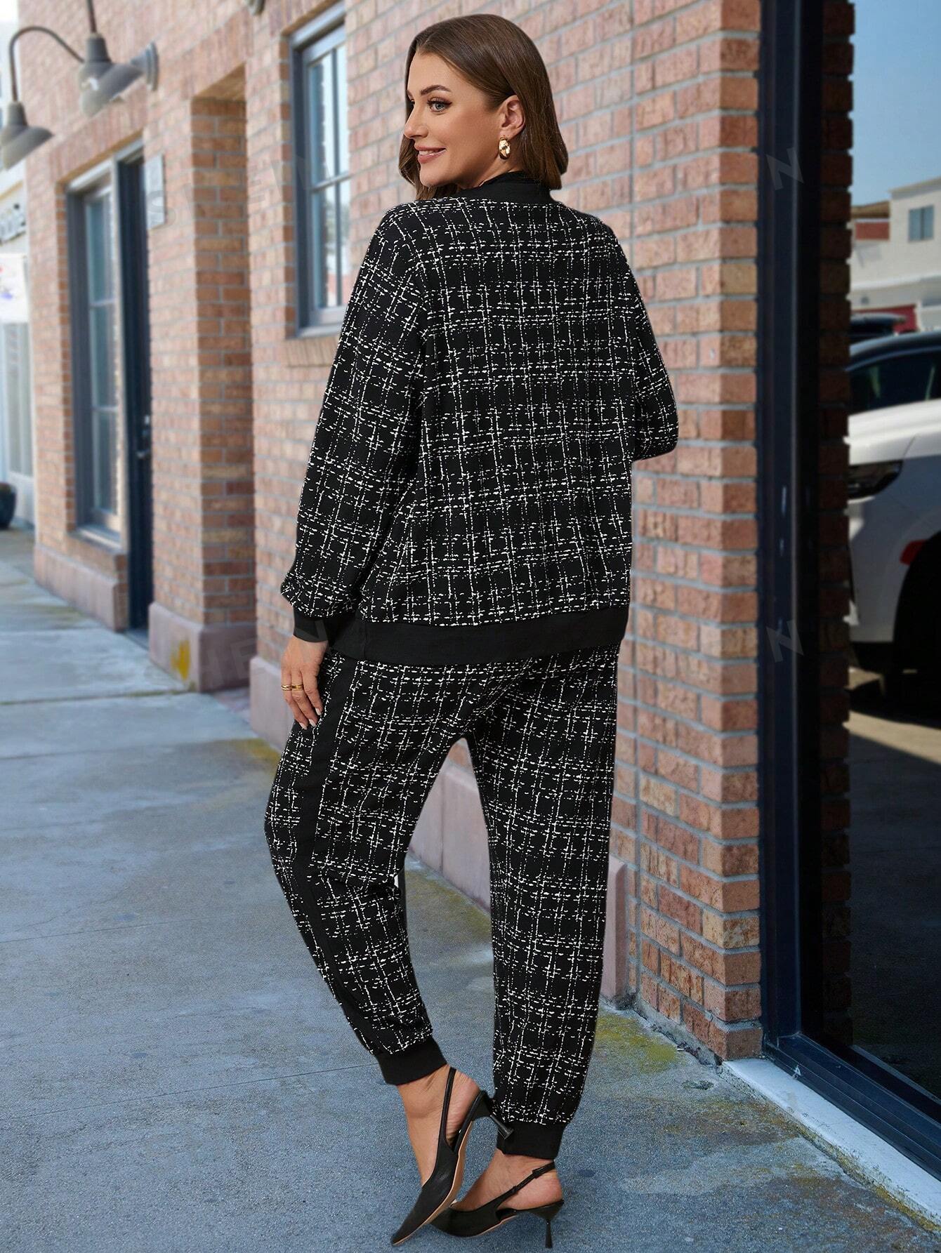 Set giacca con cerniera e pantaloni a quadri per donne taglie comode
