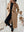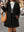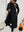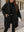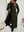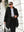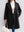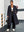 Cappotto midi da donna in maglia di lana nera con colletto alto, maniche 3/4 e bottoni decorativi