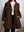 Cappotto in misto lana da donna taglie forti, marrone con bordo nero