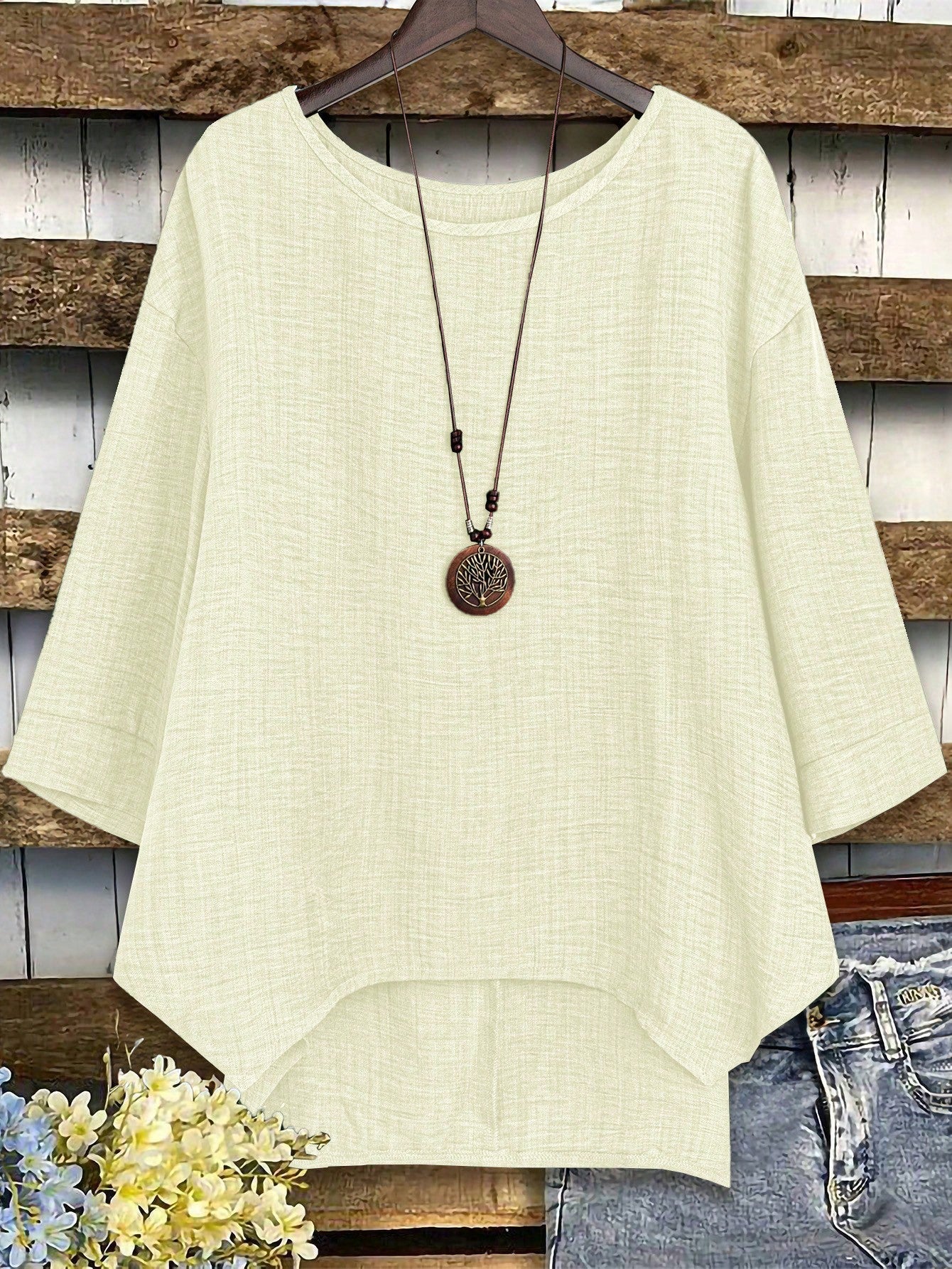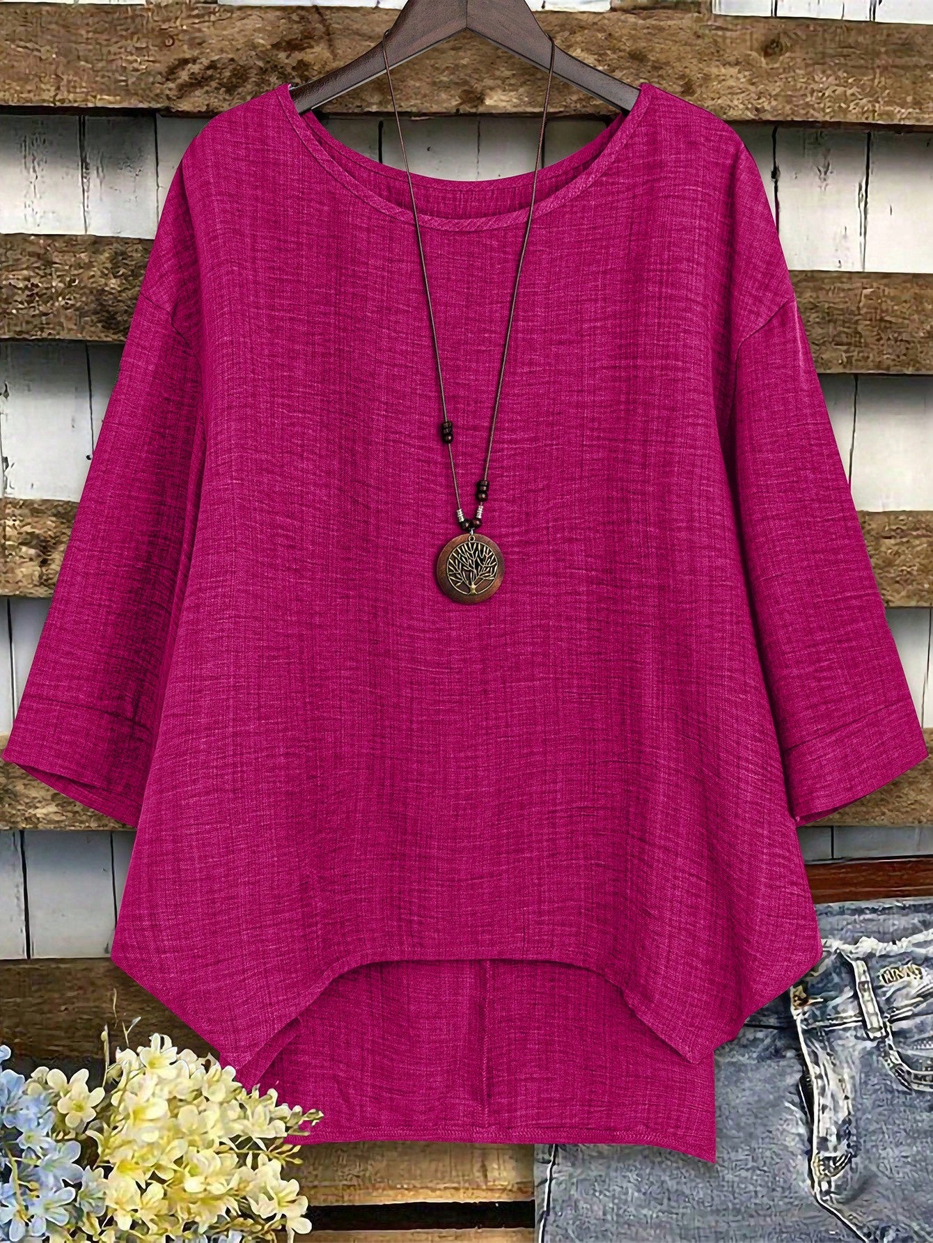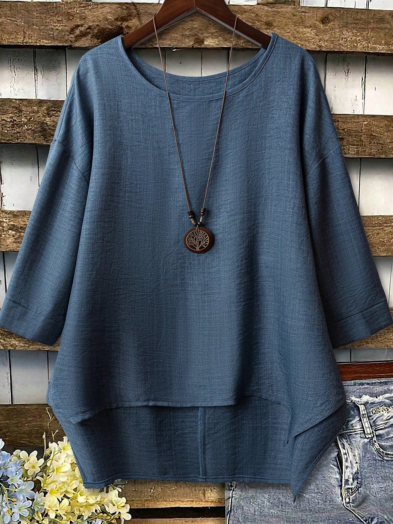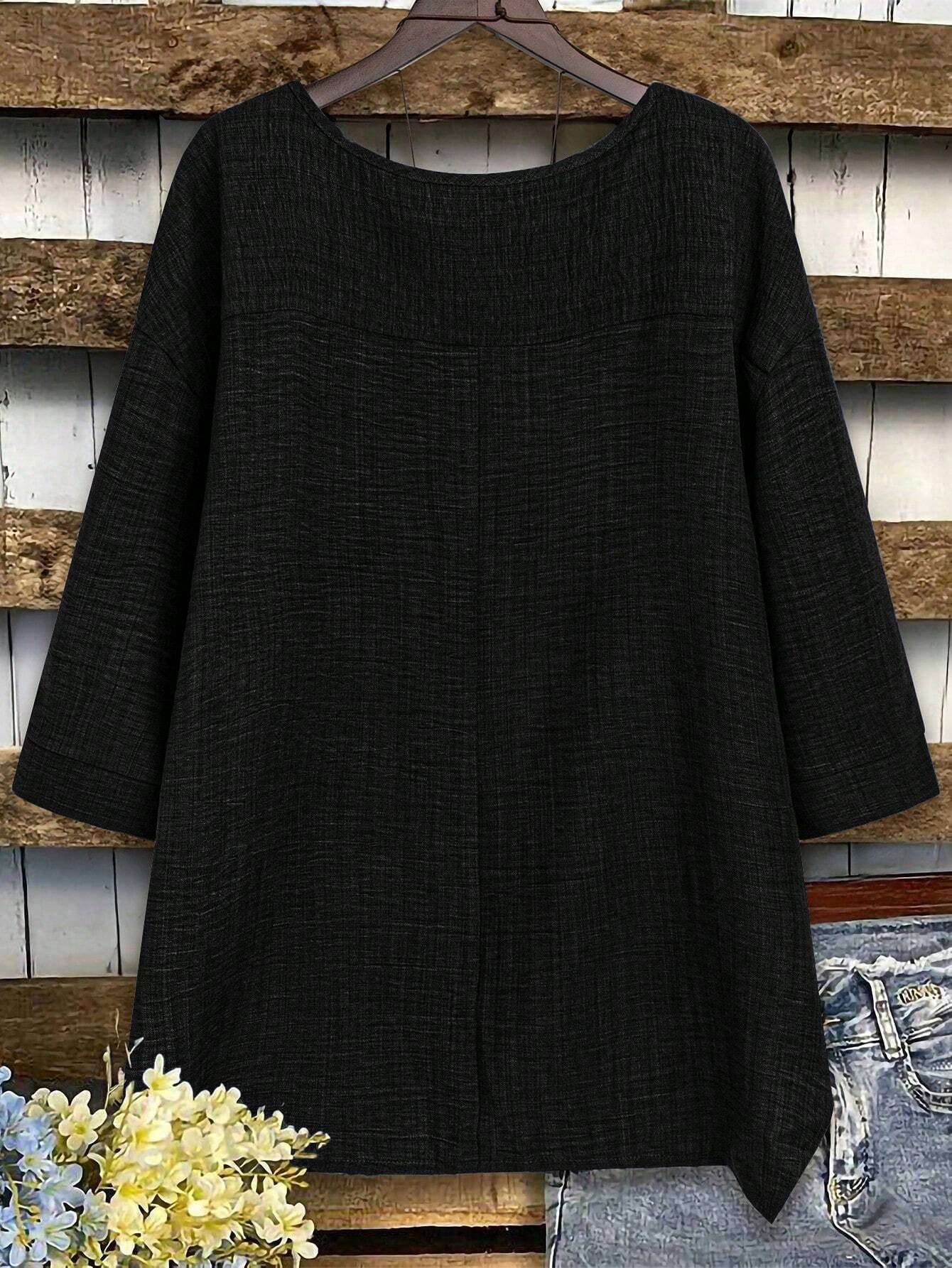 Camicetta oversize da donna con collo tondo, maniche a giro e manica lunga, modello ampio