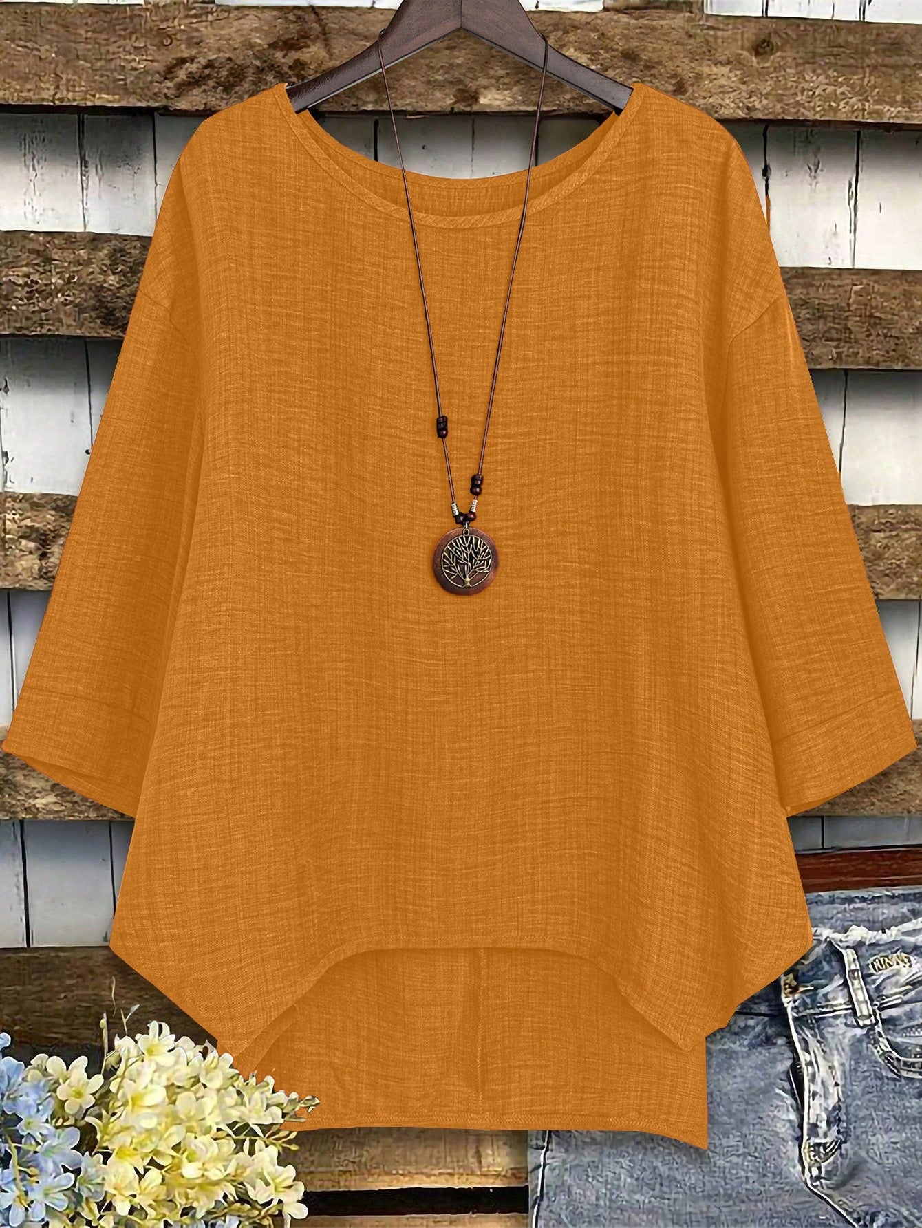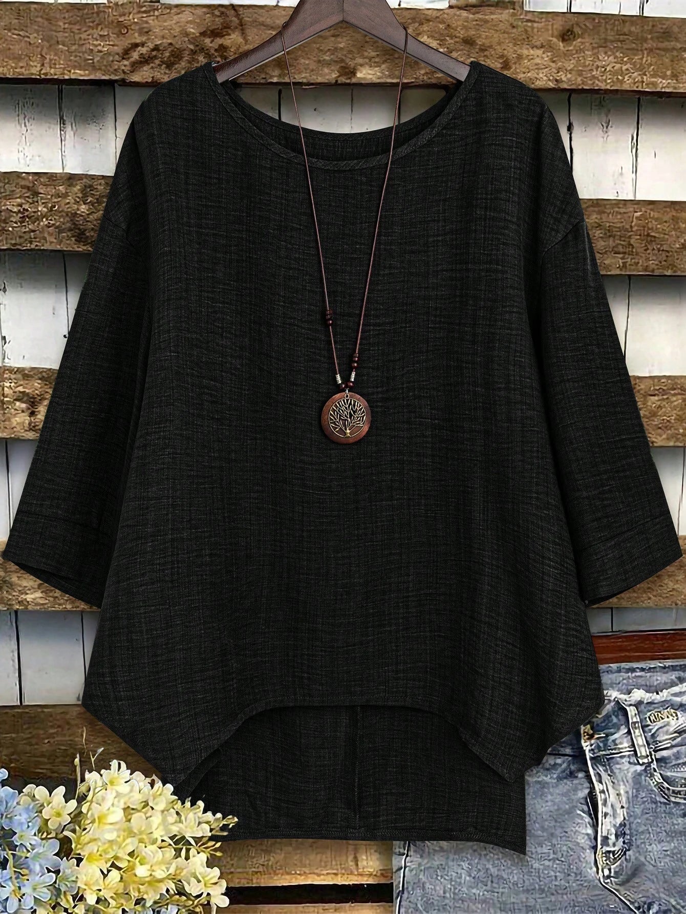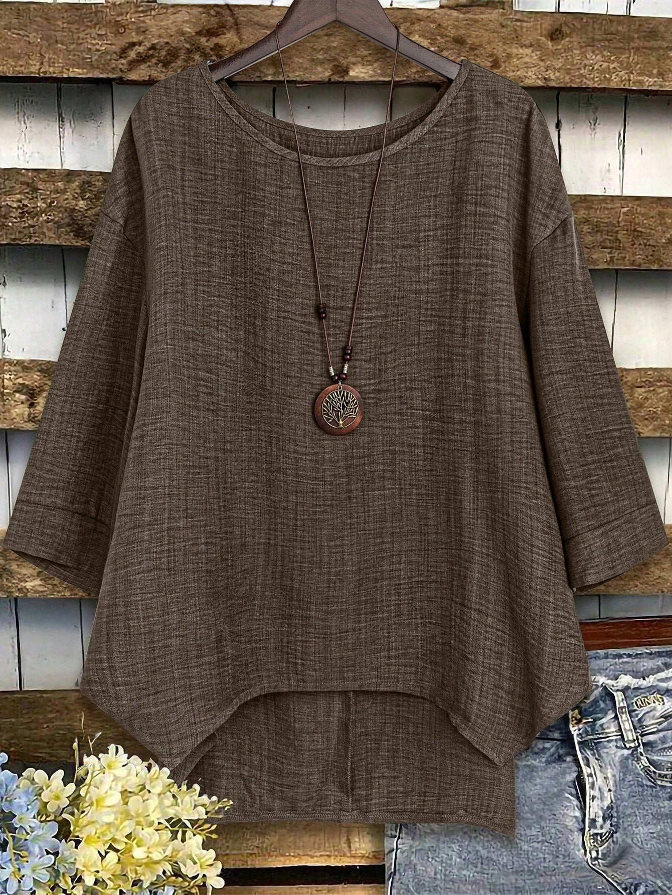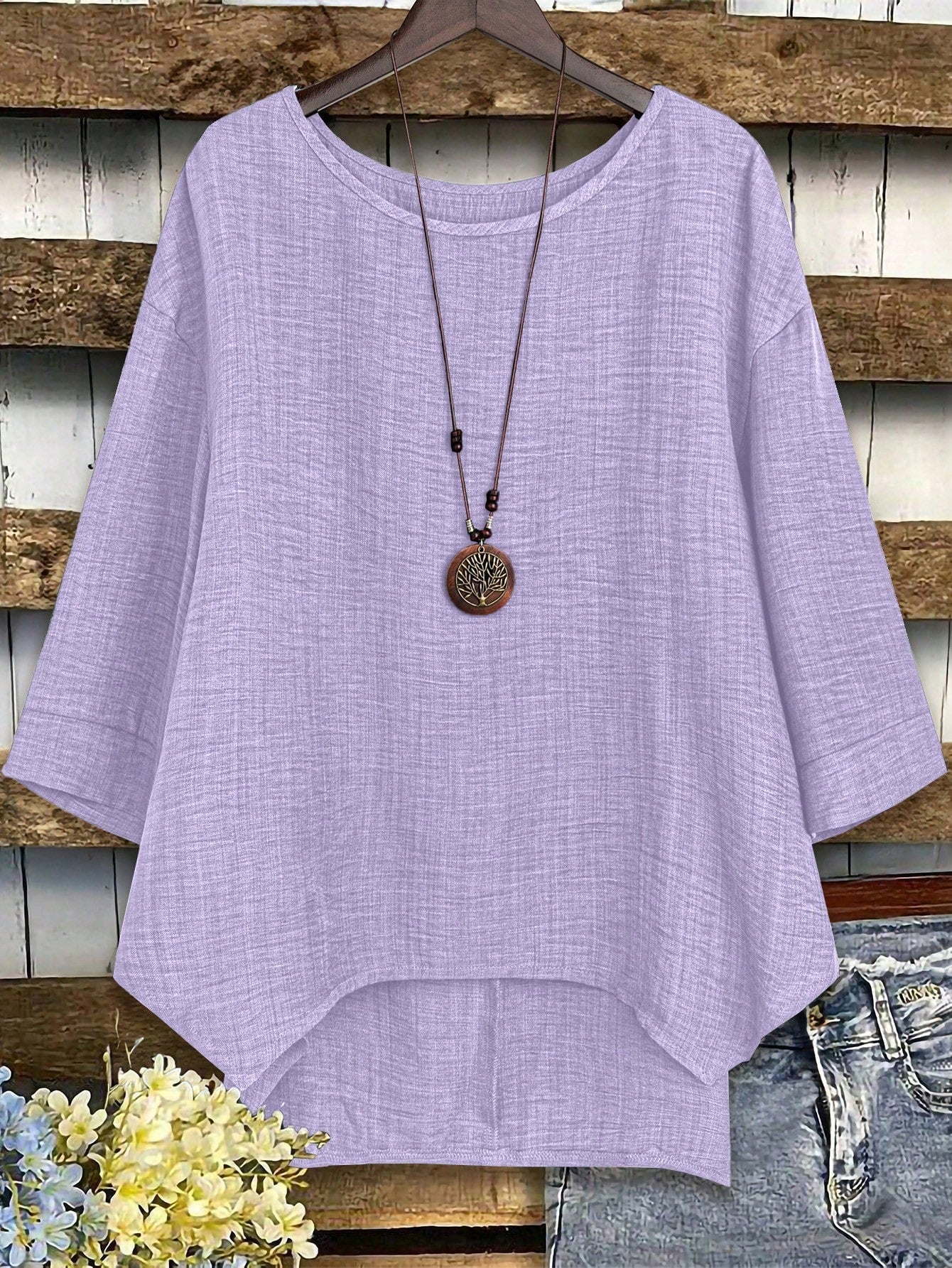 Camicetta oversize da donna con collo tondo, maniche a giro e manica lunga, modello ampio