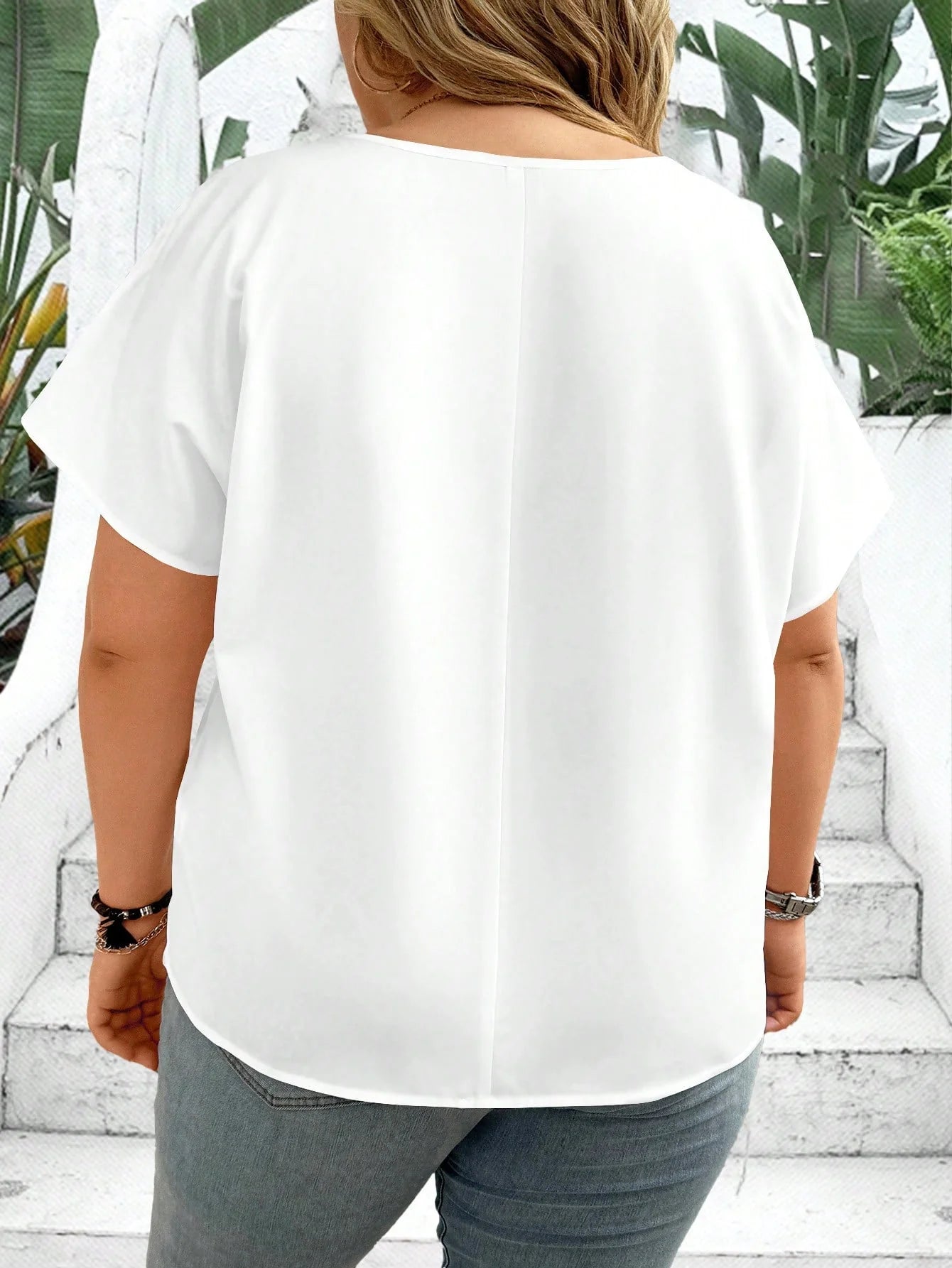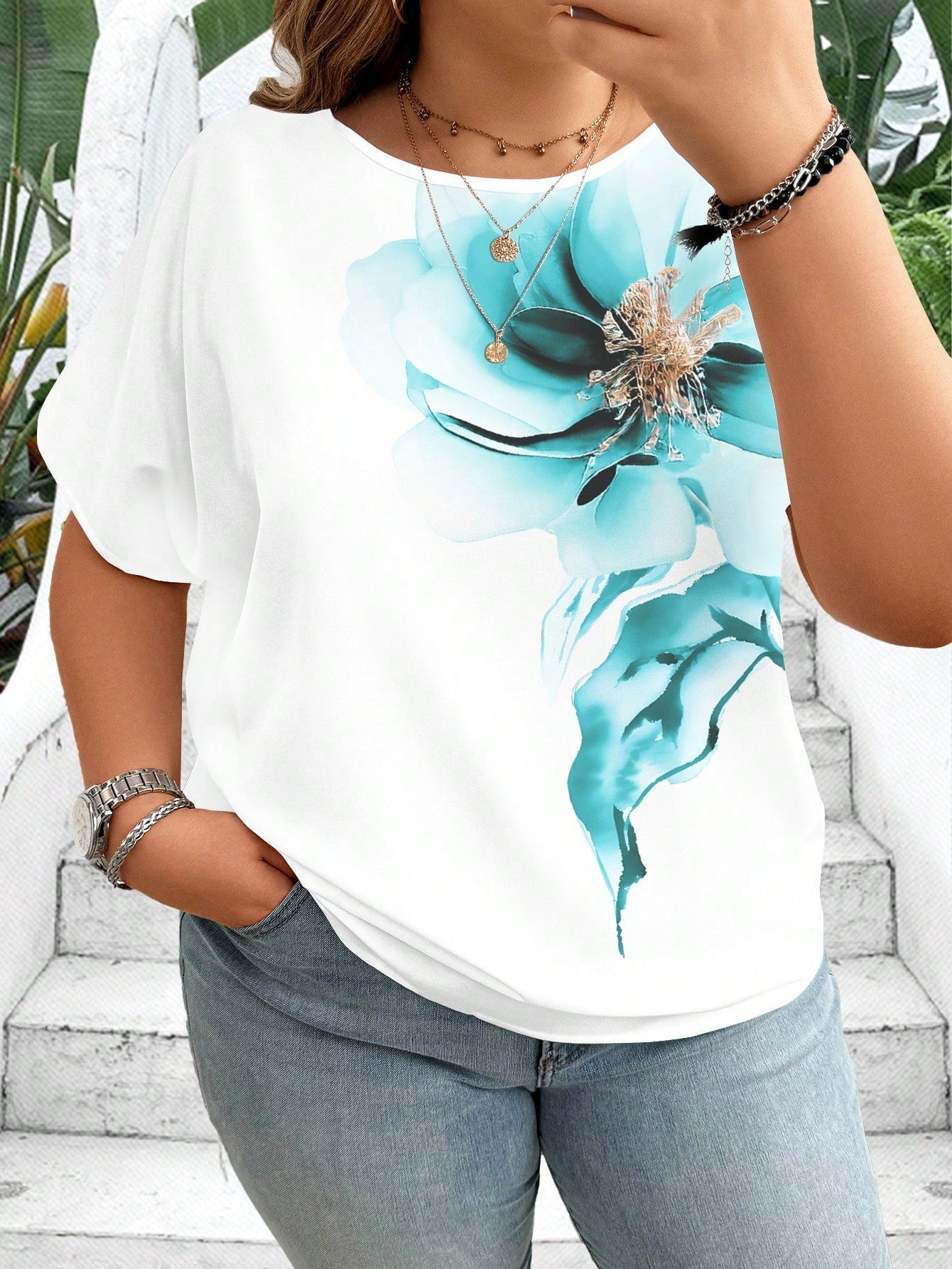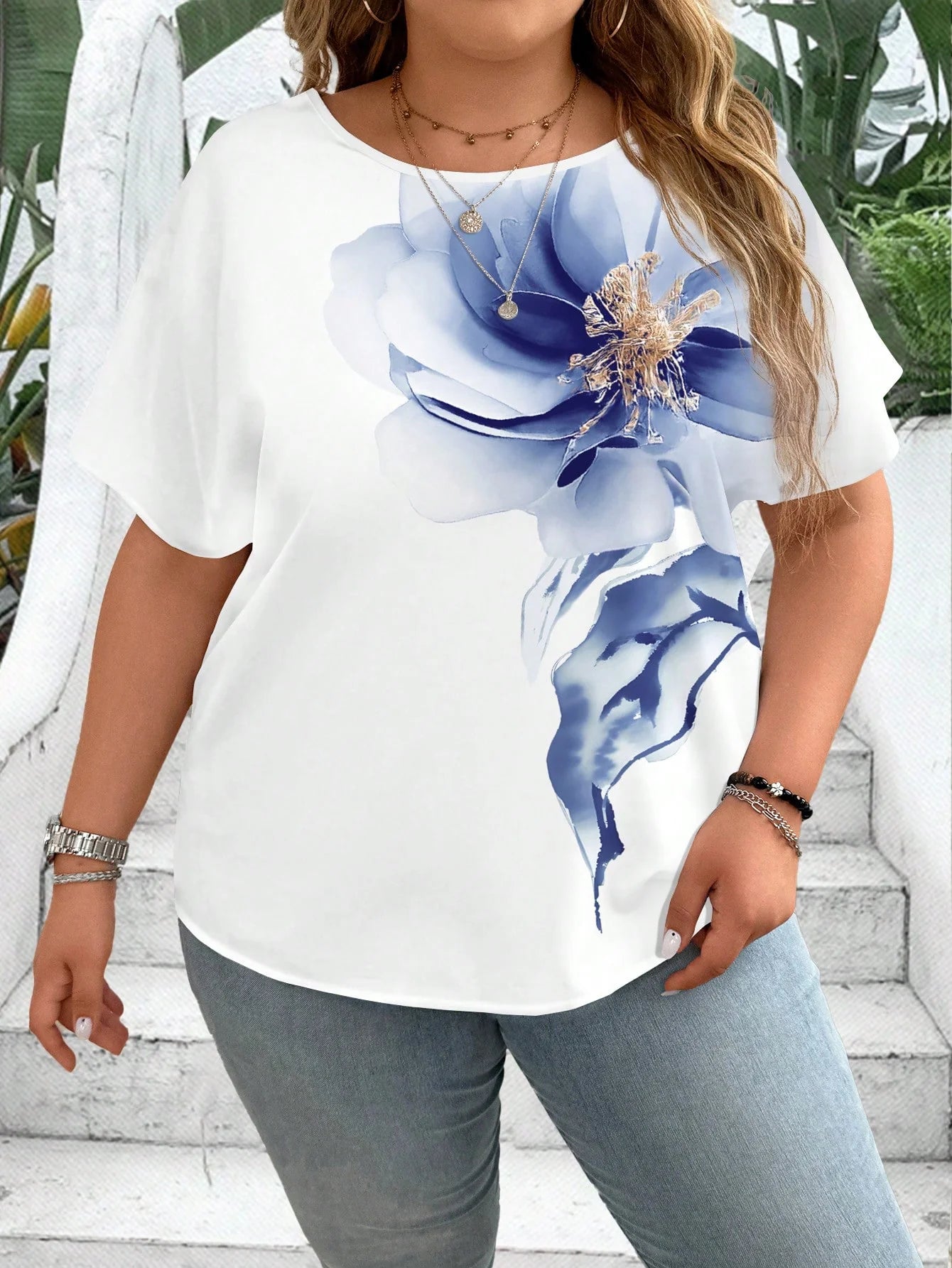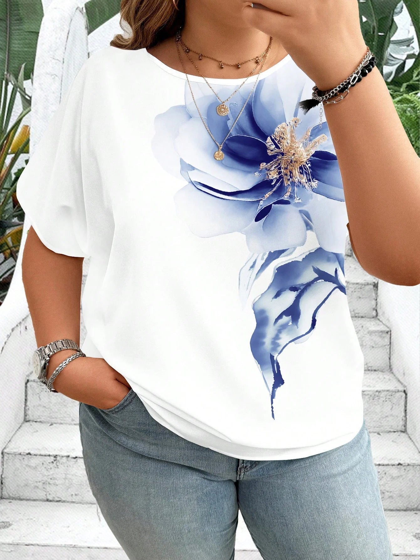Camicia casual a maniche corte da donna con scollo rotondo, oversize, con stampa floreale