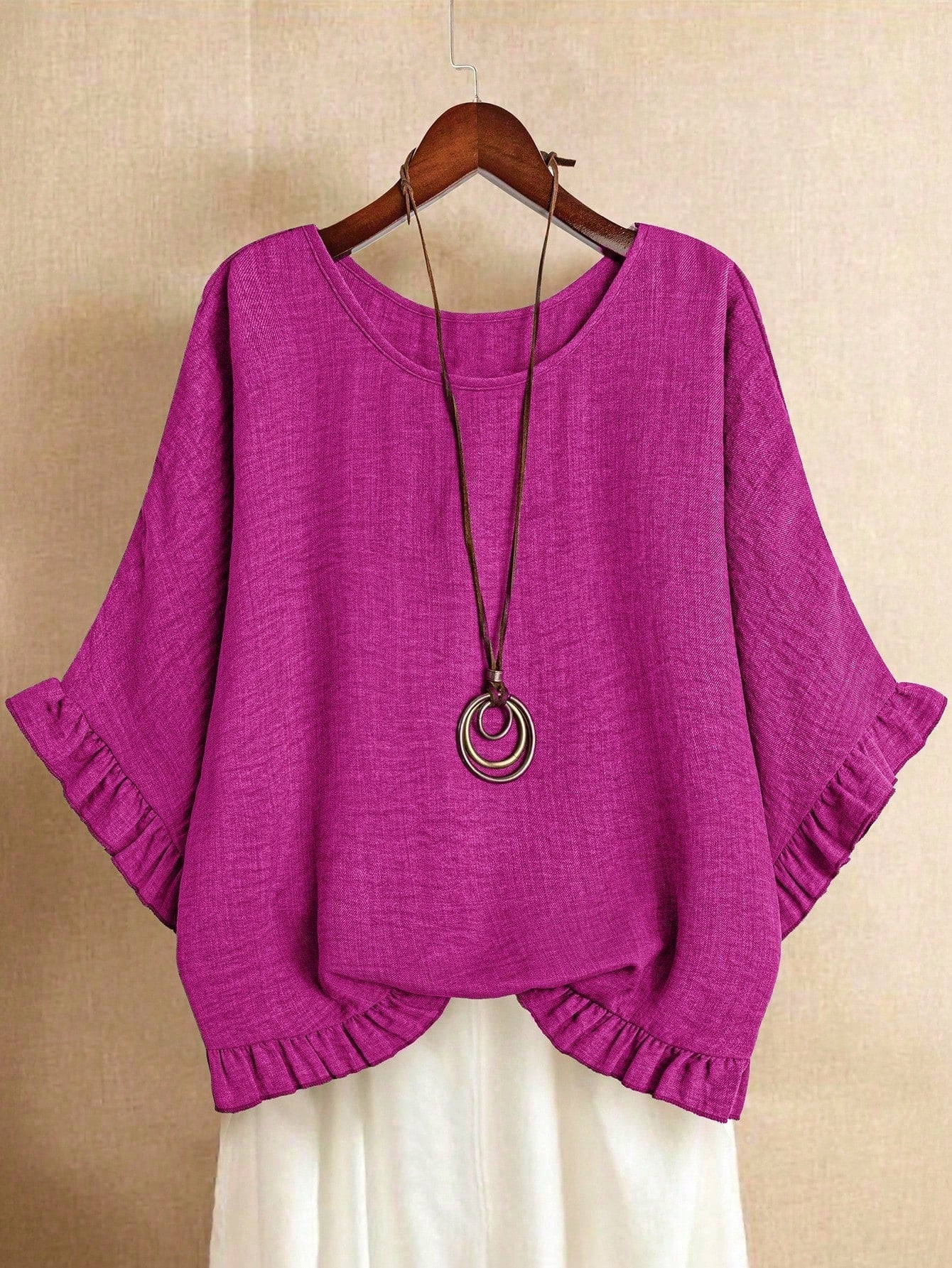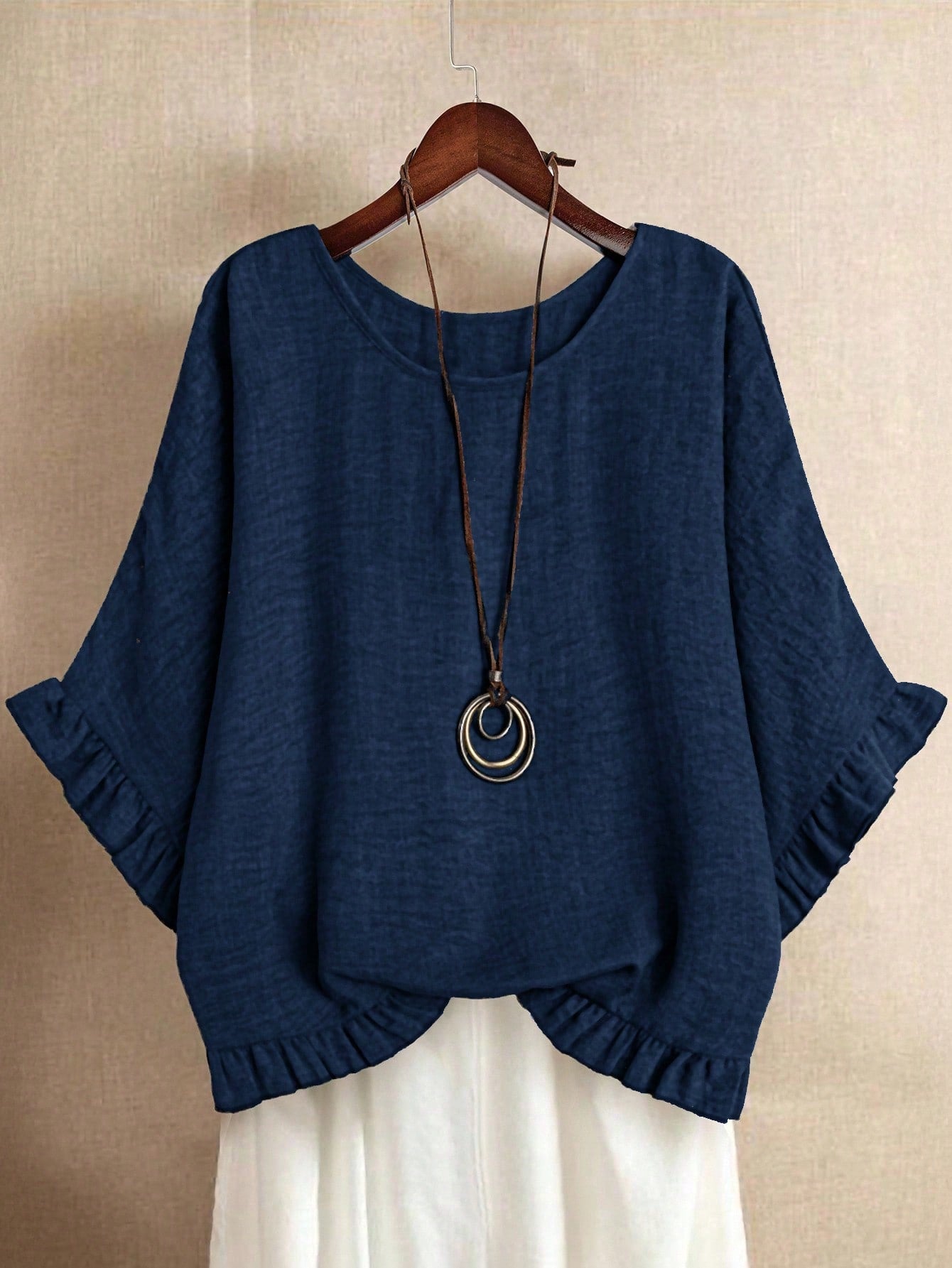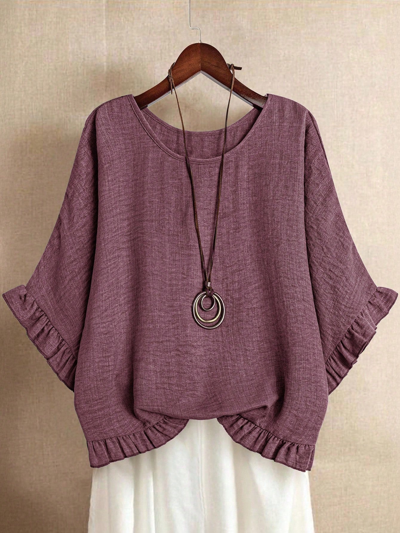 Camicia casual a maniche lunghe con collo rotondo e polsini, tinta unita, in taglie comode