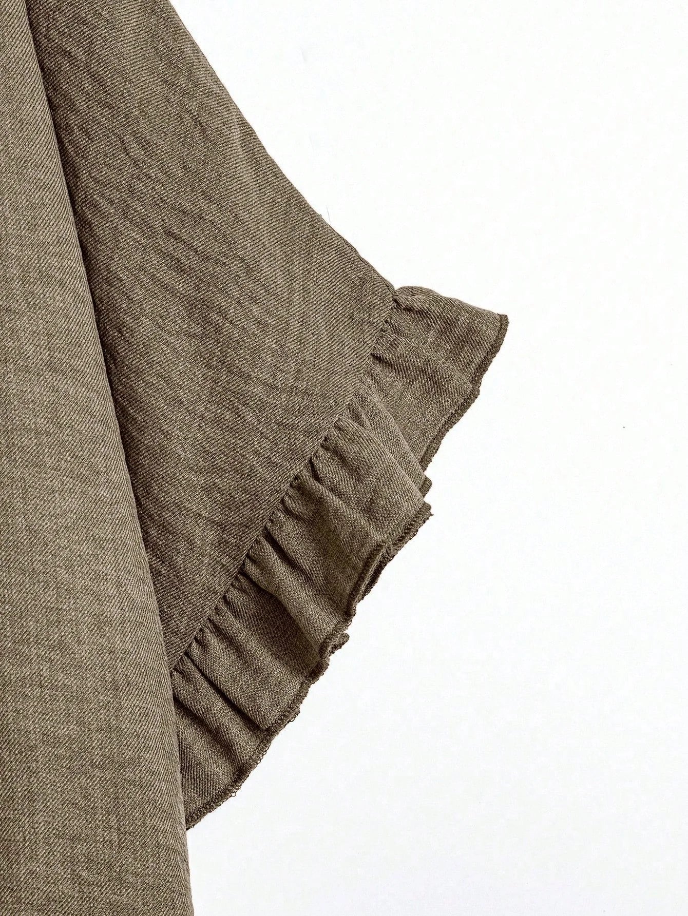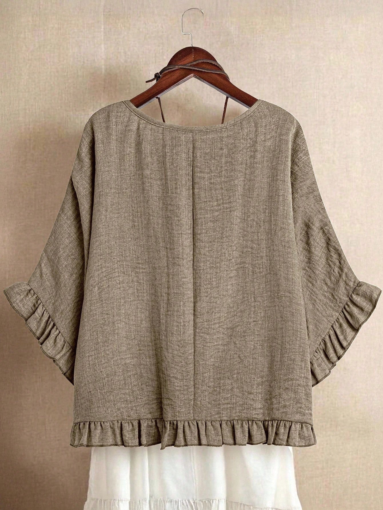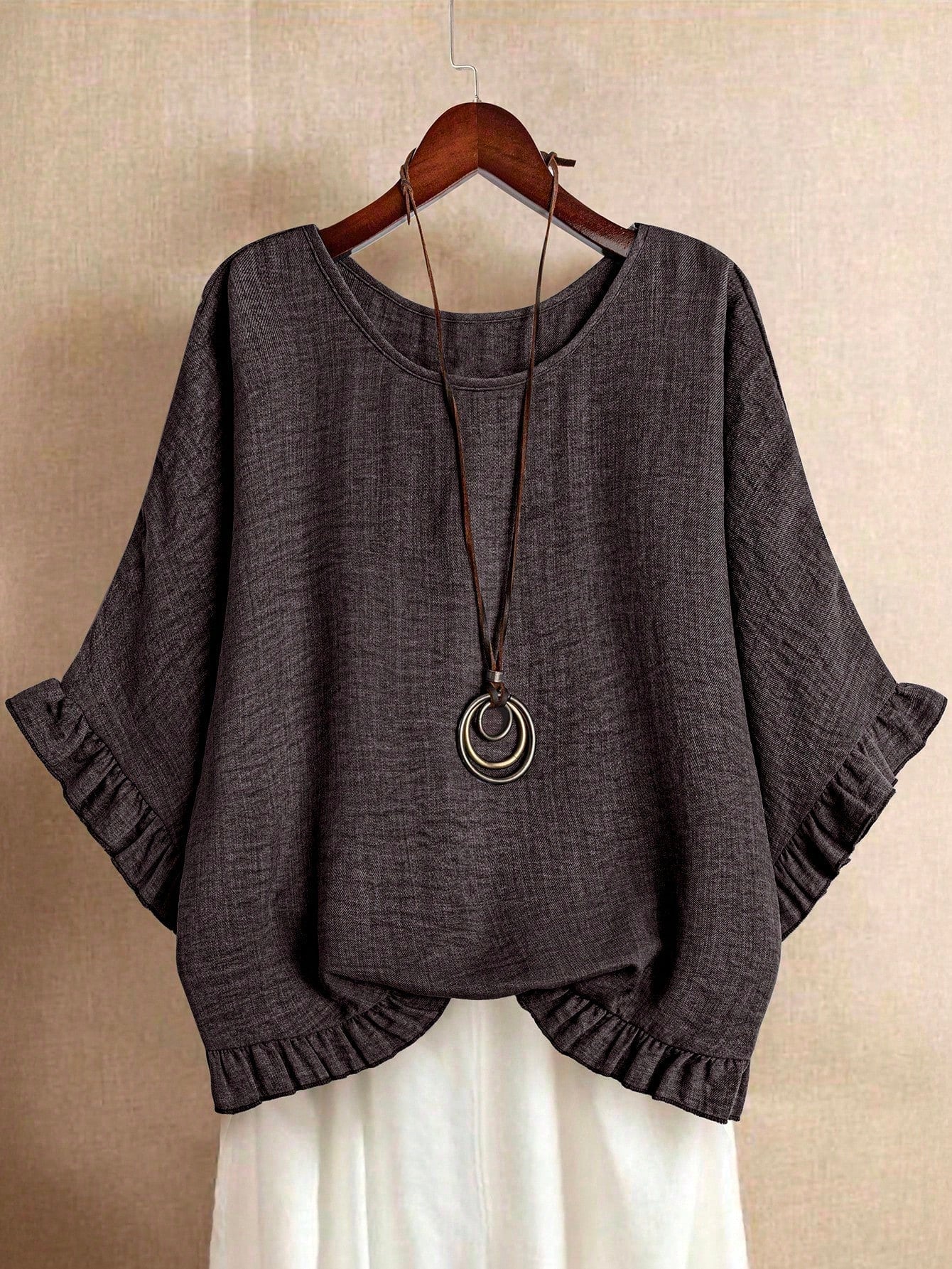 Camicia casual a maniche lunghe con collo rotondo e polsini, tinta unita, in taglie comode