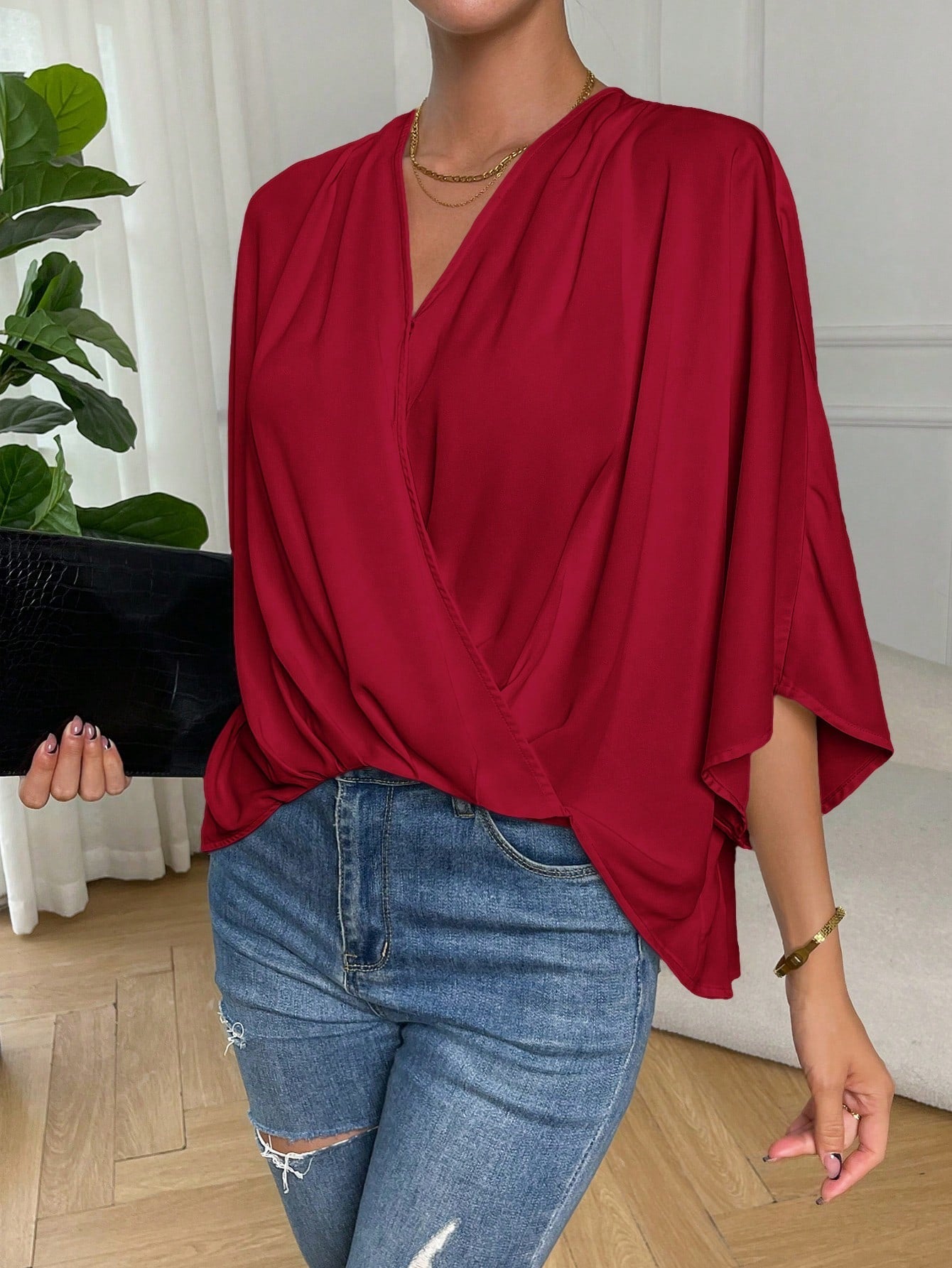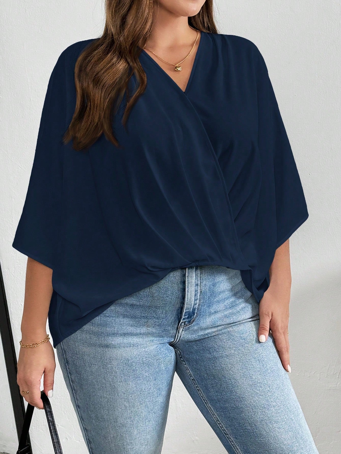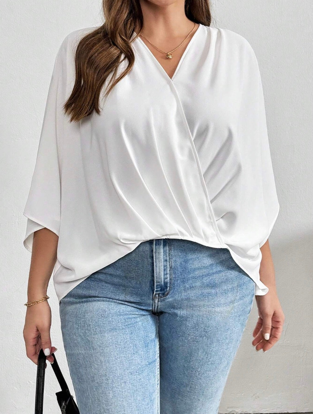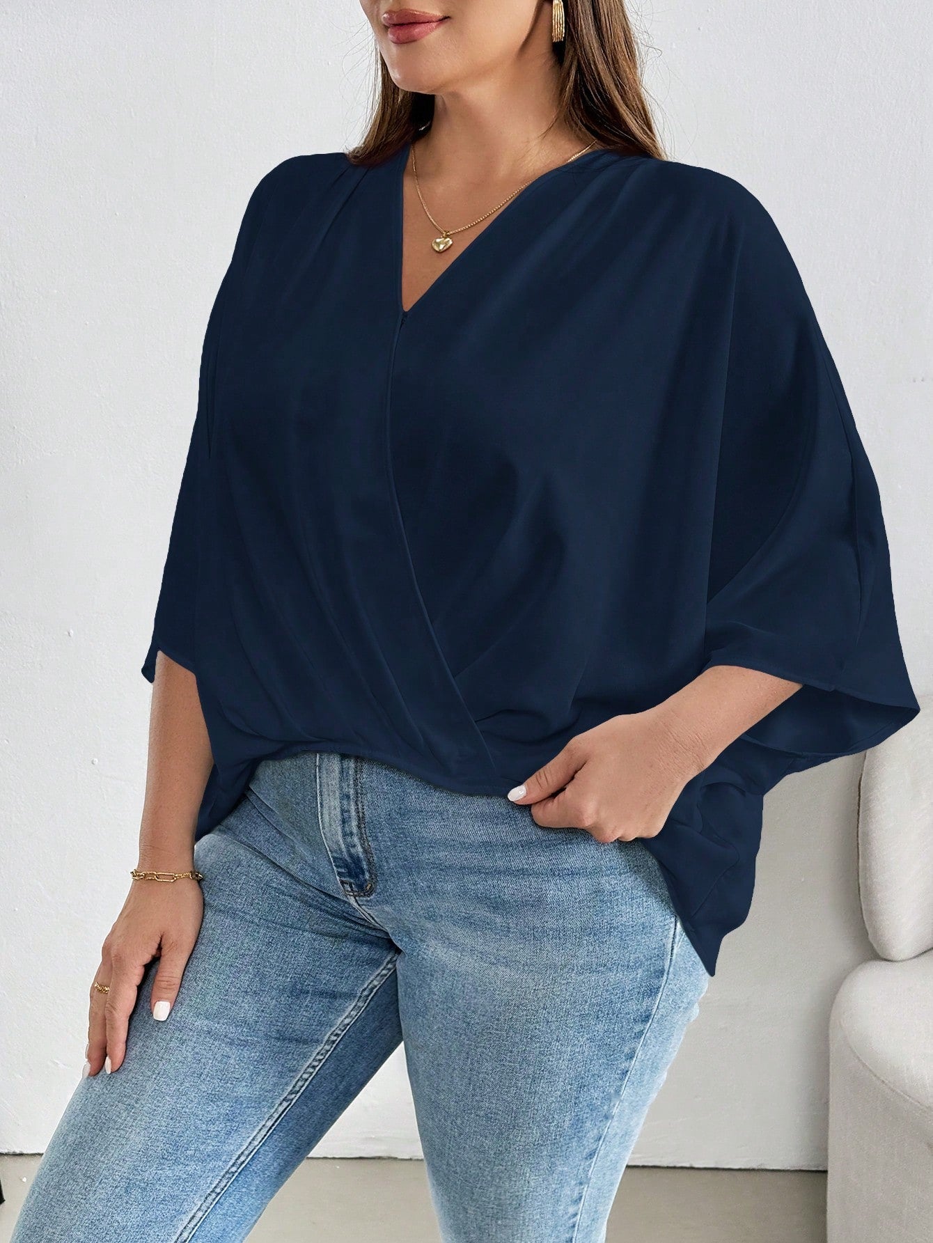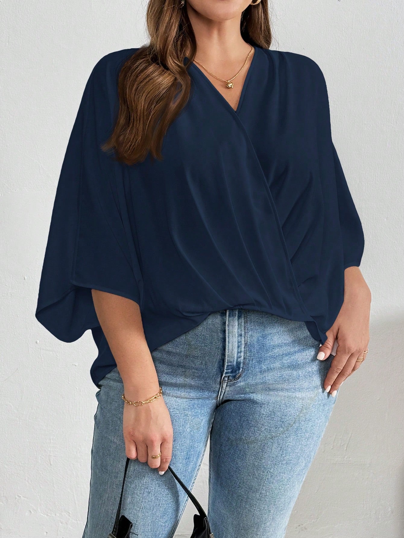 Camicia con scollo a V e maniche a 3/4 stile poncho