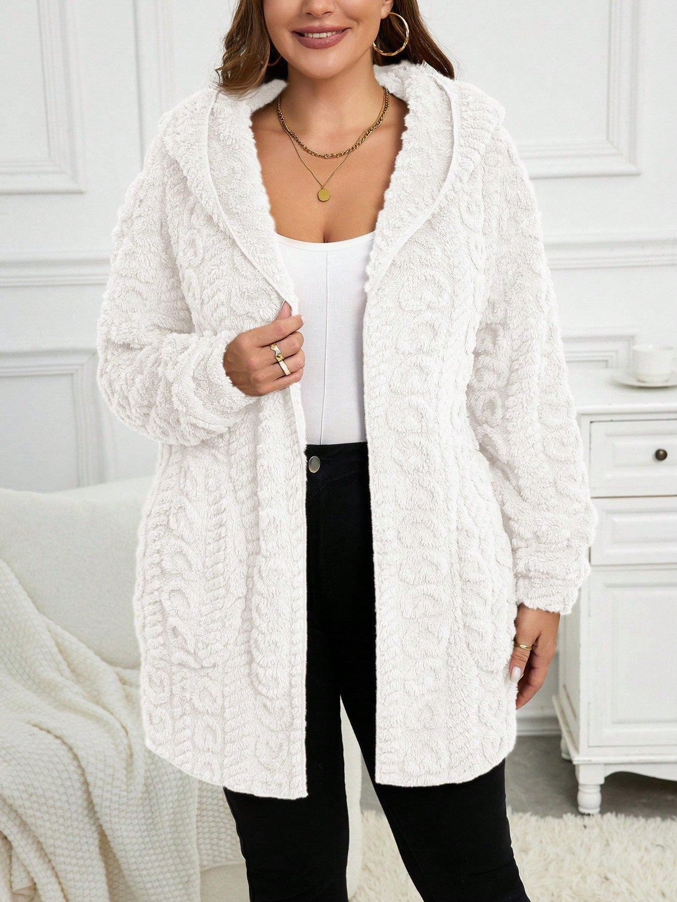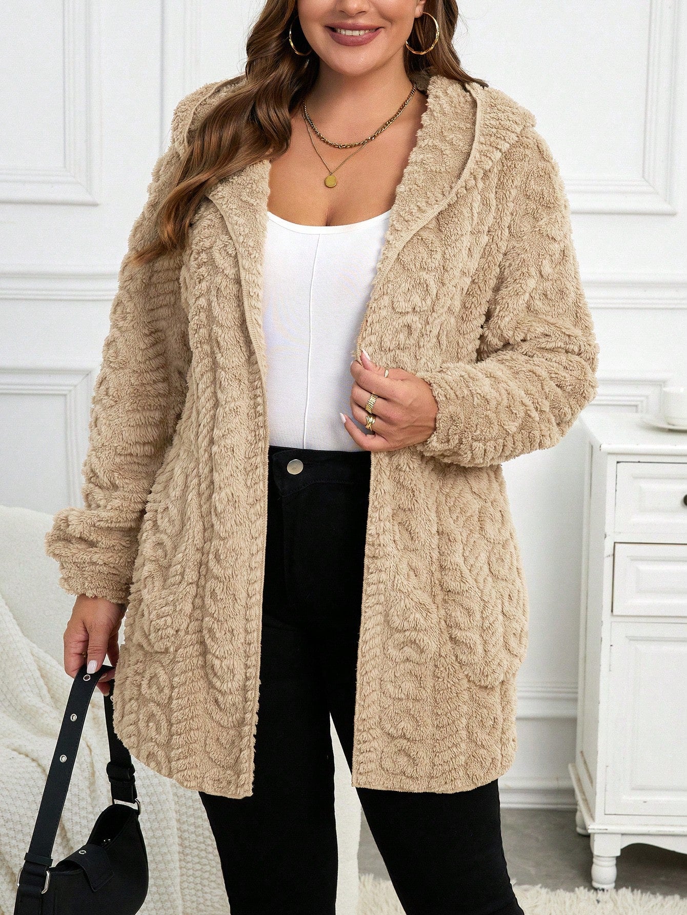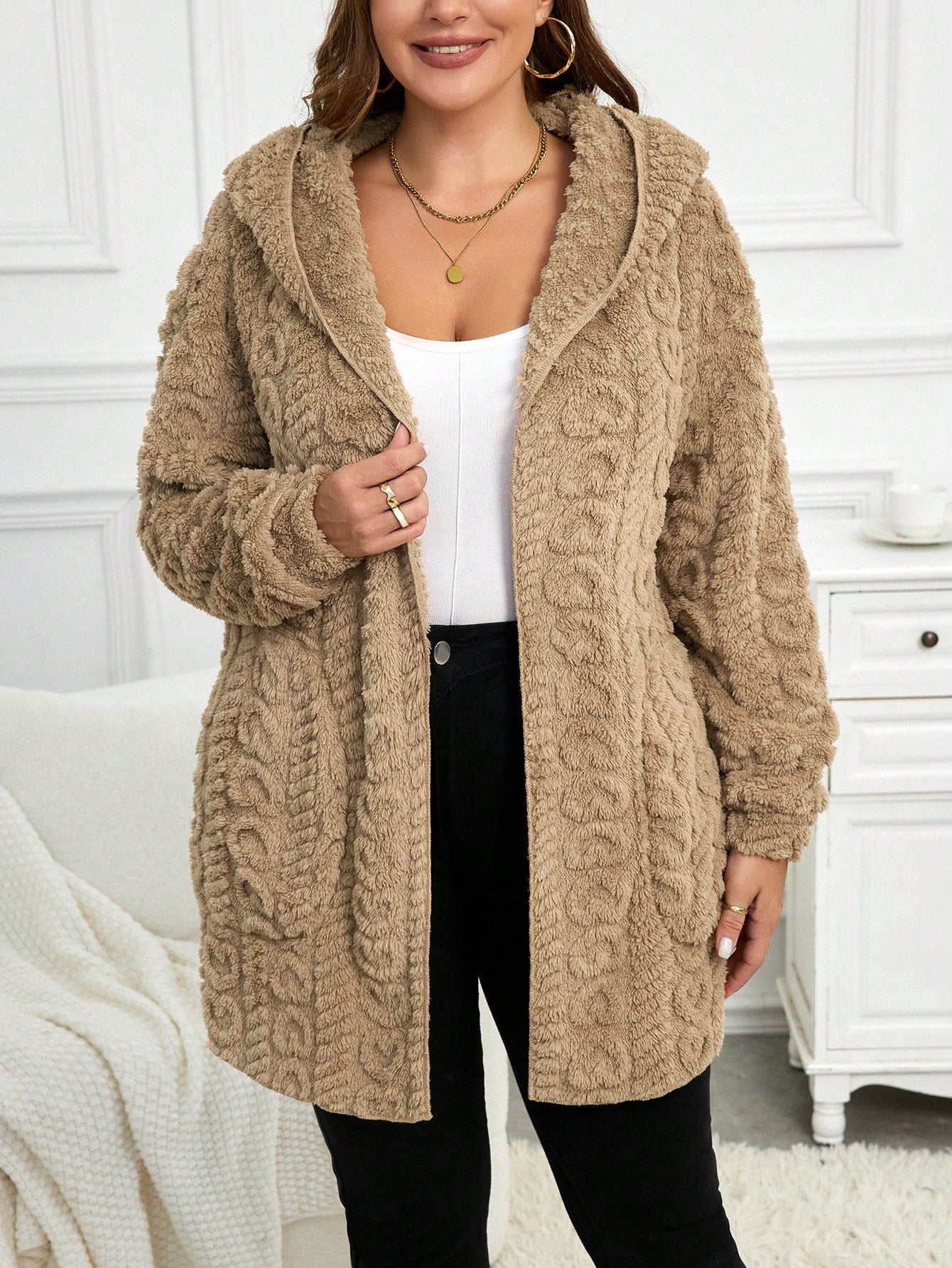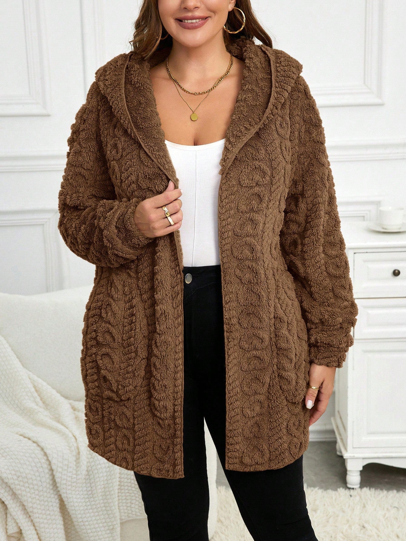Cardigan casual con cappuccio a maniche lunghe e vestibilità ampia, taglie comode