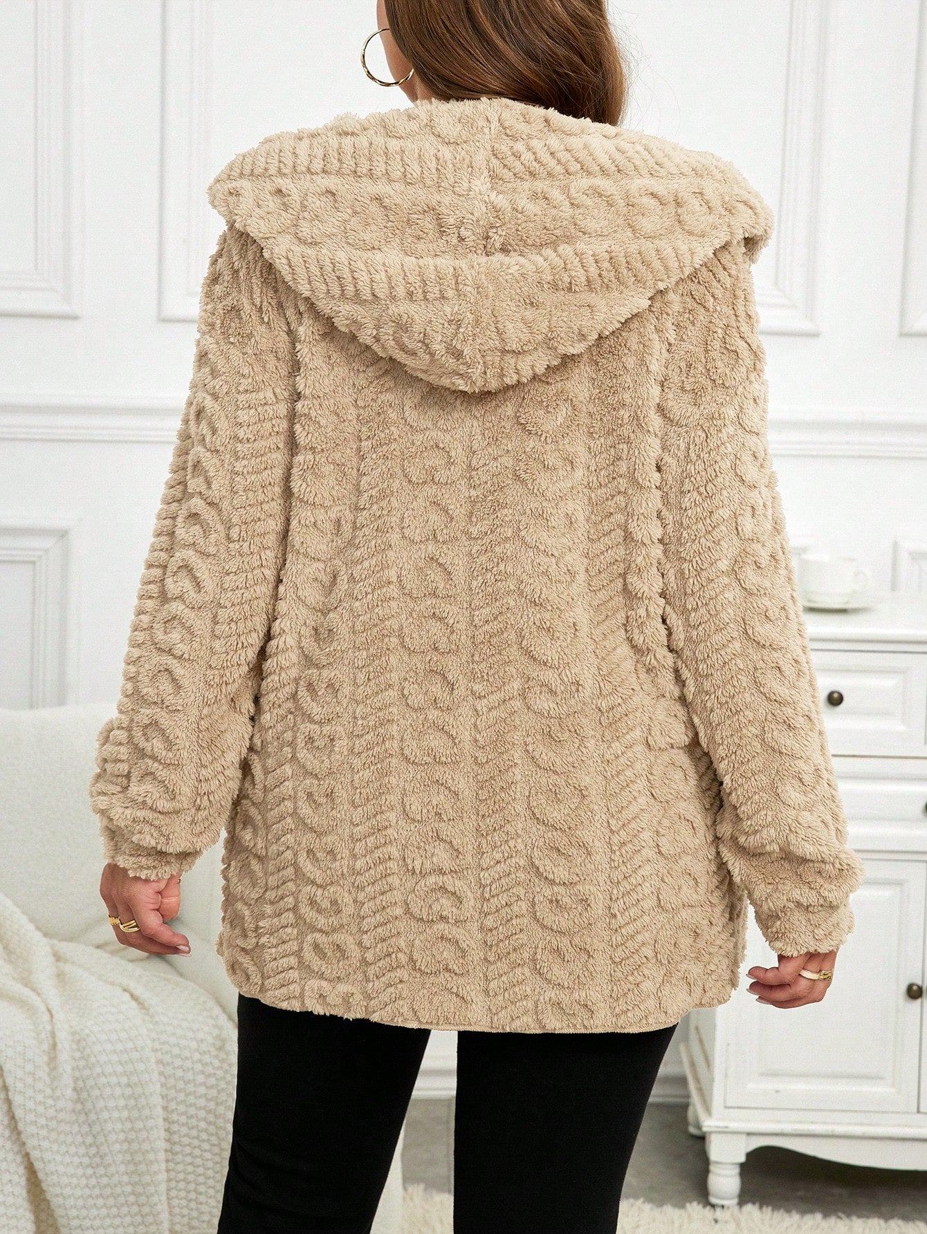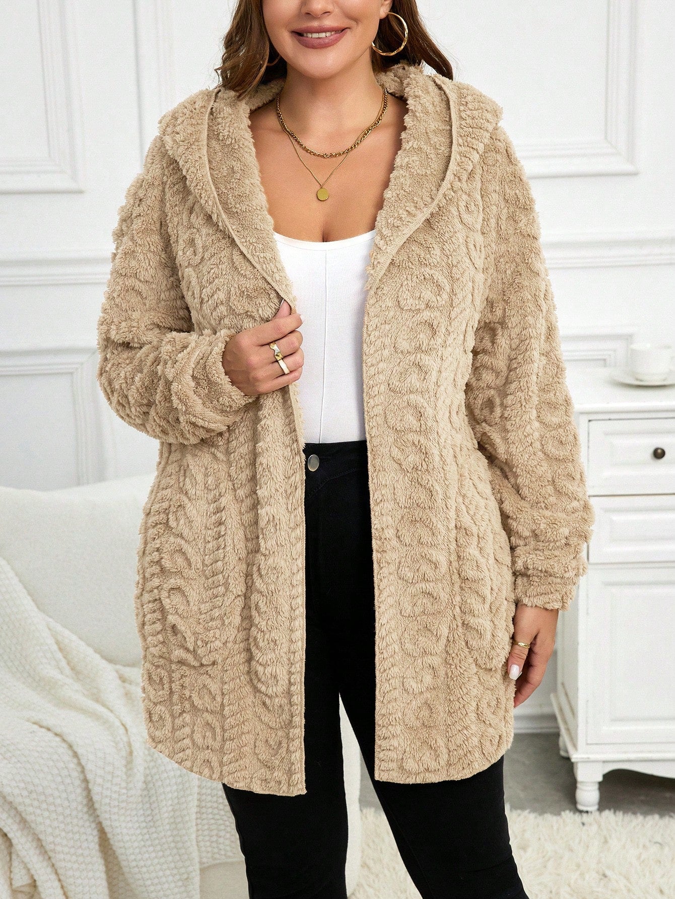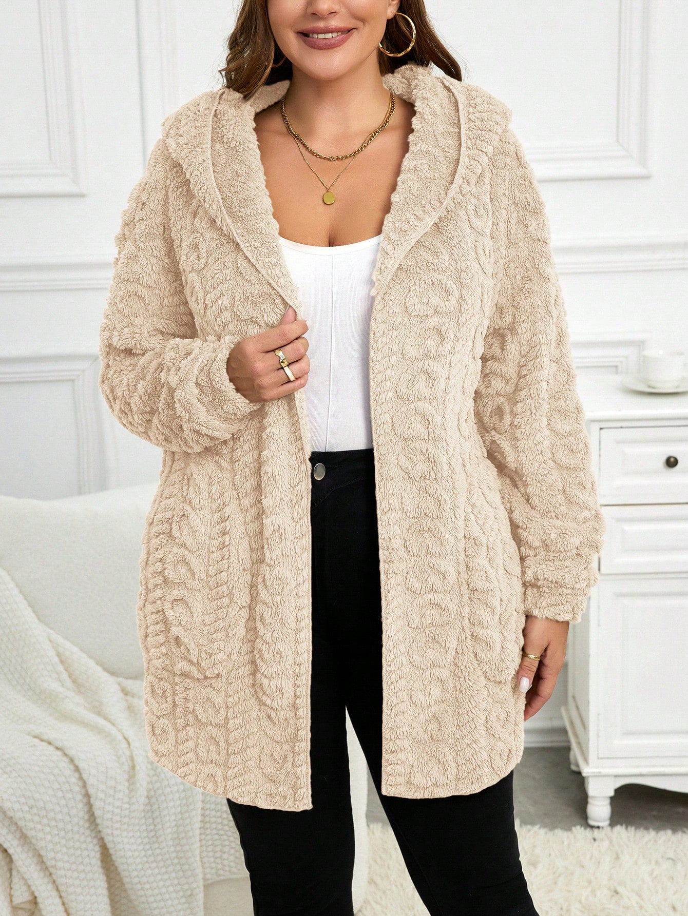 Cardigan casual con cappuccio a maniche lunghe e vestibilità ampia, taglie comode