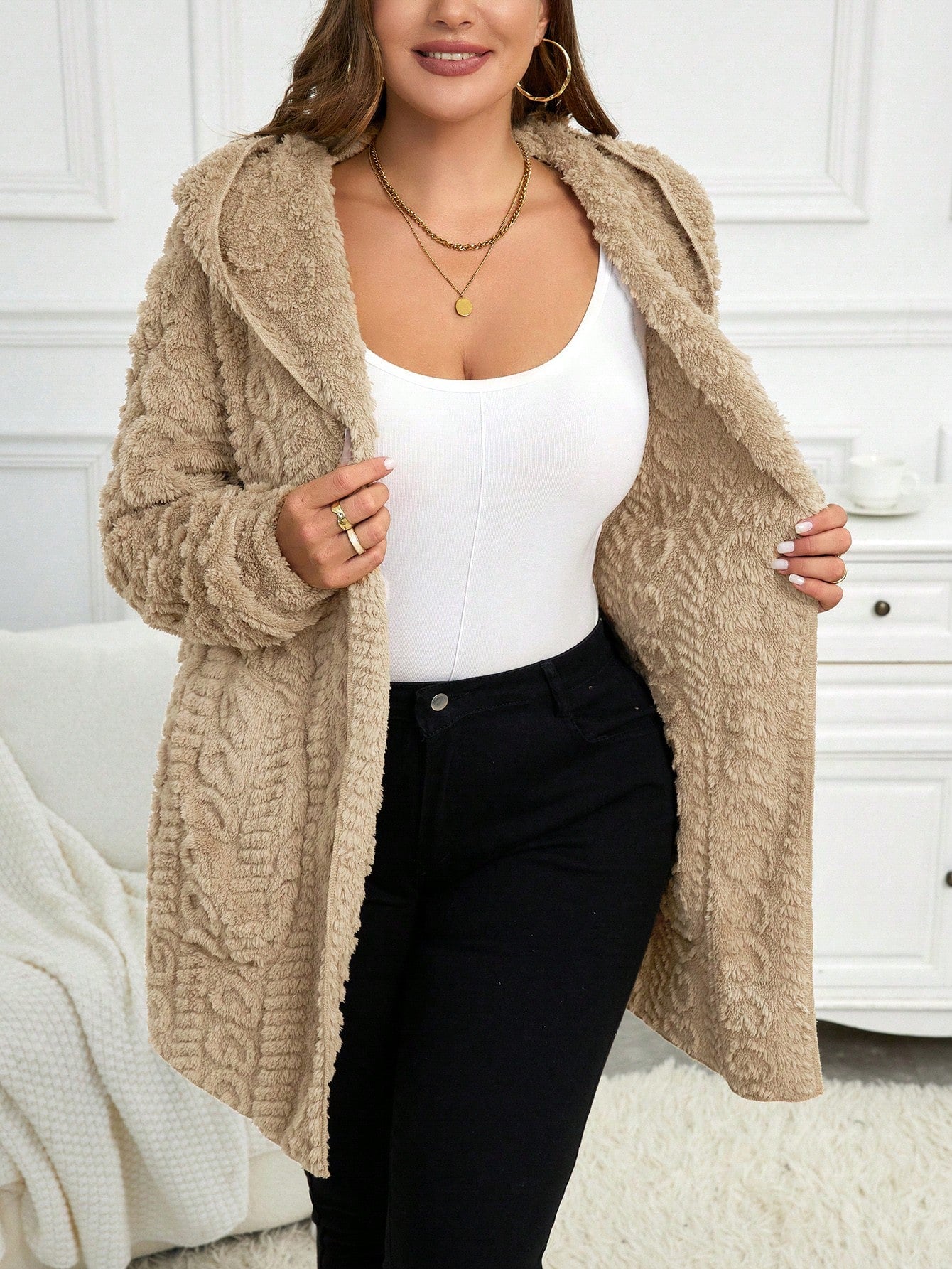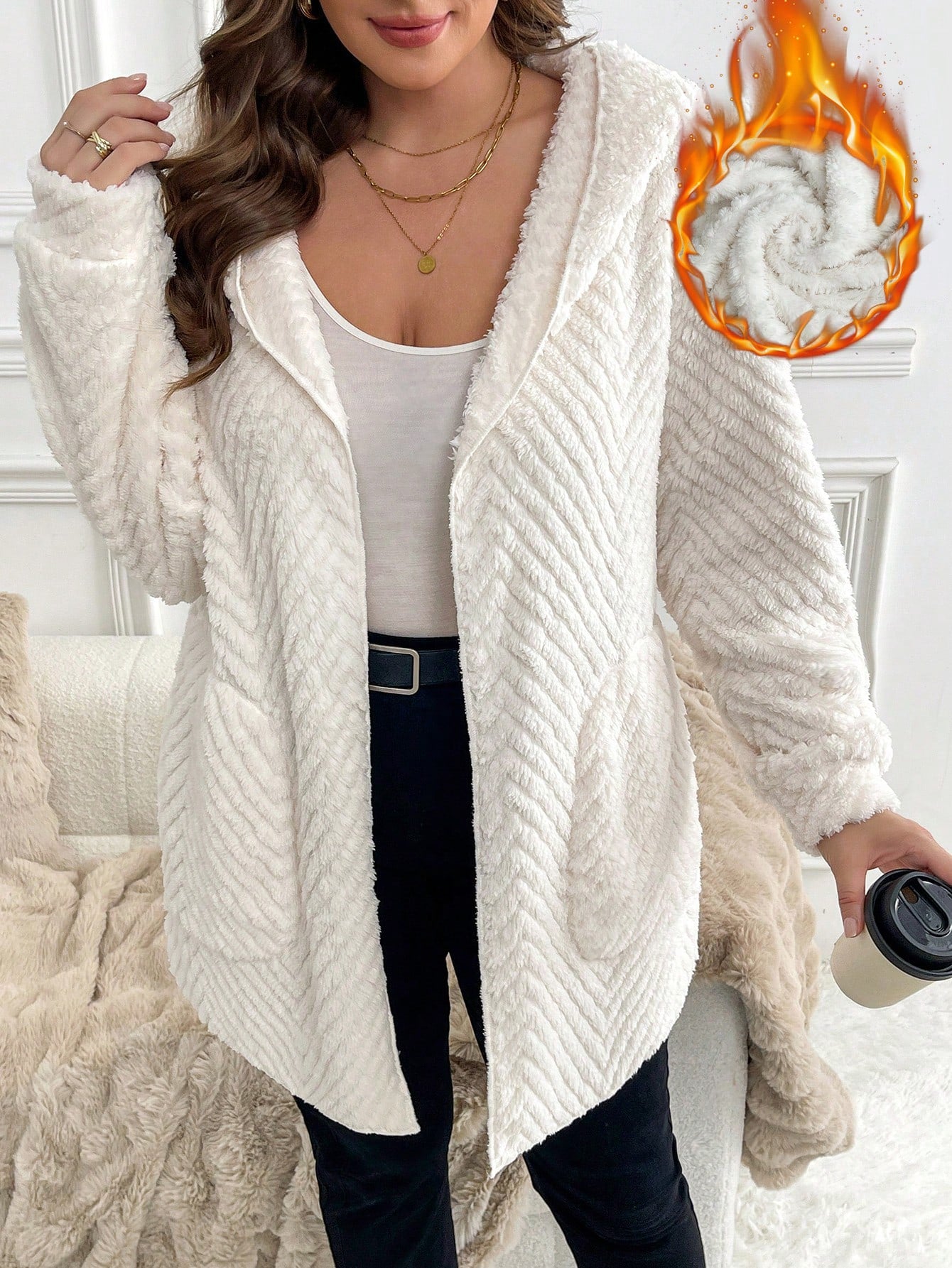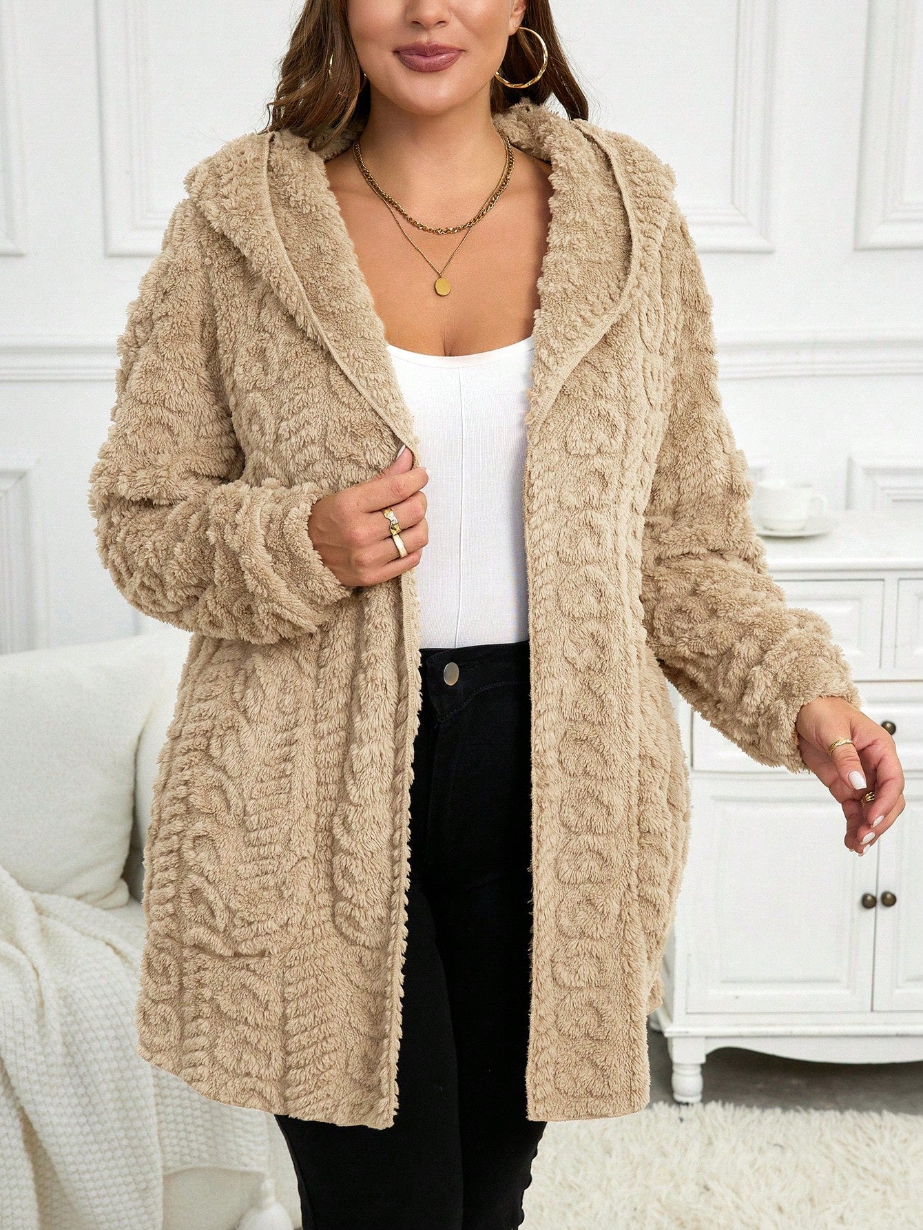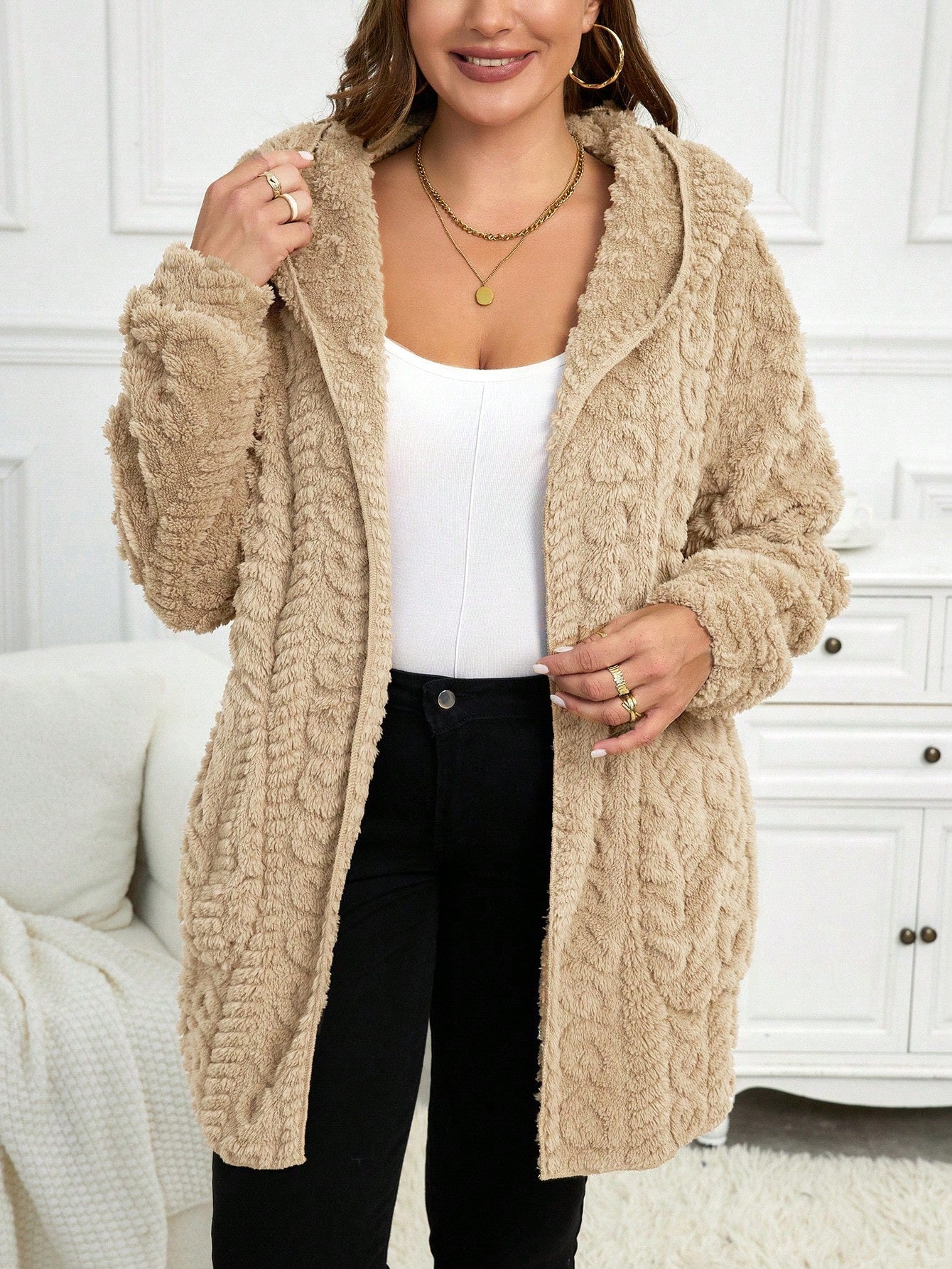 Cardigan casual con cappuccio a maniche lunghe e vestibilità ampia, taglie comode