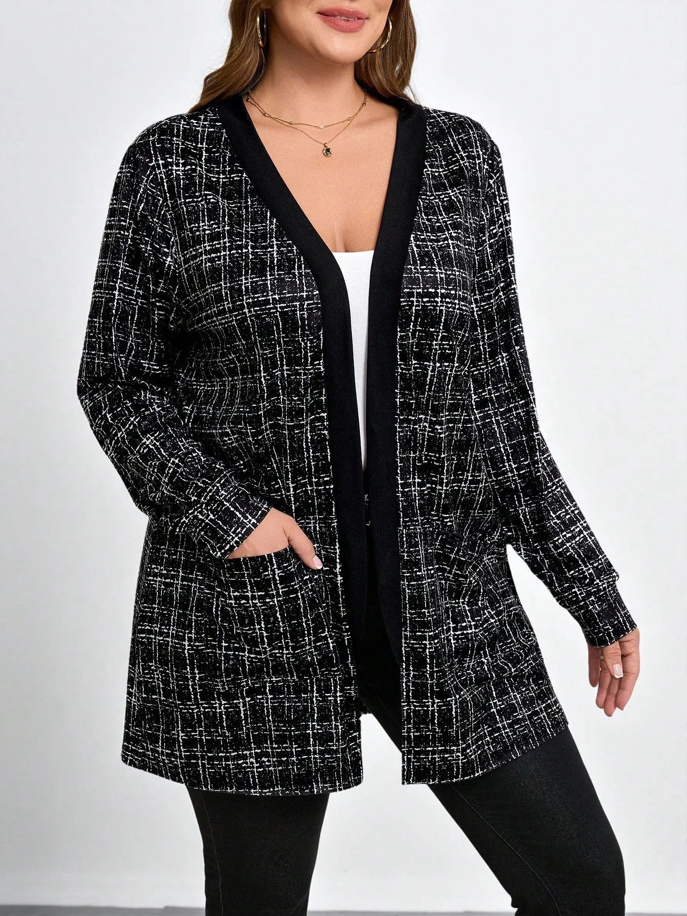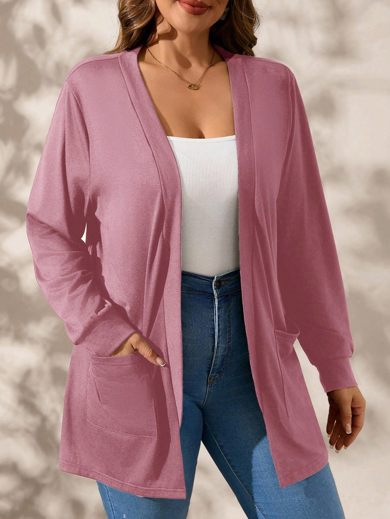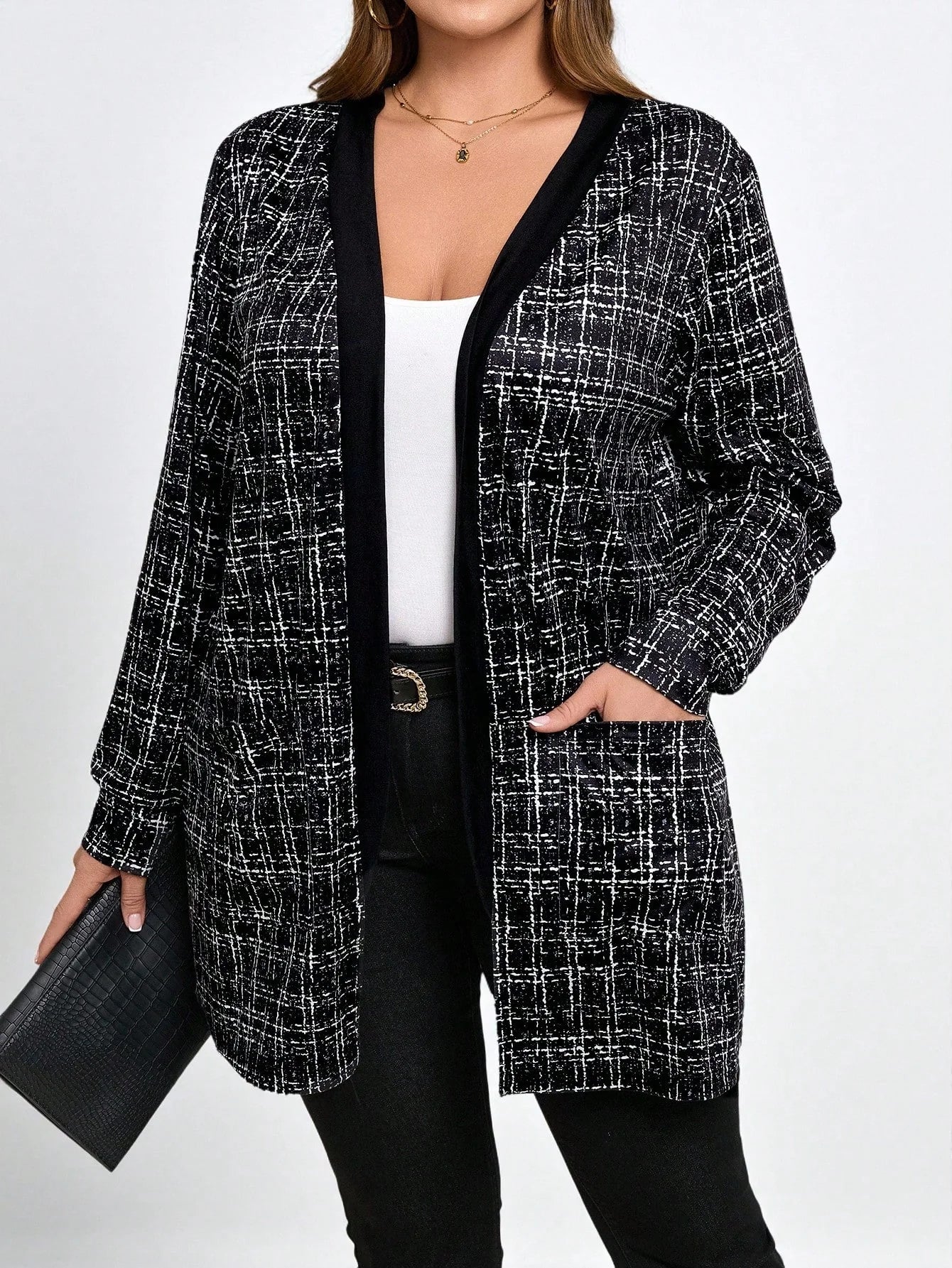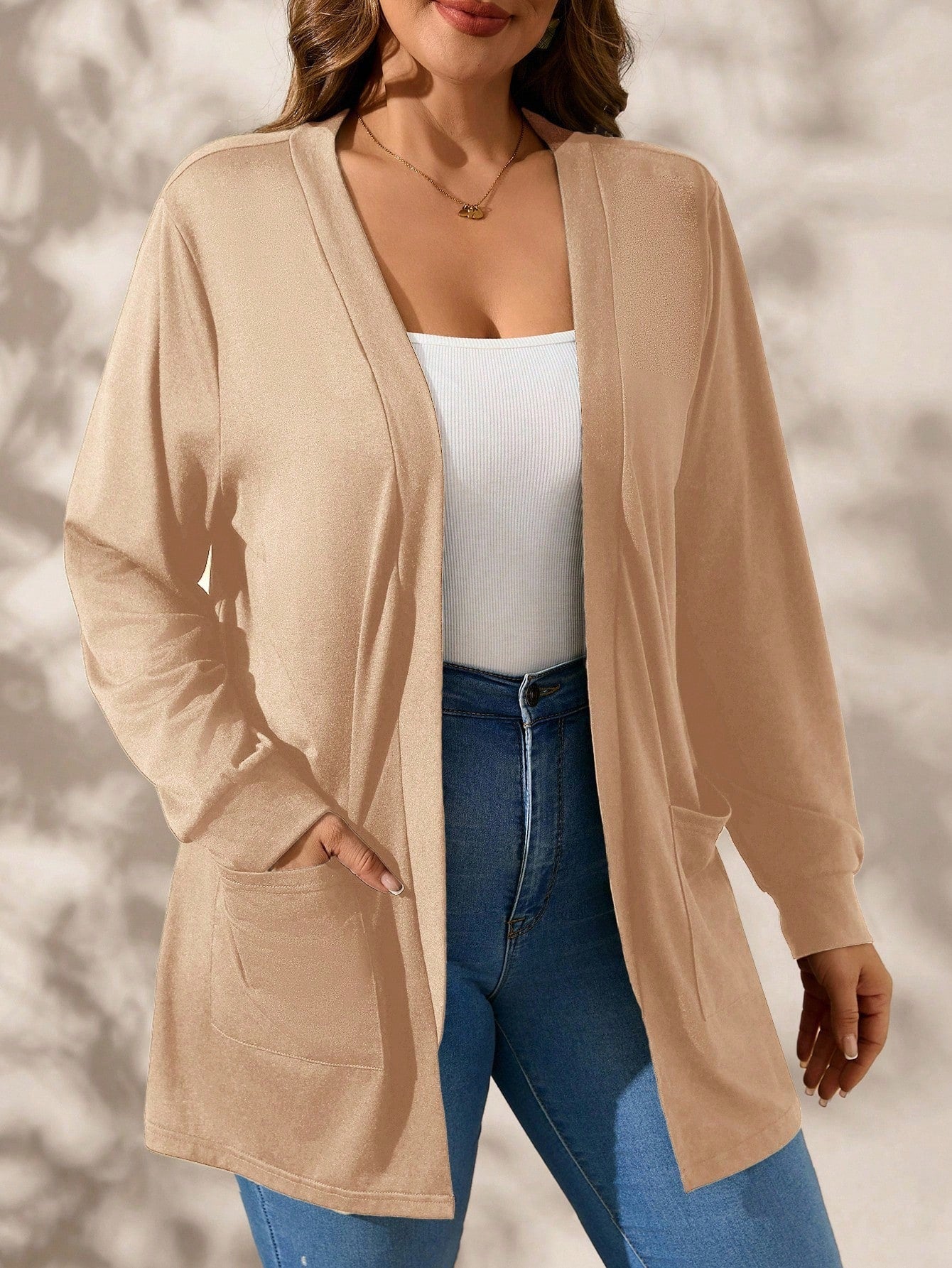 Cardigan con tasche in finta lana bouclé in taglie comode