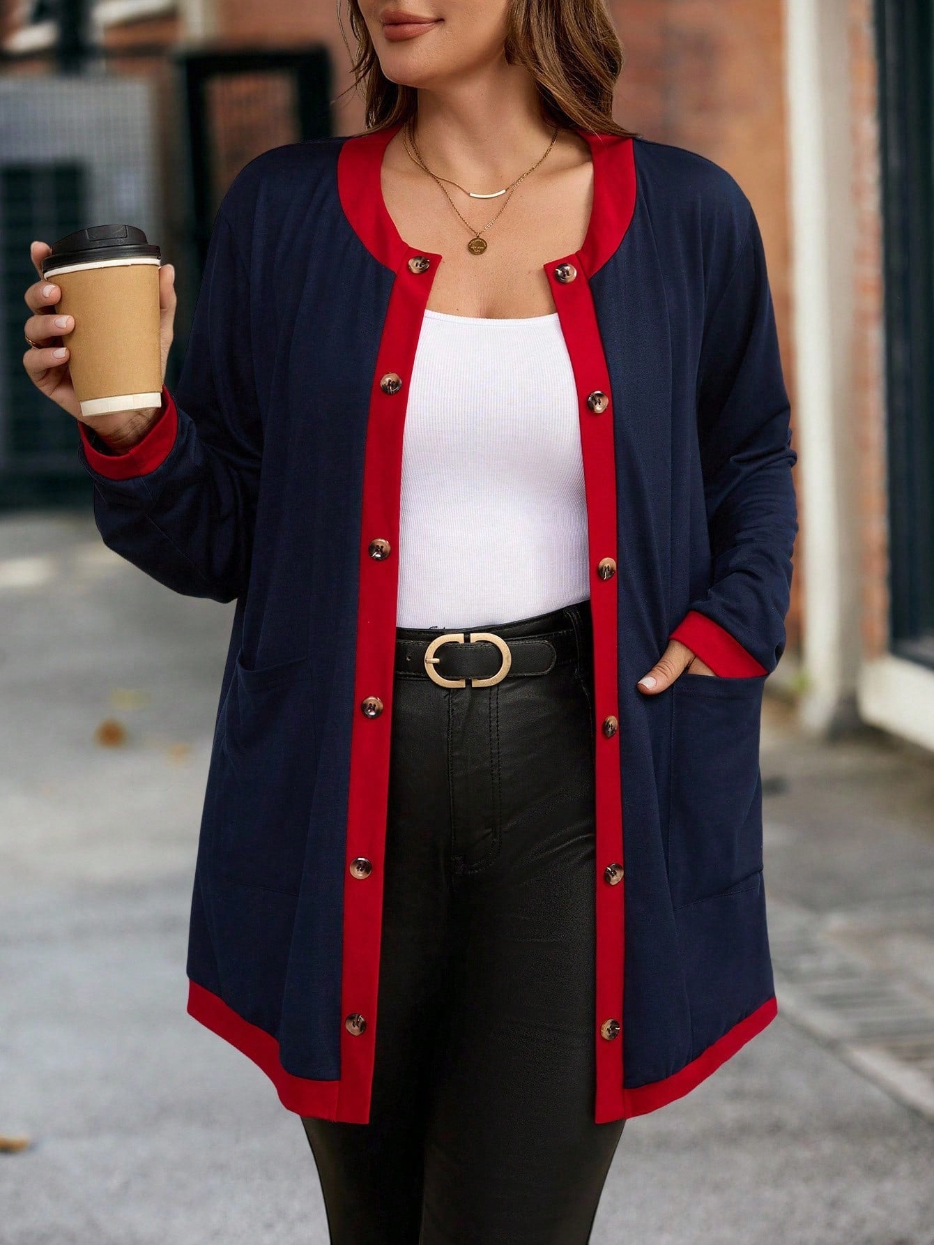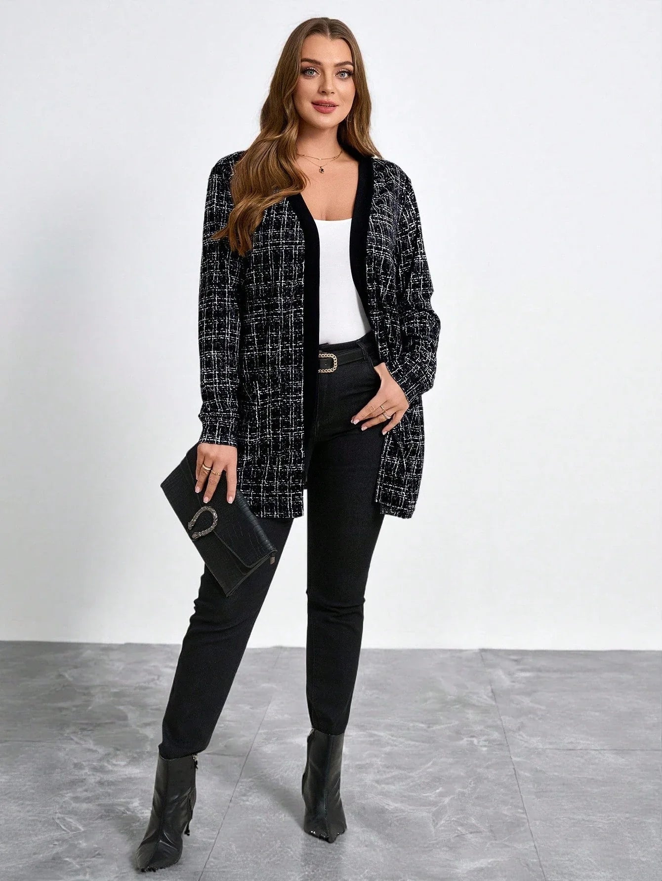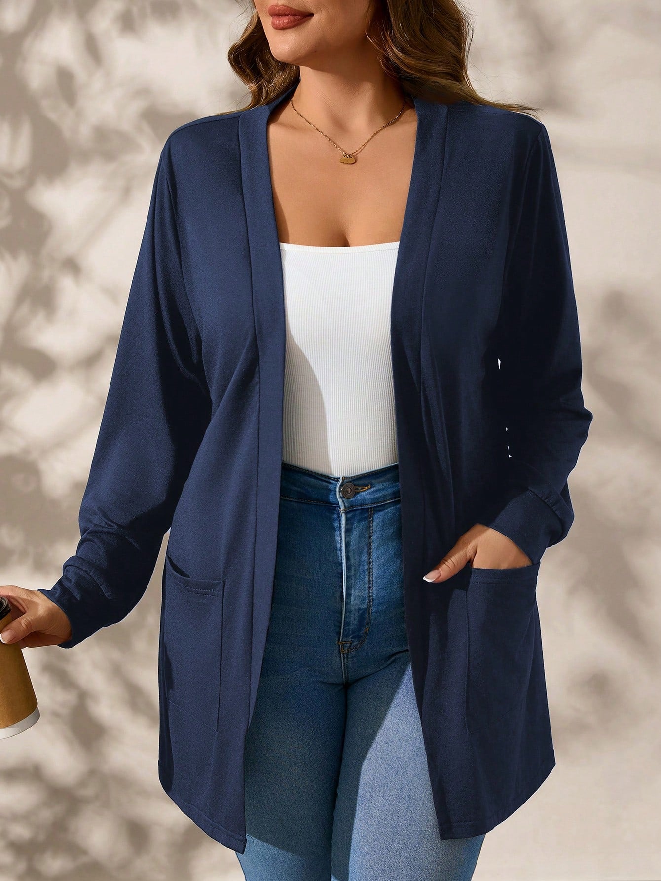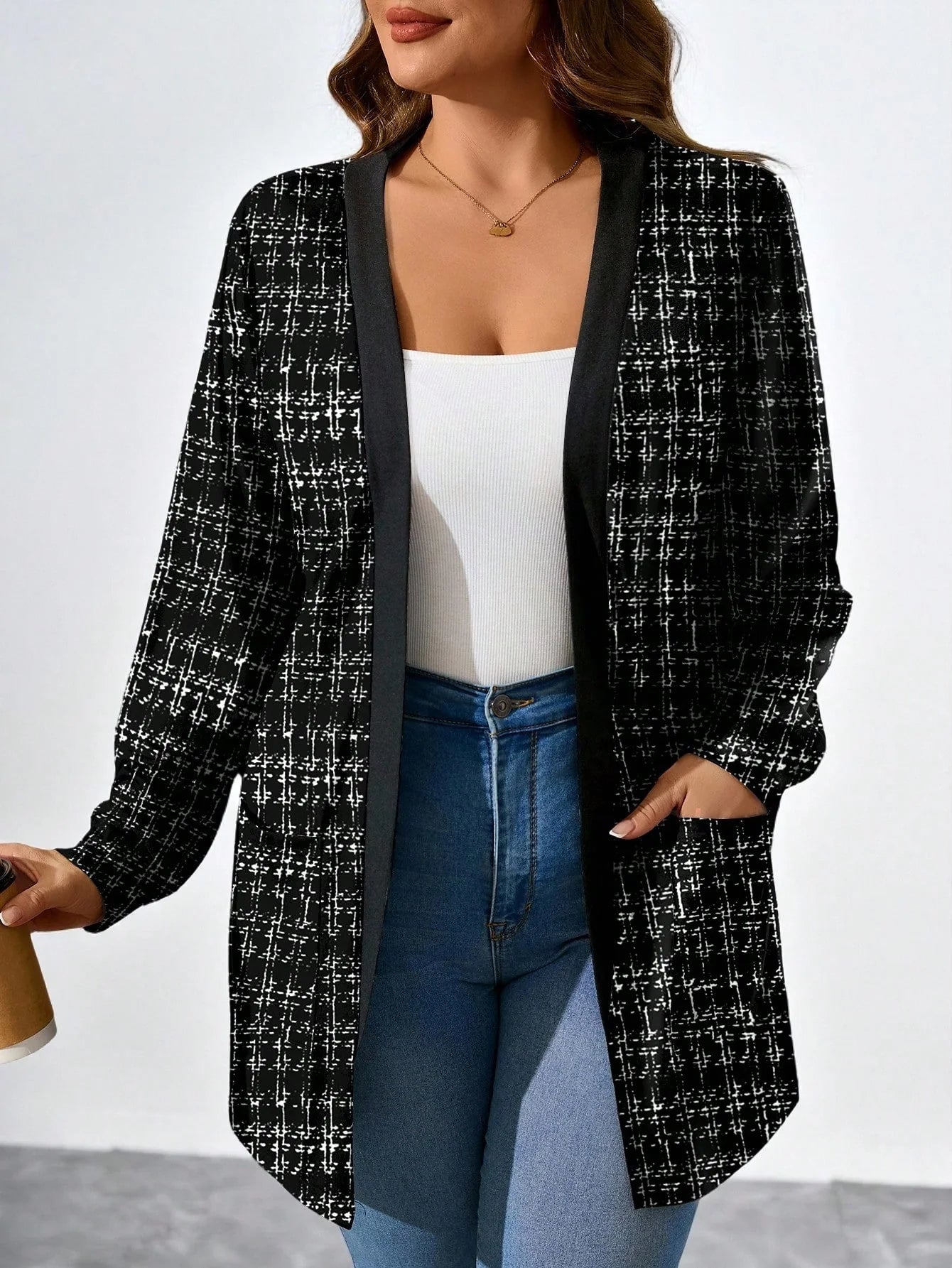Cardigan con tasche in finta lana bouclé in taglie comode