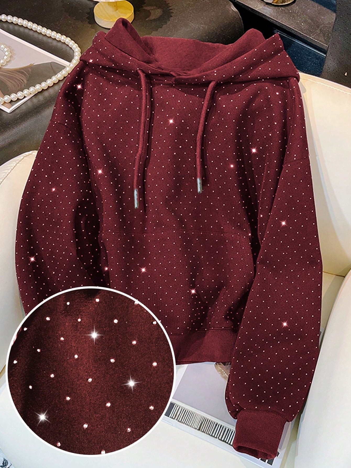 Felpa con cappuccio con decorazioni in strass, vestibilità regular, maniche lunghe