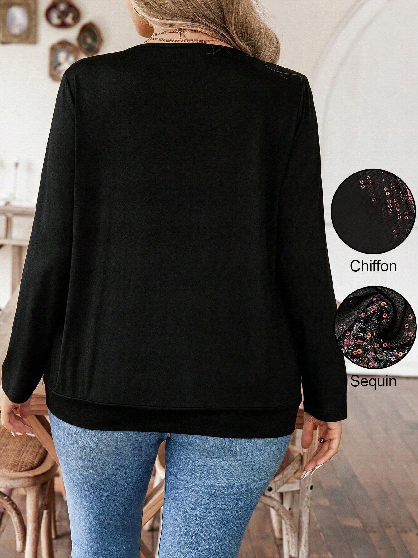 Magliaoversize con patchwork di paillettes, magliette grafiche da donna