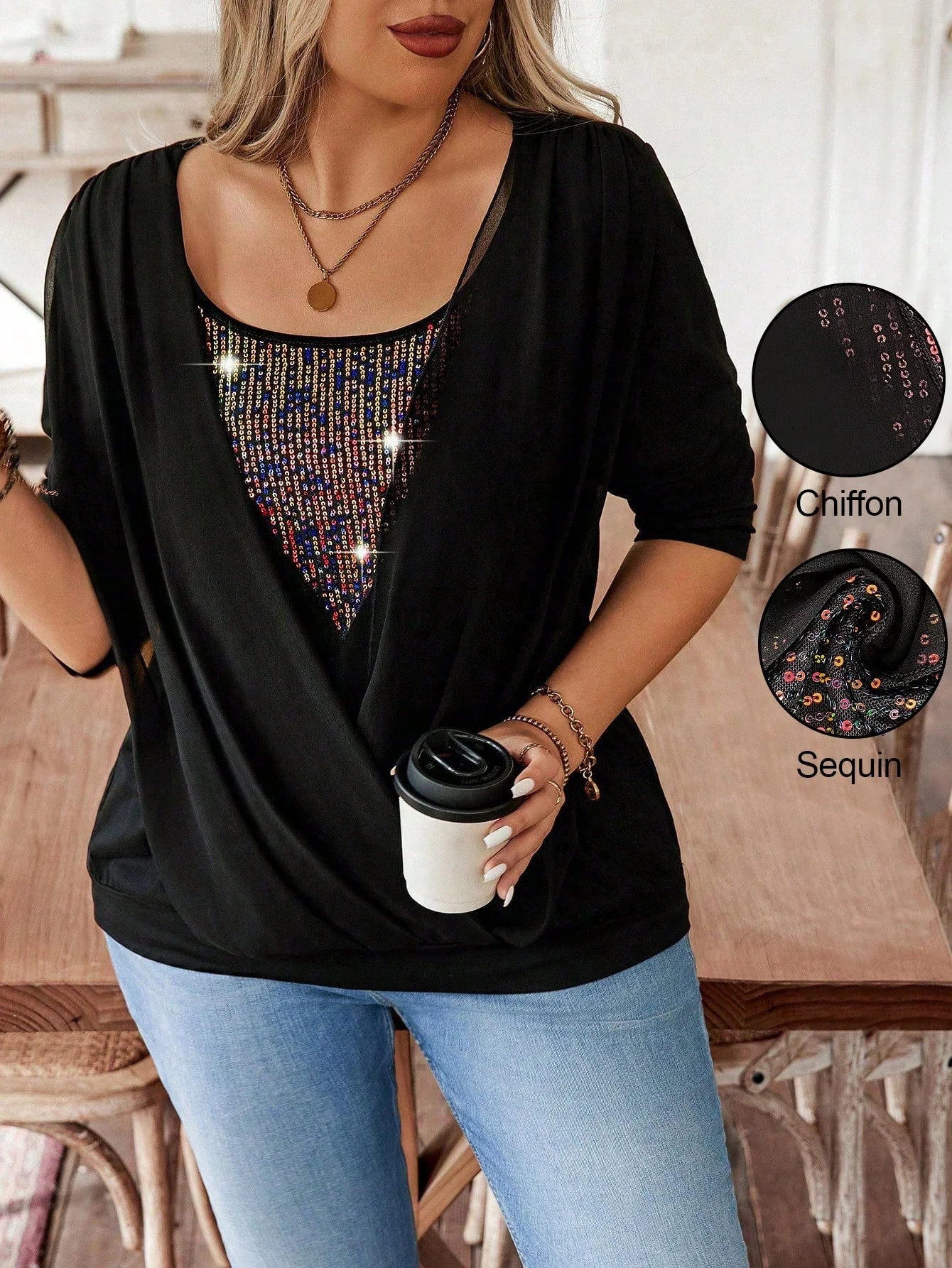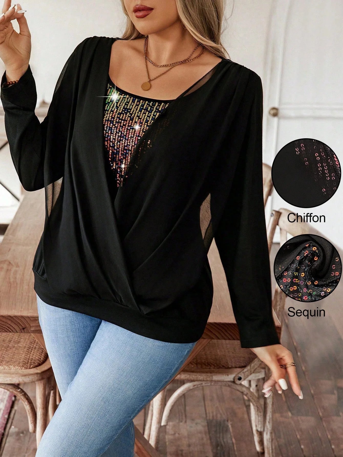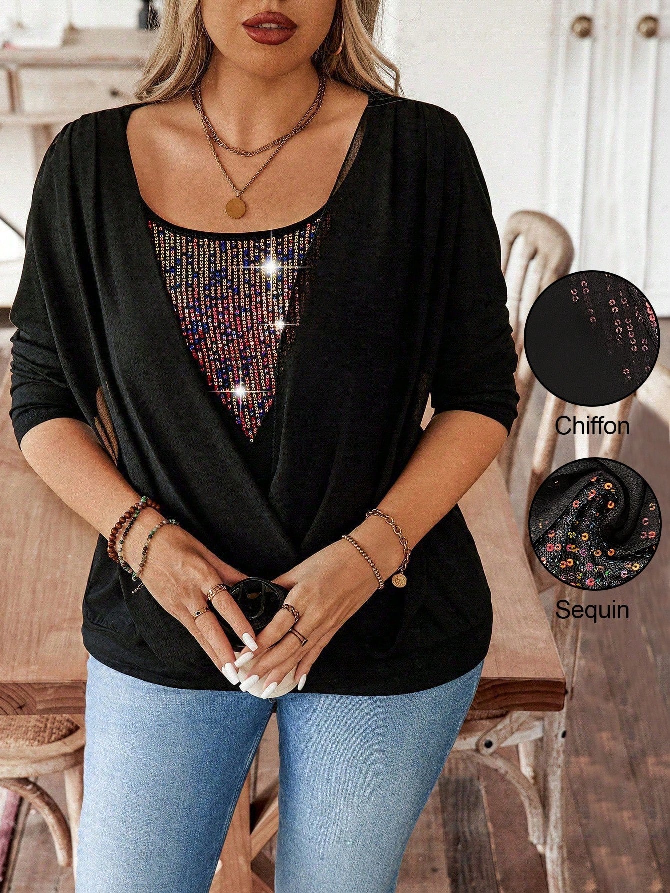 Dettaglio : Orlo di paillettes, avvolgente