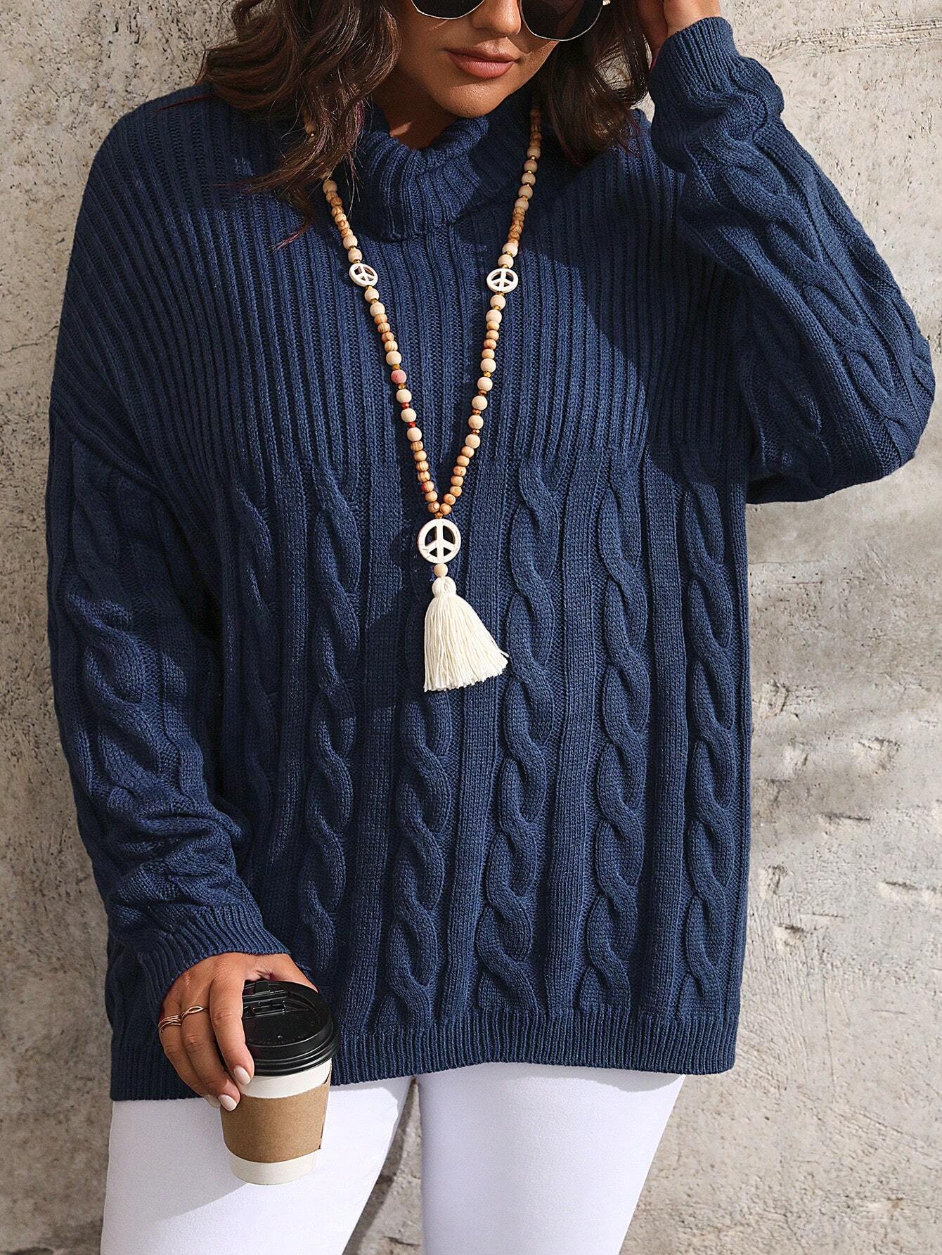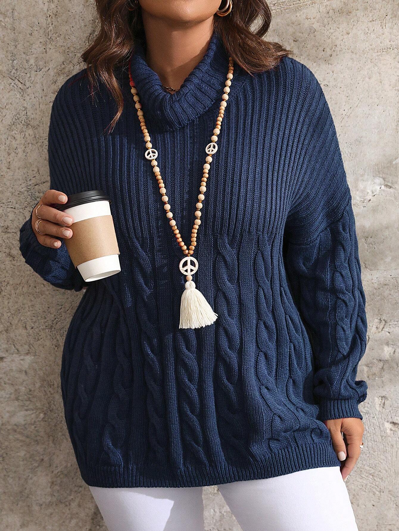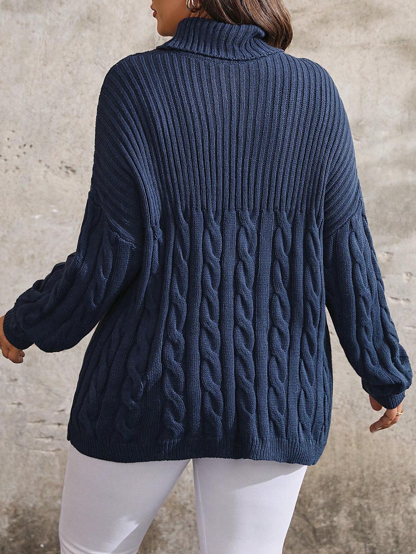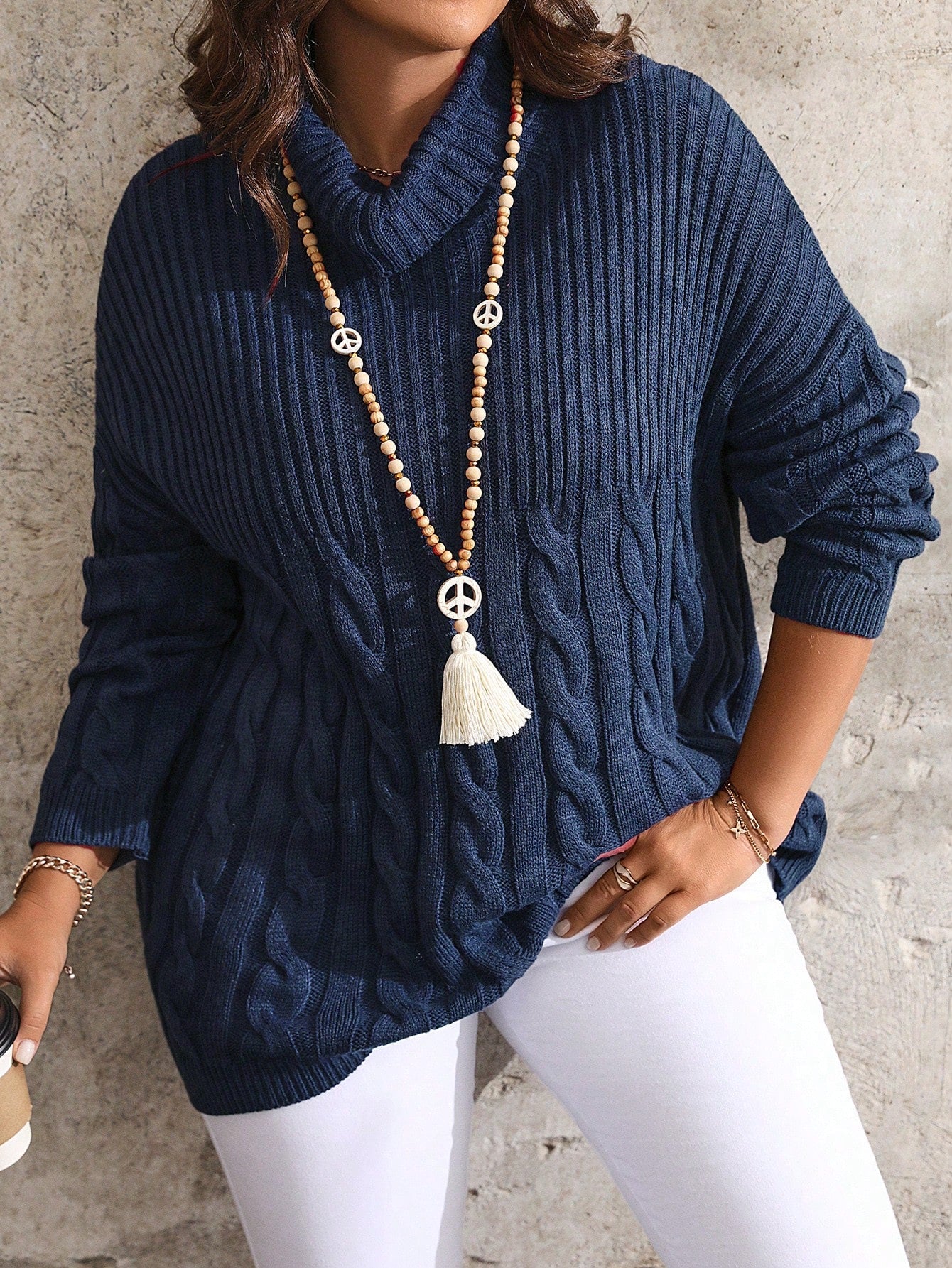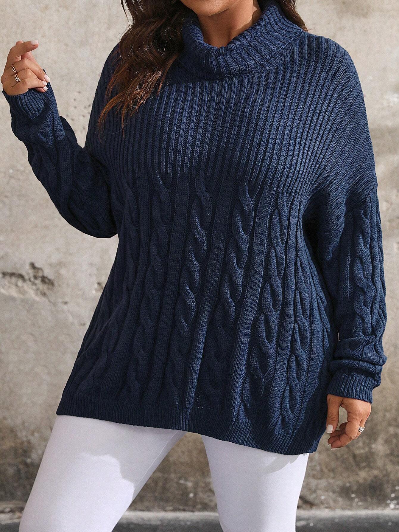 Maglione casual a maniche lunghe con collo alto monocromatico per donne taglie comode