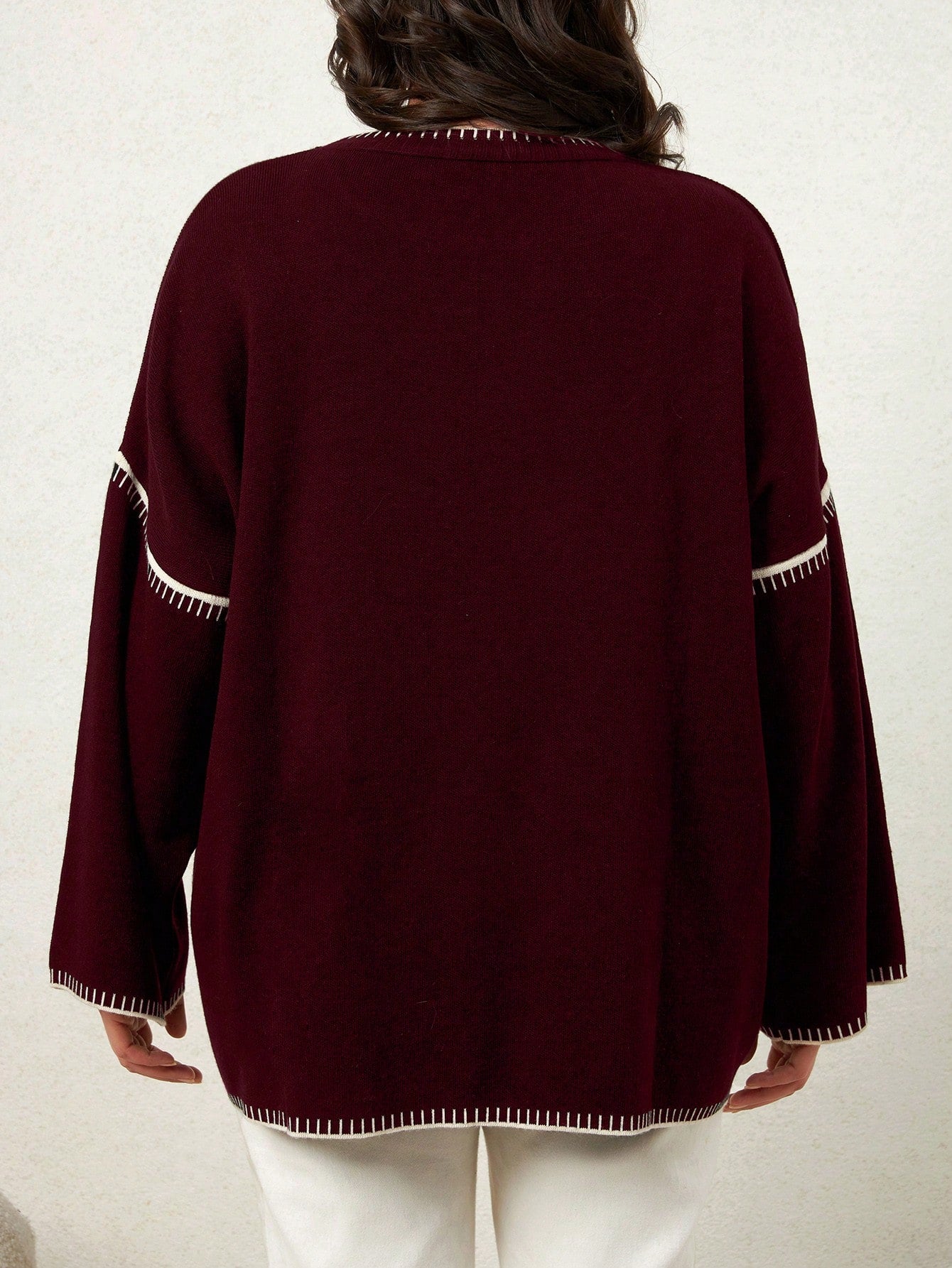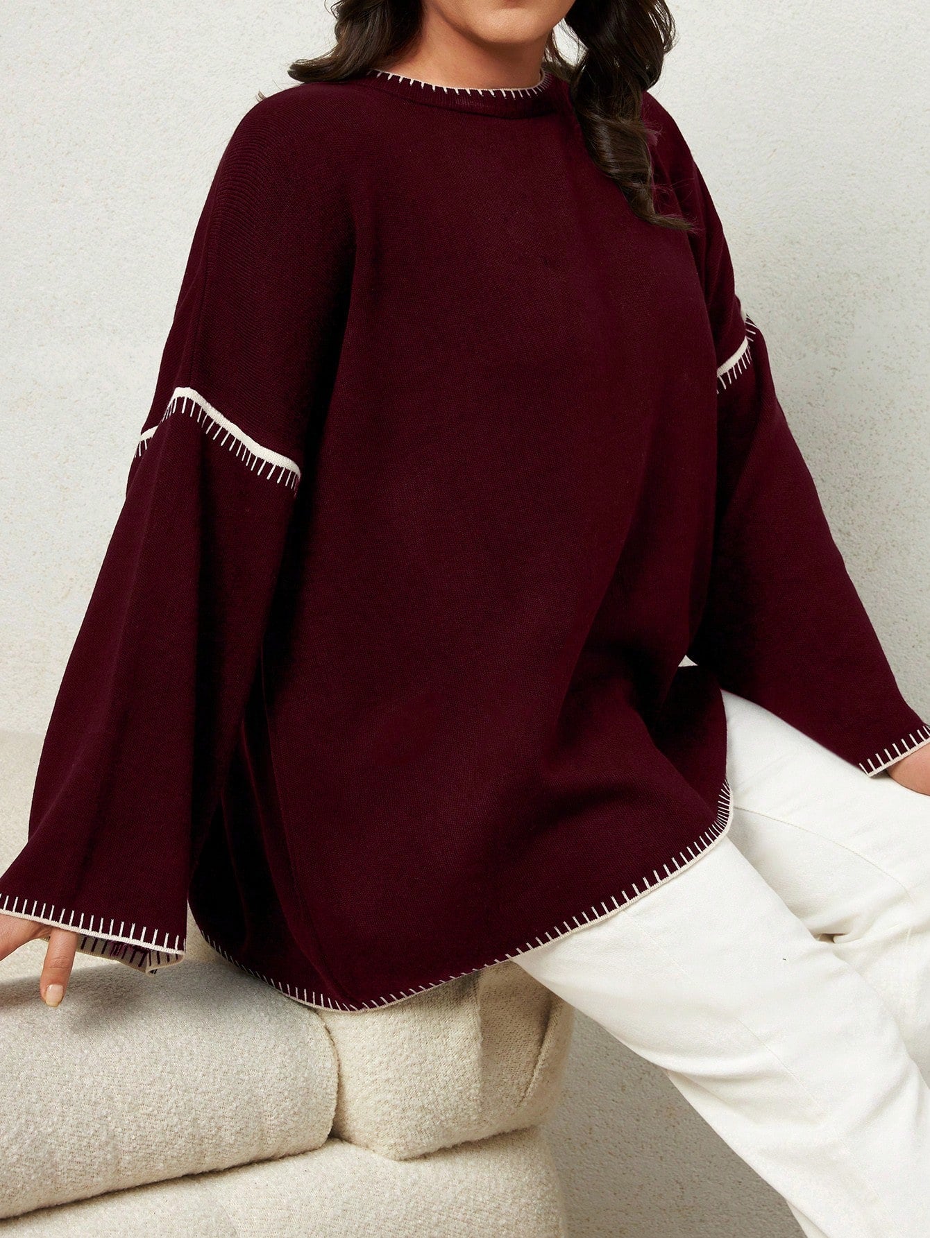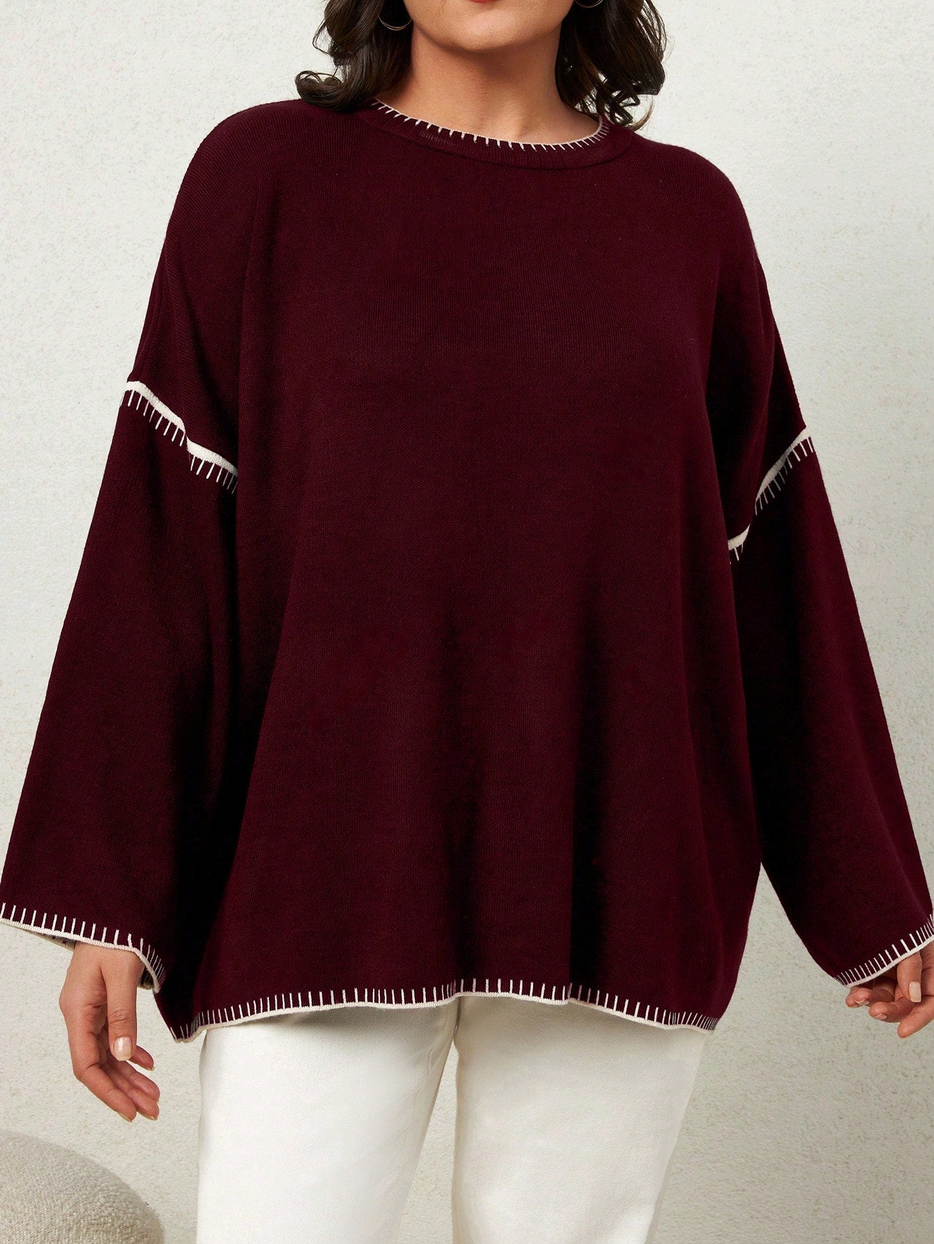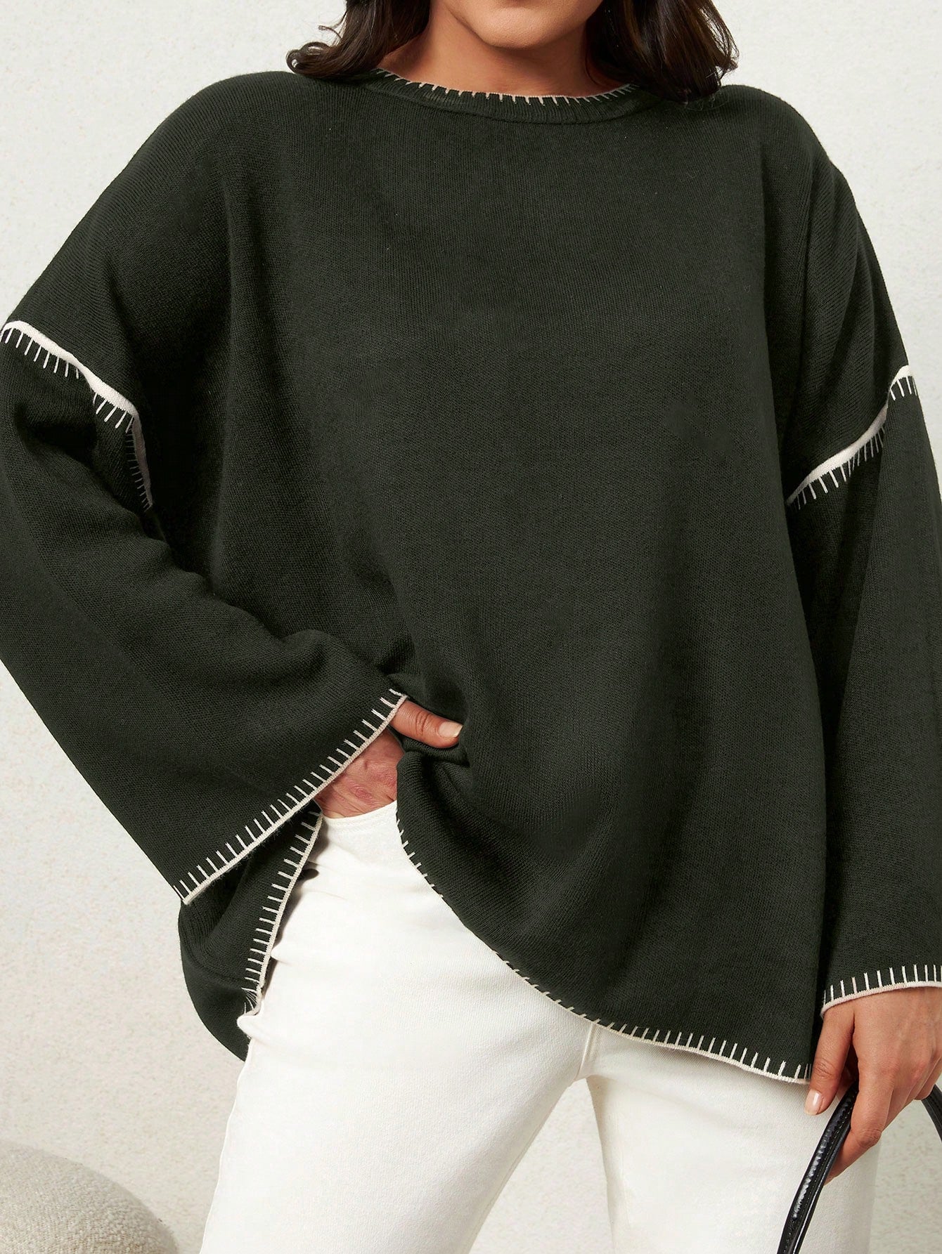 Maglione casual dettagli a contrasto, adatto per la stagione autunnale e invernale