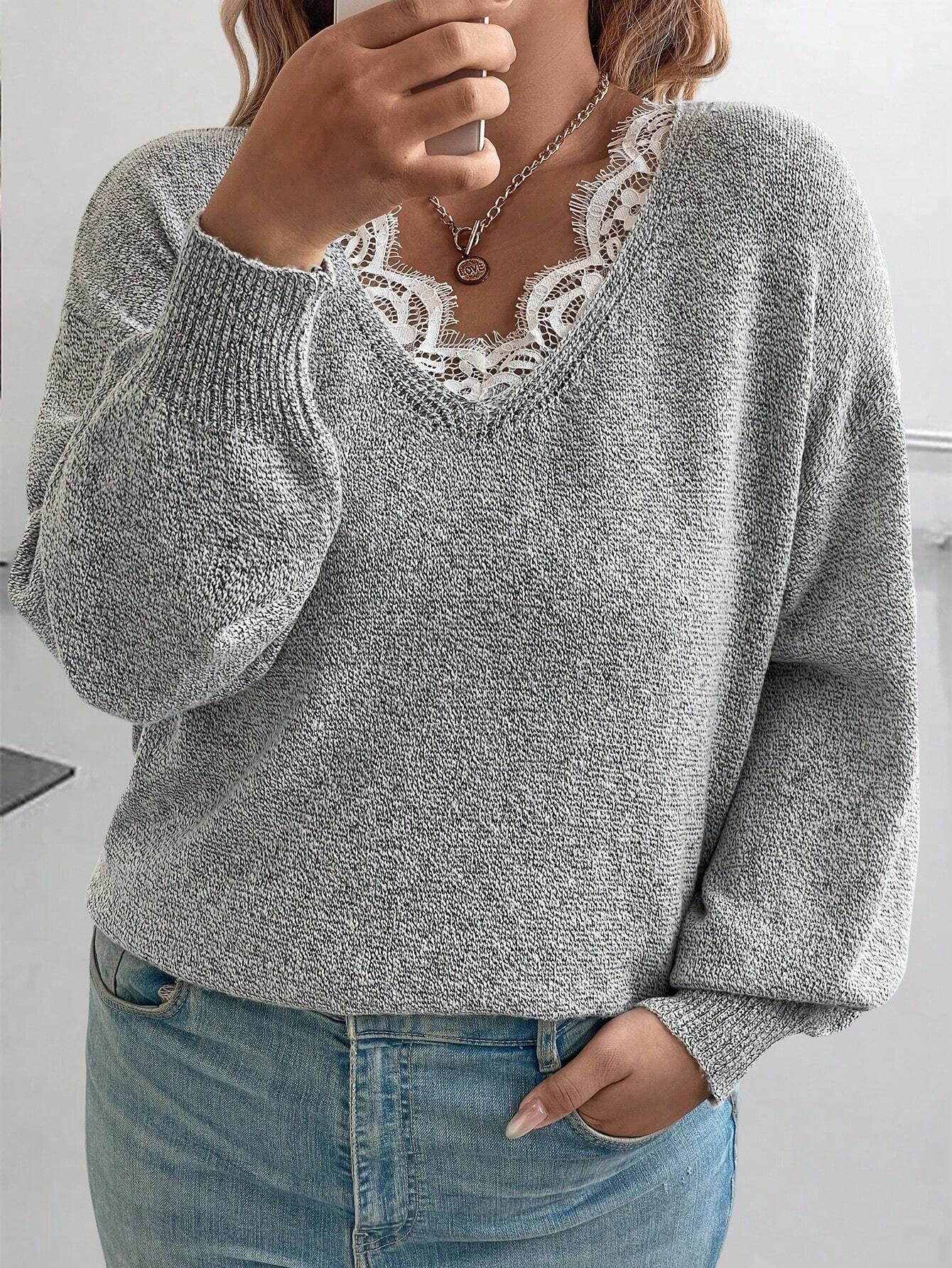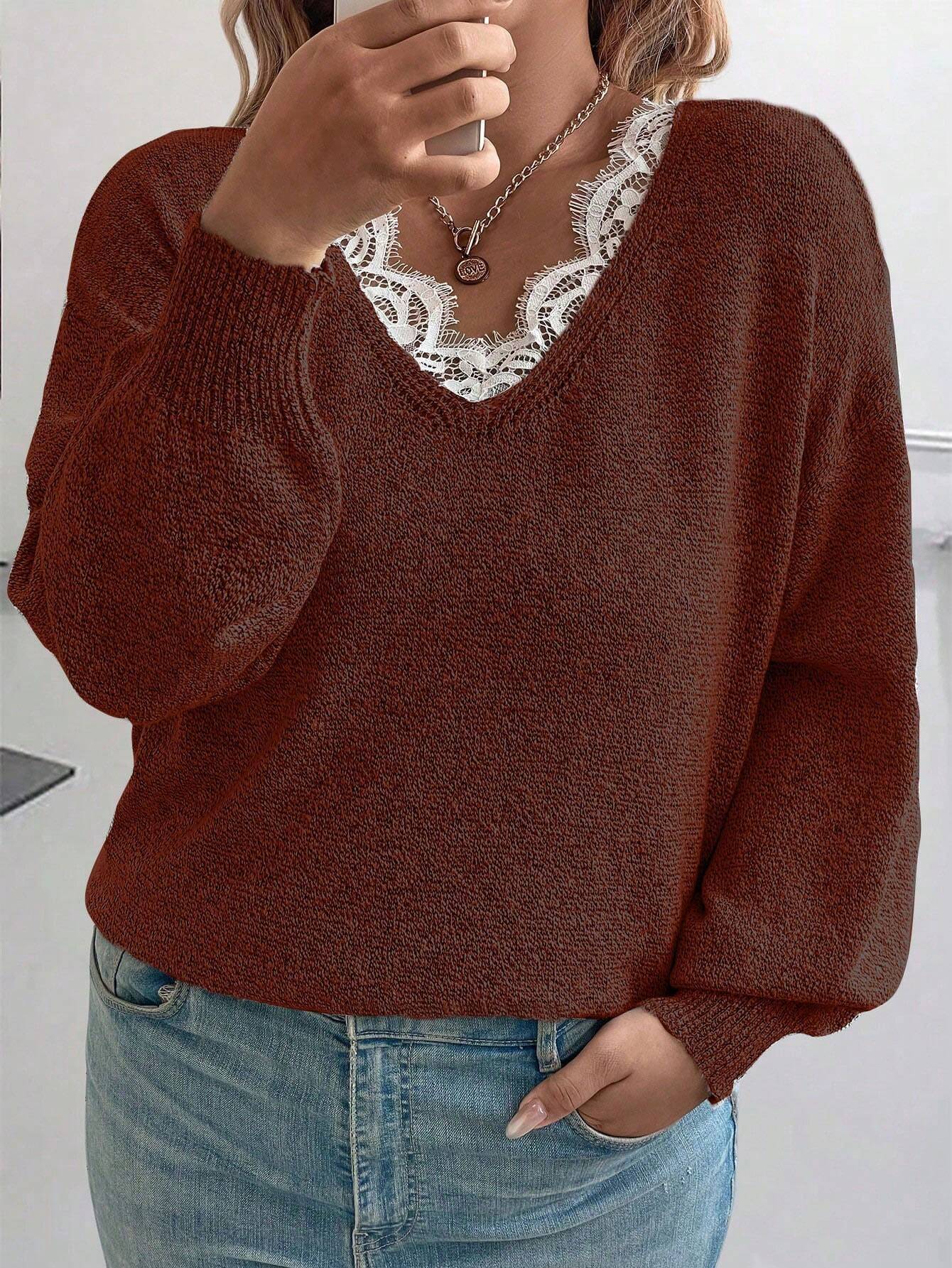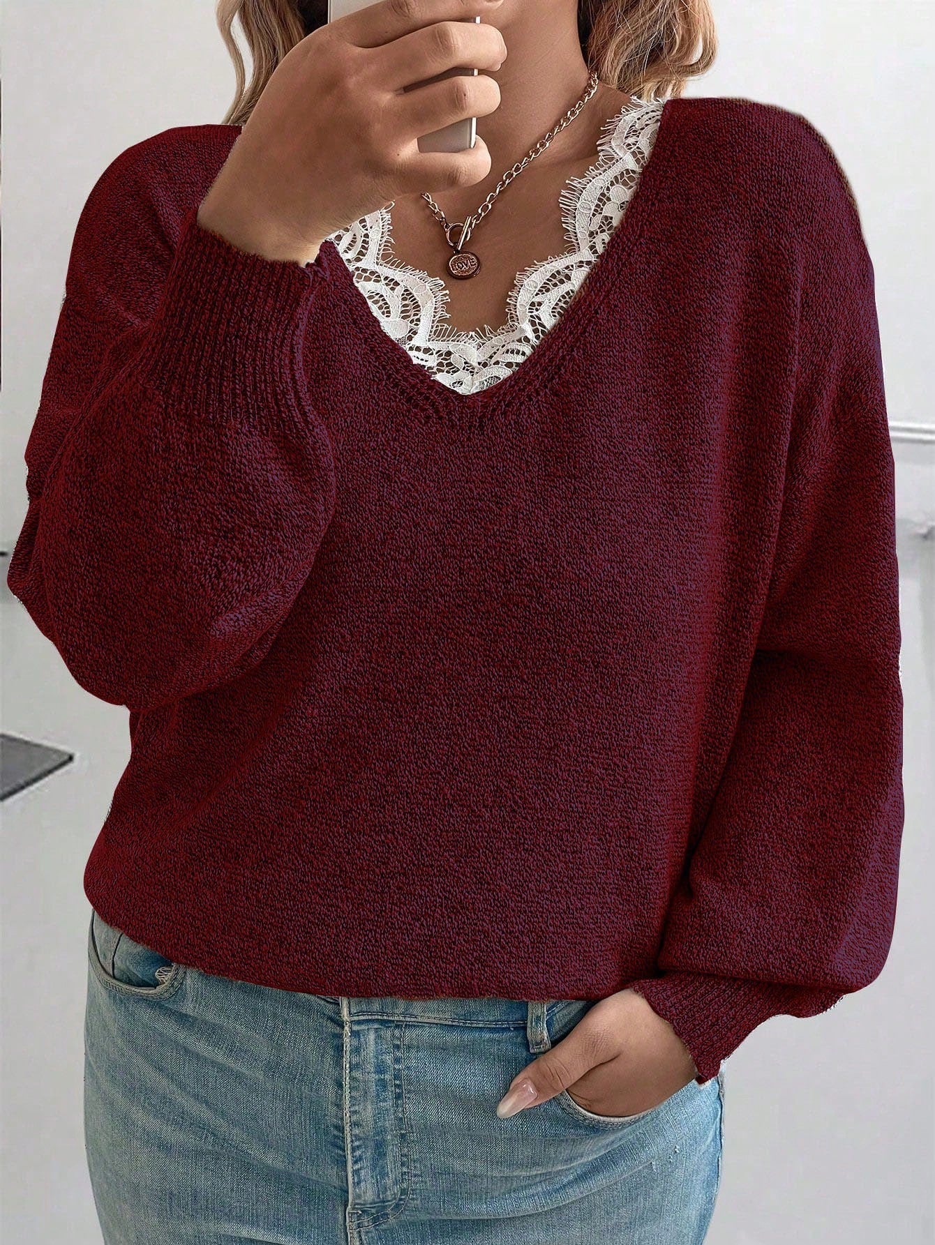 Maglione casual di grandi dimensioni in pizzo e patchwork a maniche lunghe