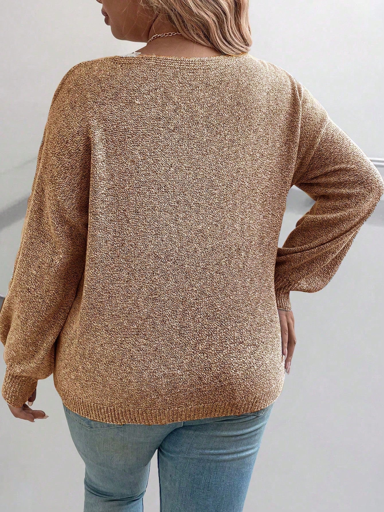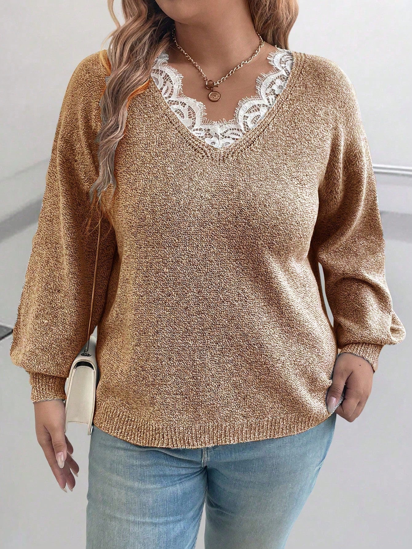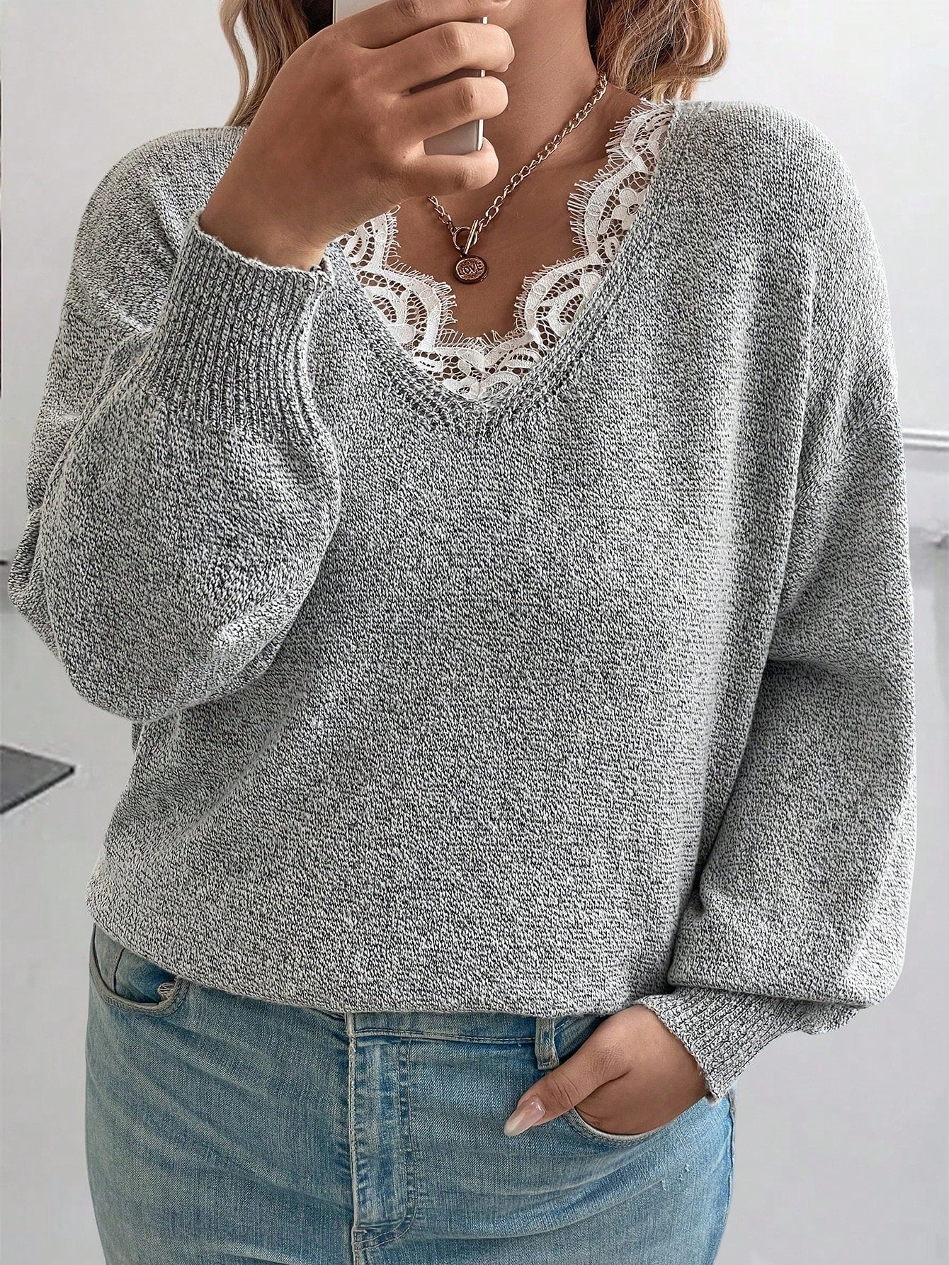 Maglione casual di grandi dimensioni in pizzo e patchwork a maniche lunghe