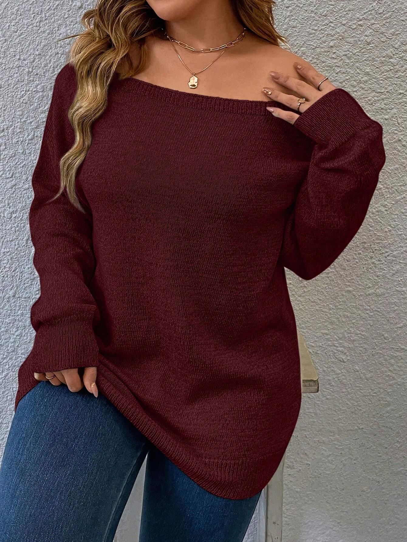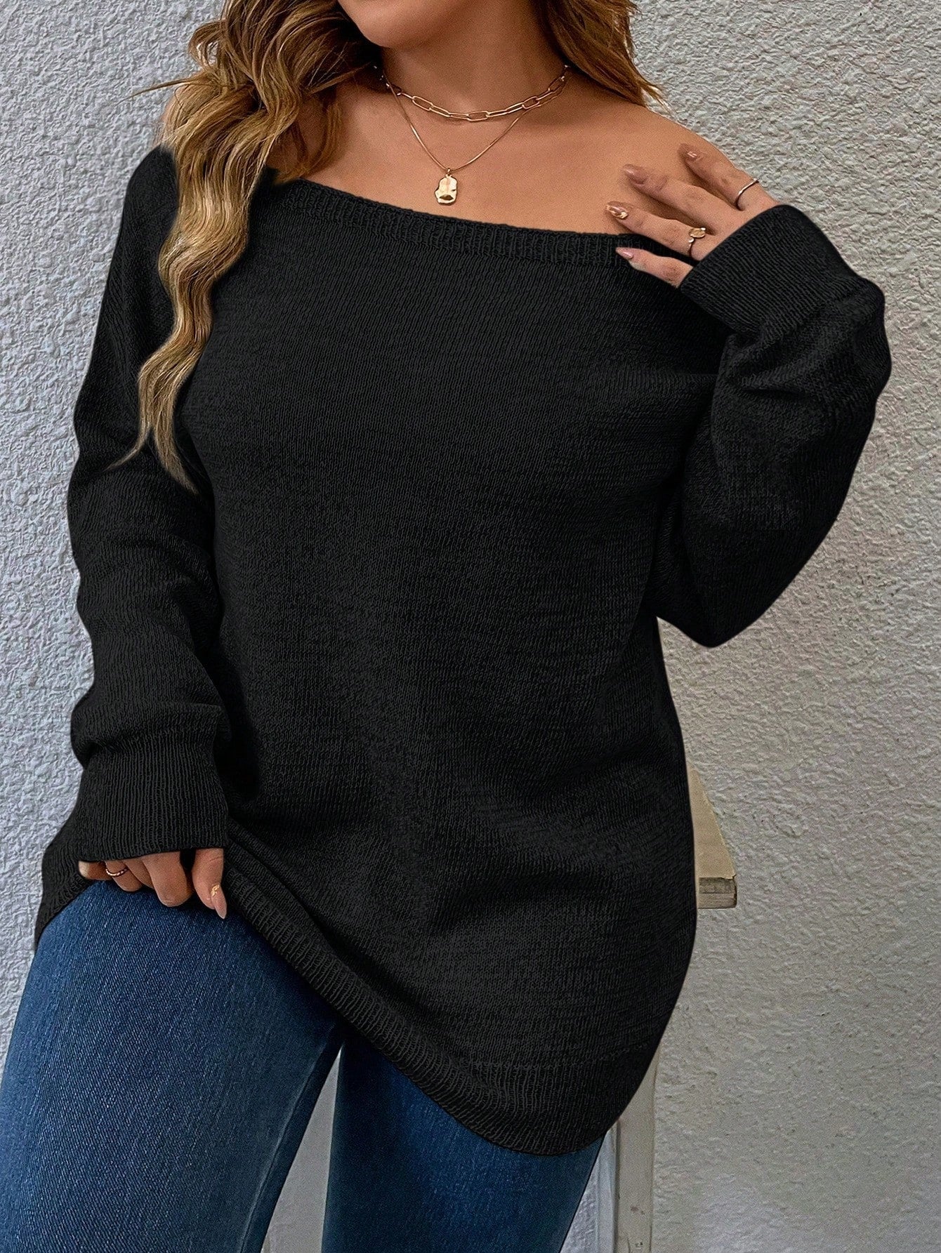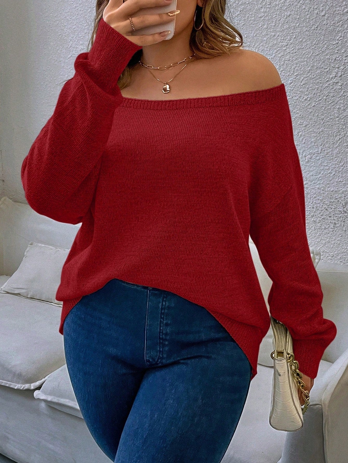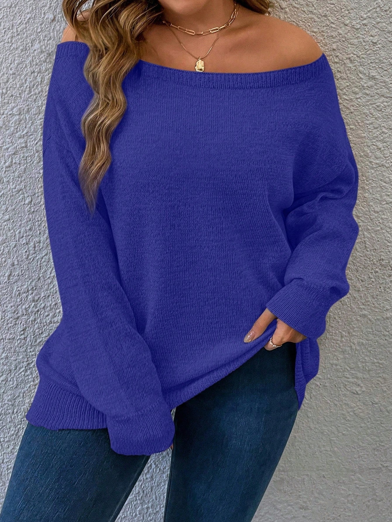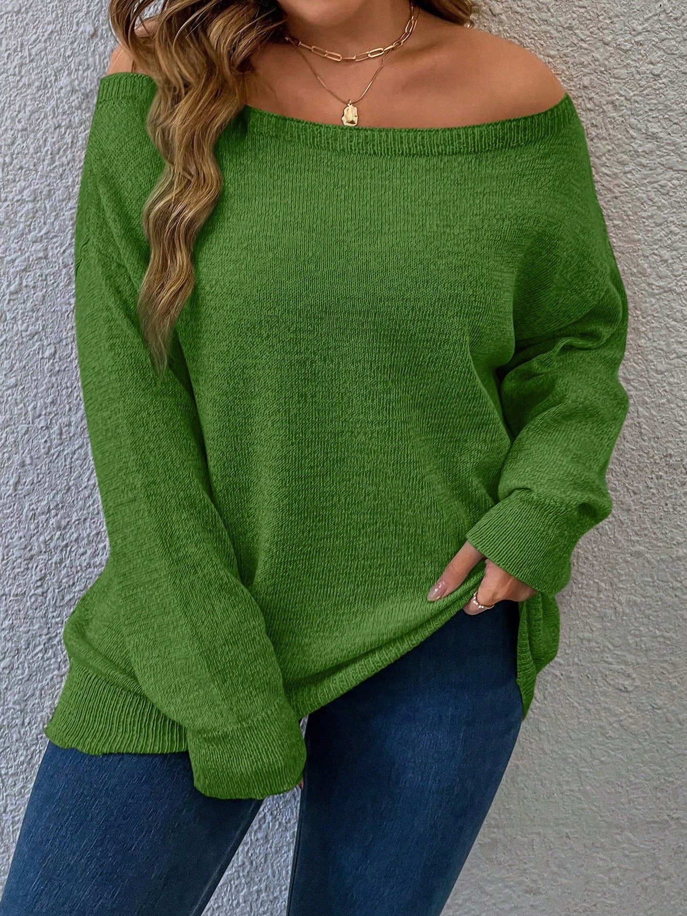 Maglione oversize casual a tinta unita con spalle scoperte e morbido