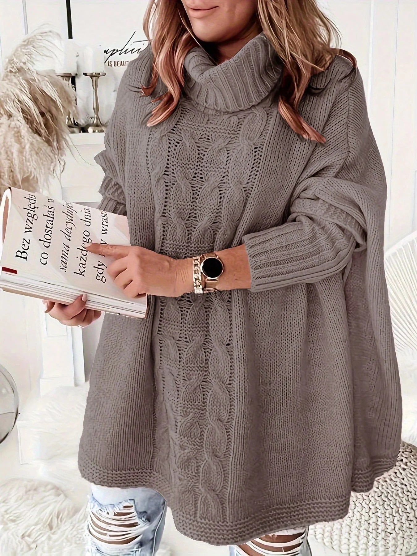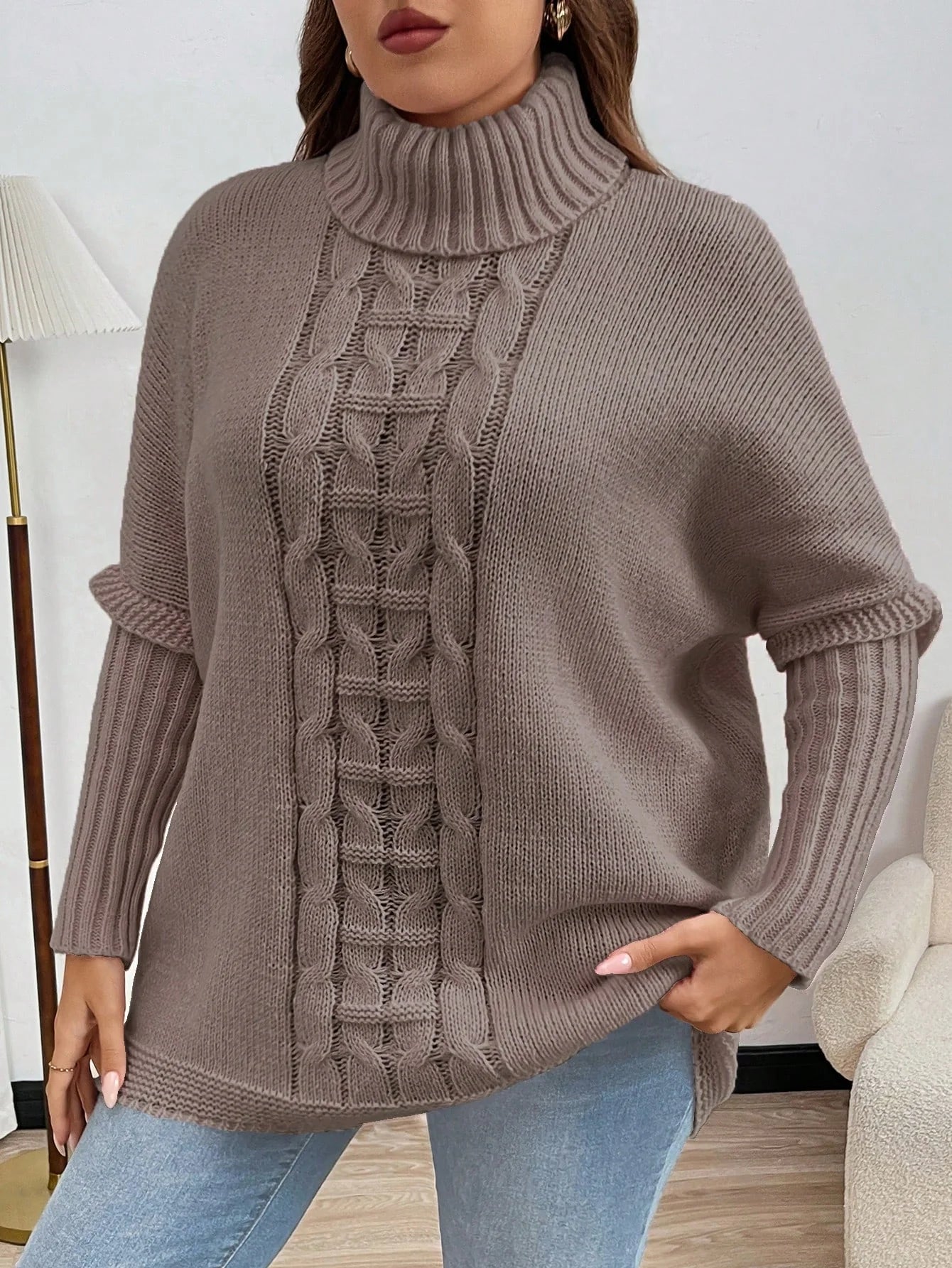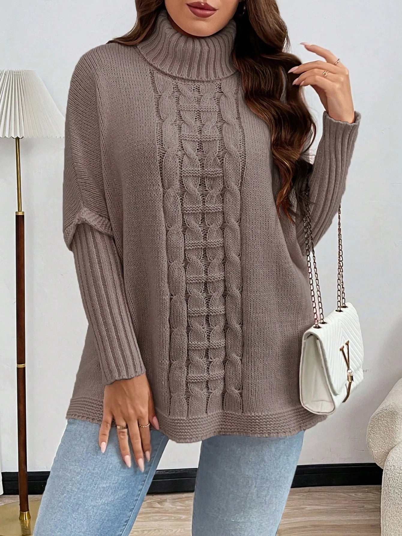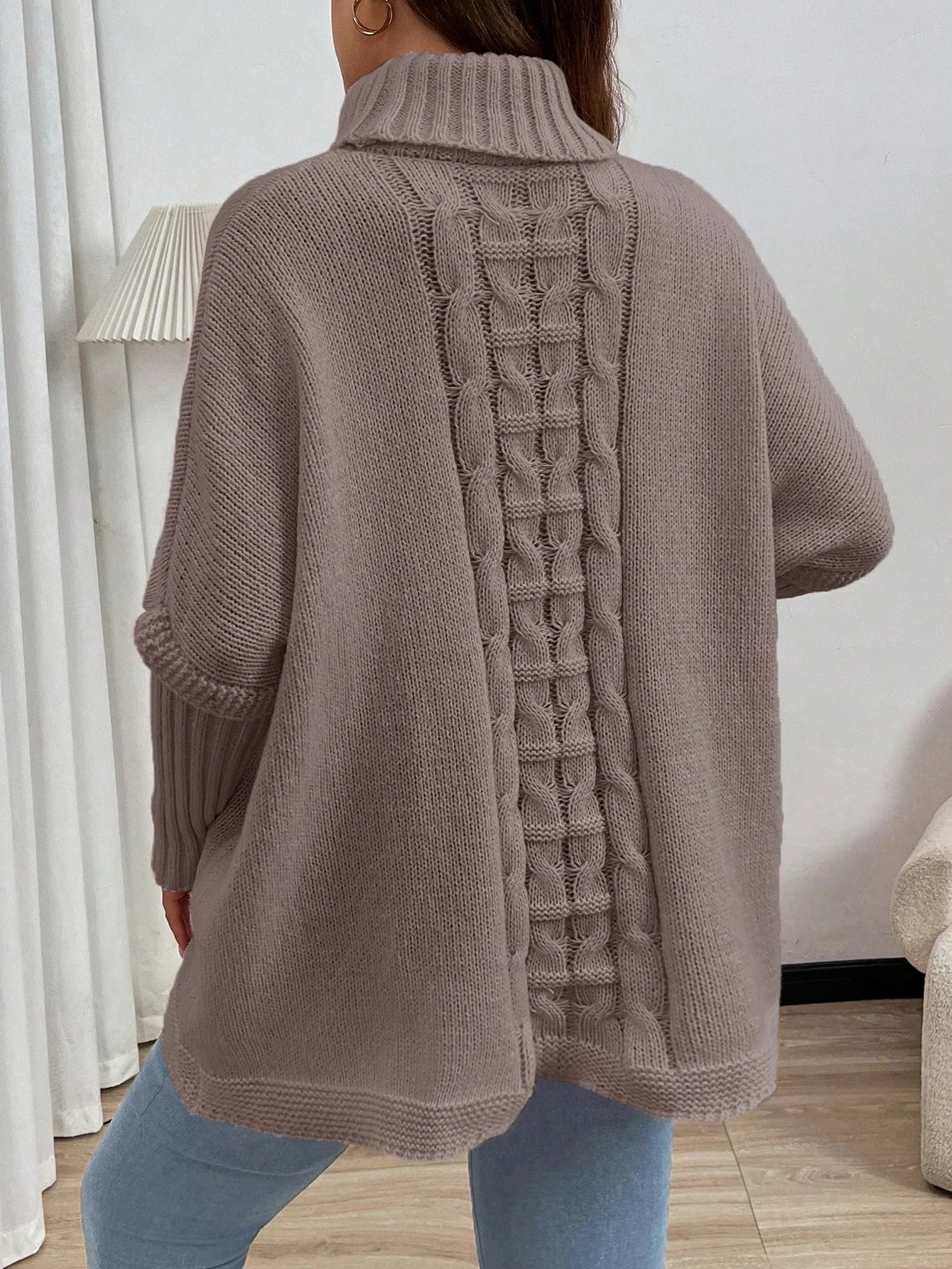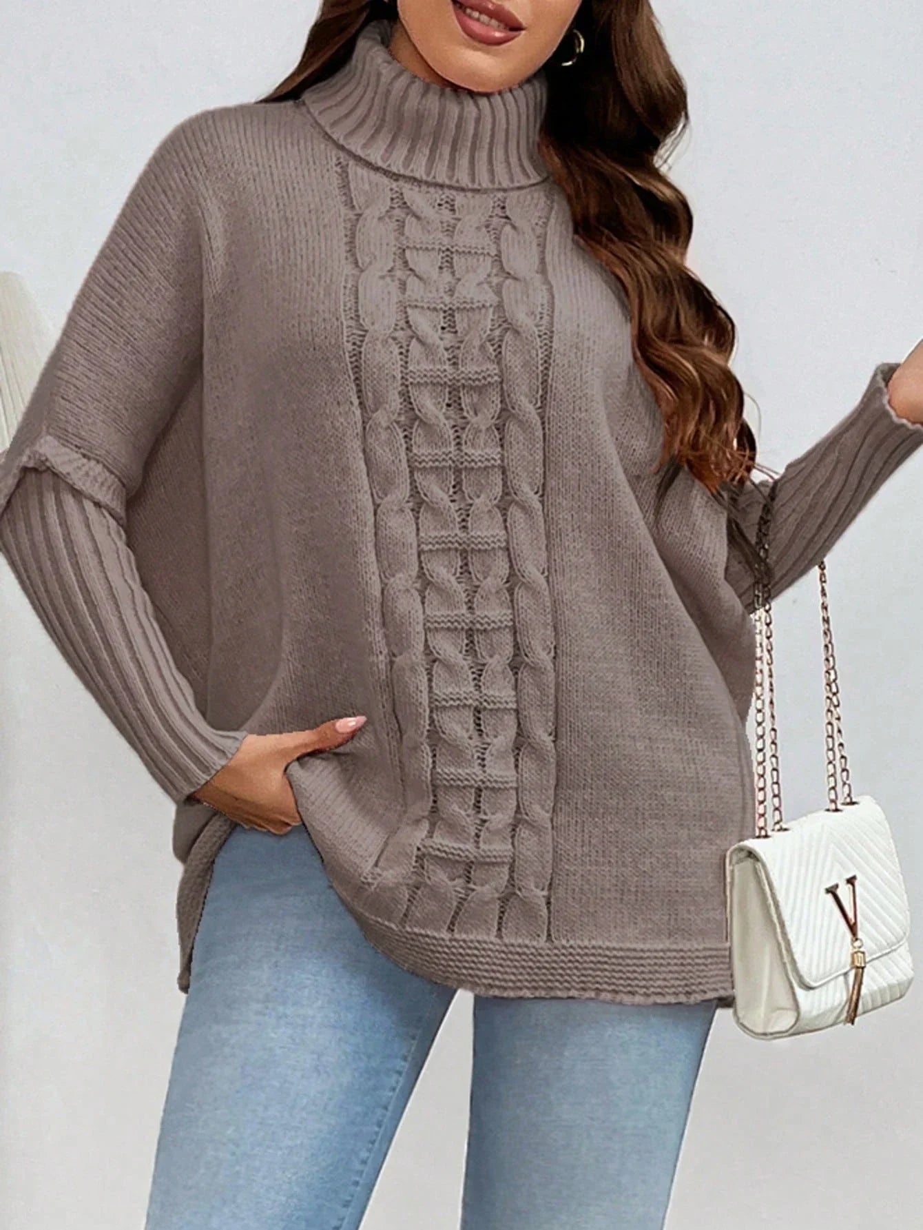 Maglione oversize casual e ampio in maglia a tinta unita con collo alla coreana