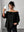 Maglia nera casual con maniche a sbuffo per taglie forti