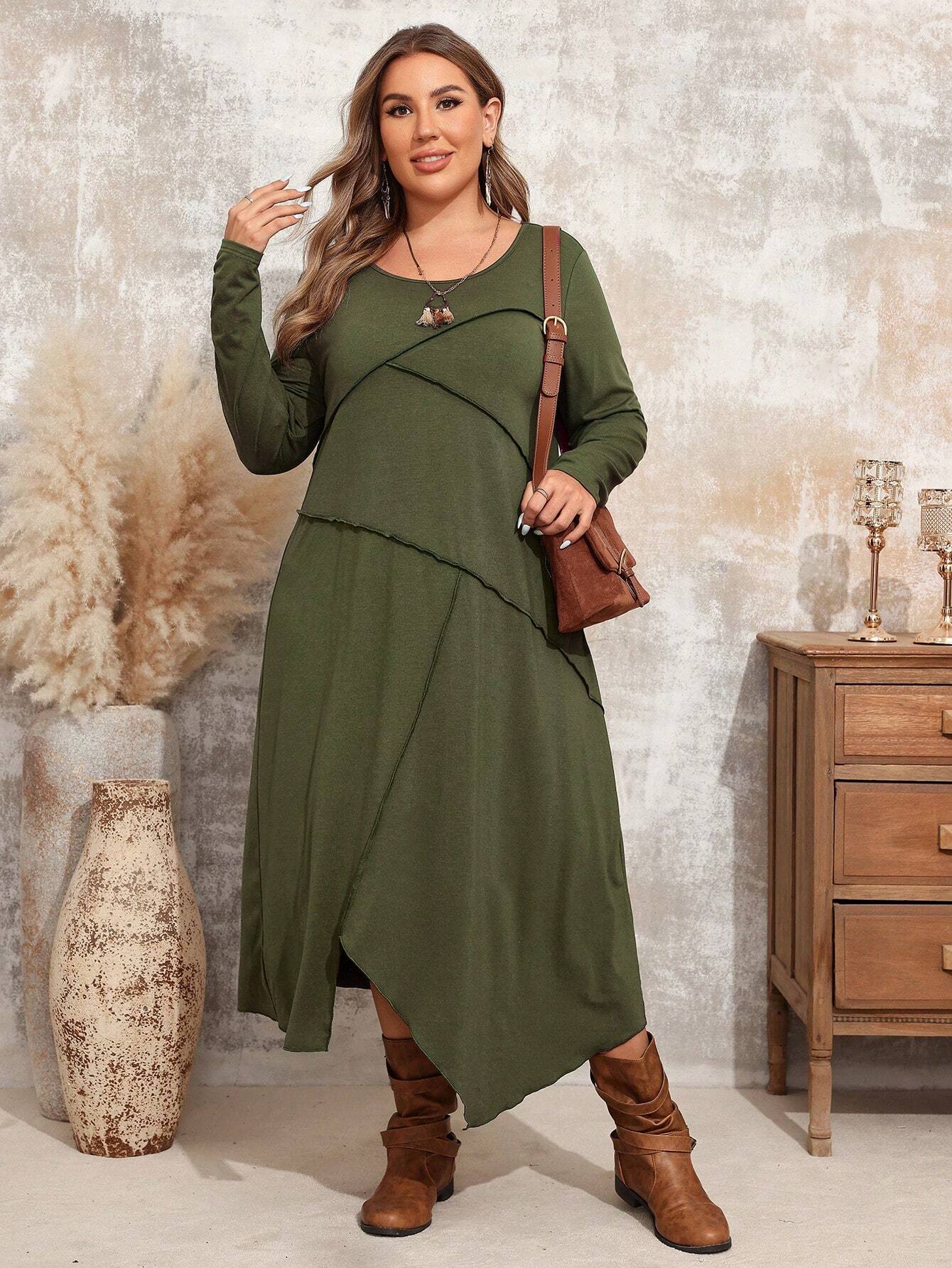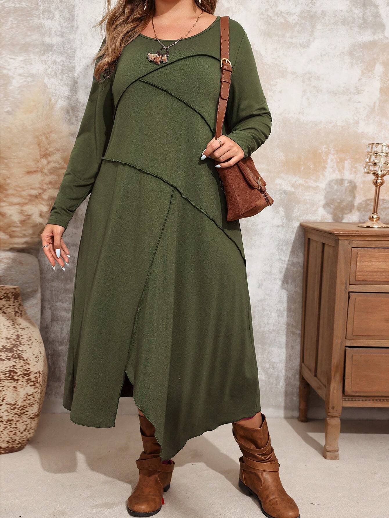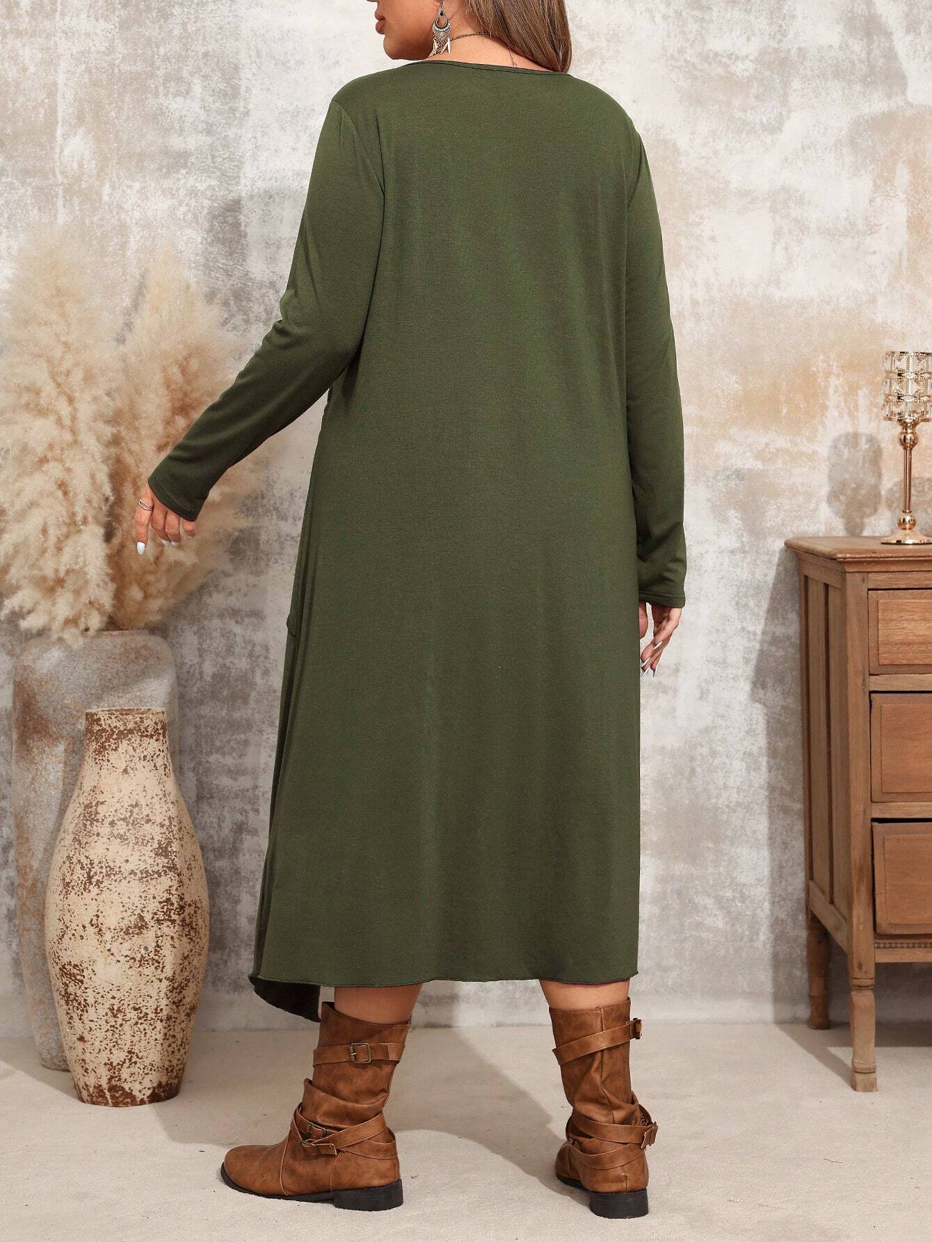 Abito casual comodo di moda con collo rotondo e maniche lunghe