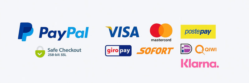 Accettiamo carte di credito, PayPal, Apple pay, Klarna