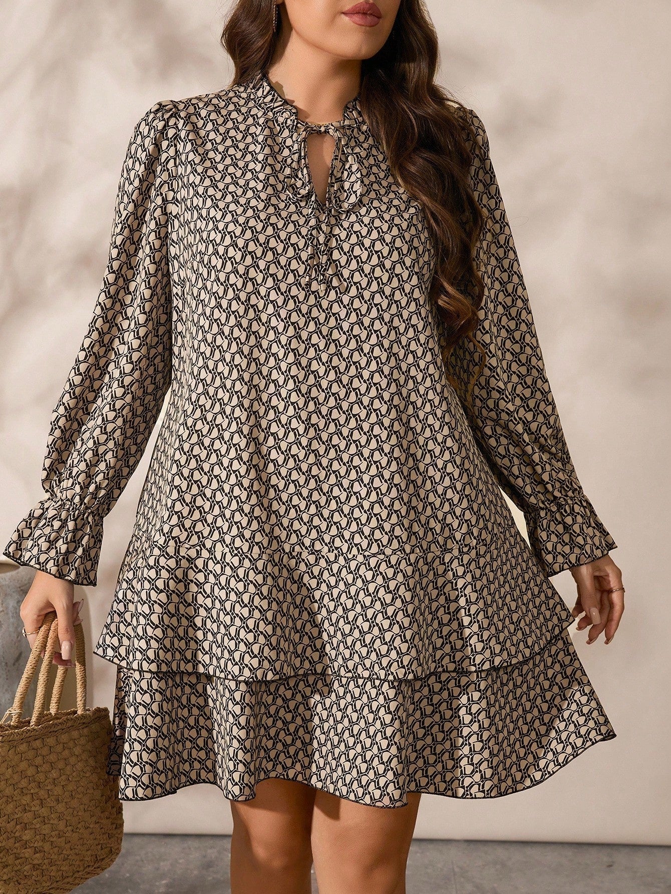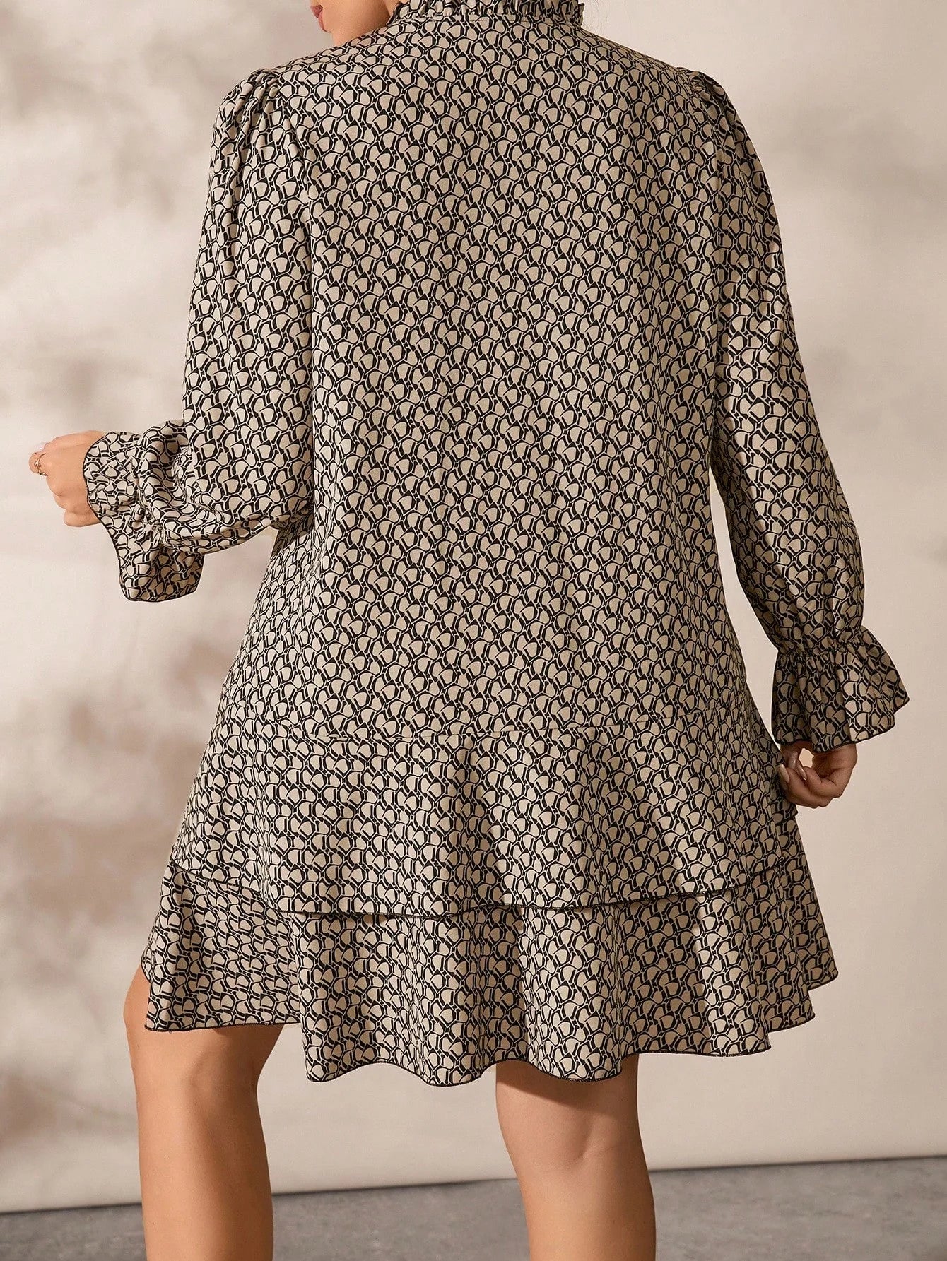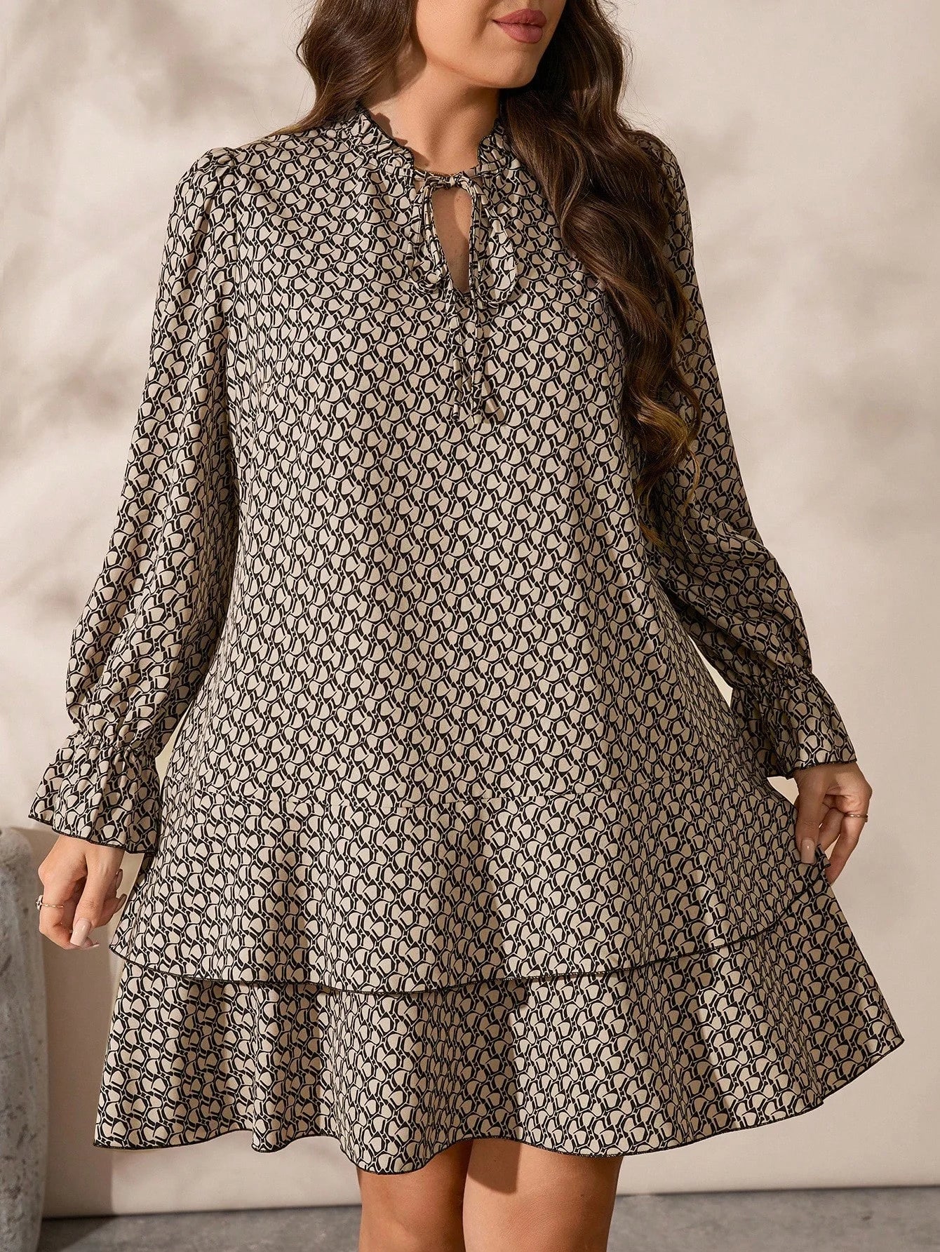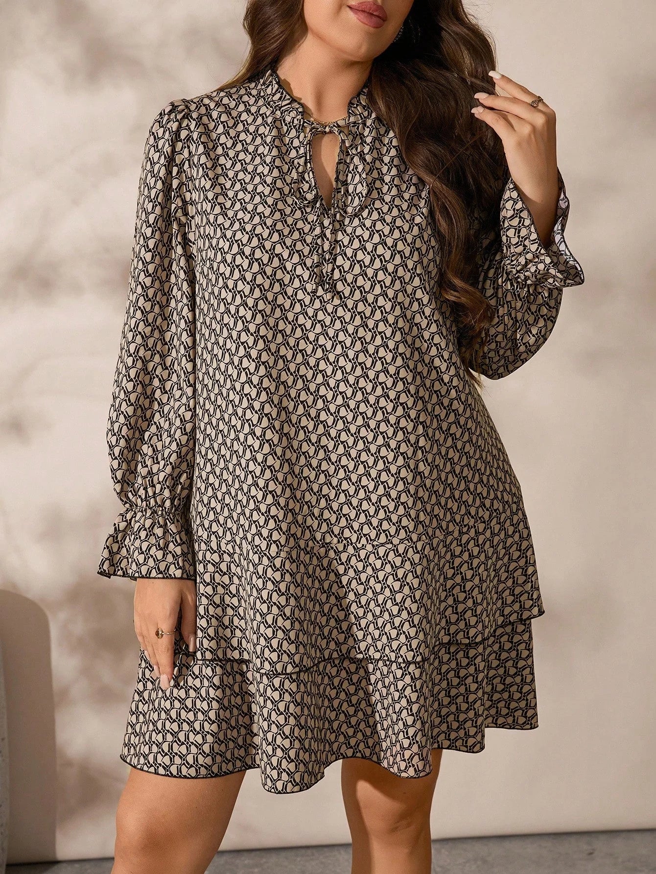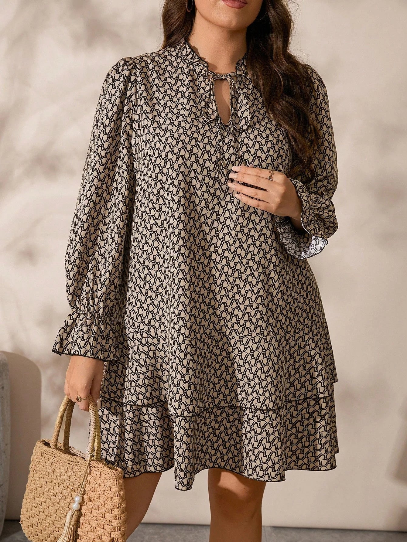 Vestito con maniche a campana e volant sul fondo, per taglie comode